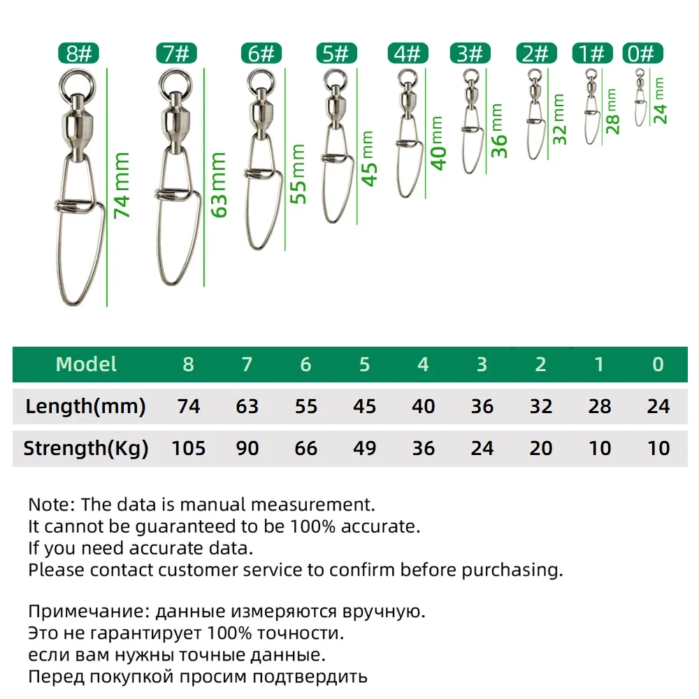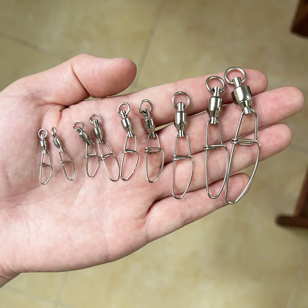 DNDYUJU-rodamiento de bolas de pesca giratorio, 10 piezas, enclavamiento rodante, Conector de eslabones de pesca de acero inoxidable, cierre cruzado