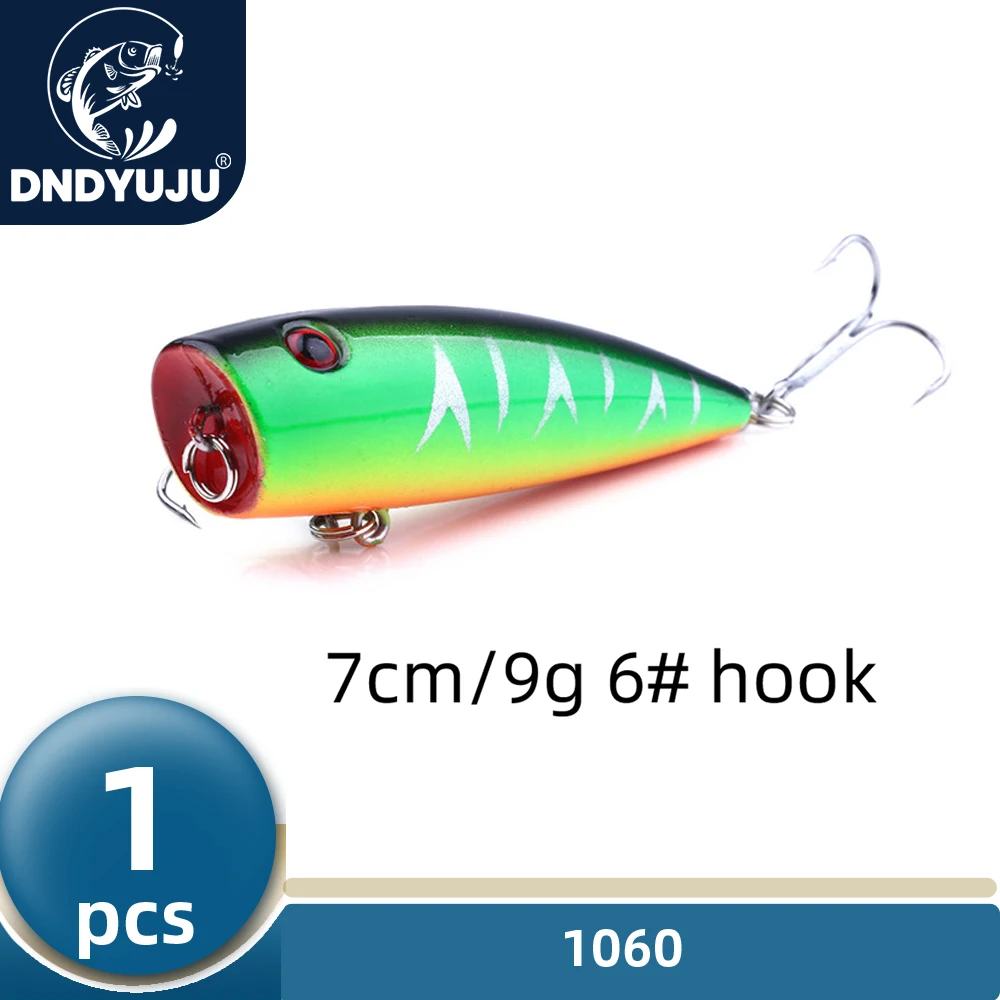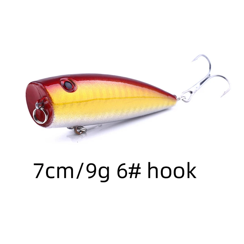 DNDYUJU 1 piezas 7cm/9g Popper señuelo de pesca duro cebo Artificial Topwater con 2 triples 6 # anzuelo superficie flotante señuelo accesorios de pesca