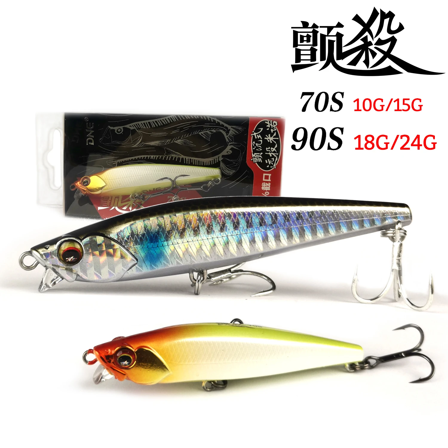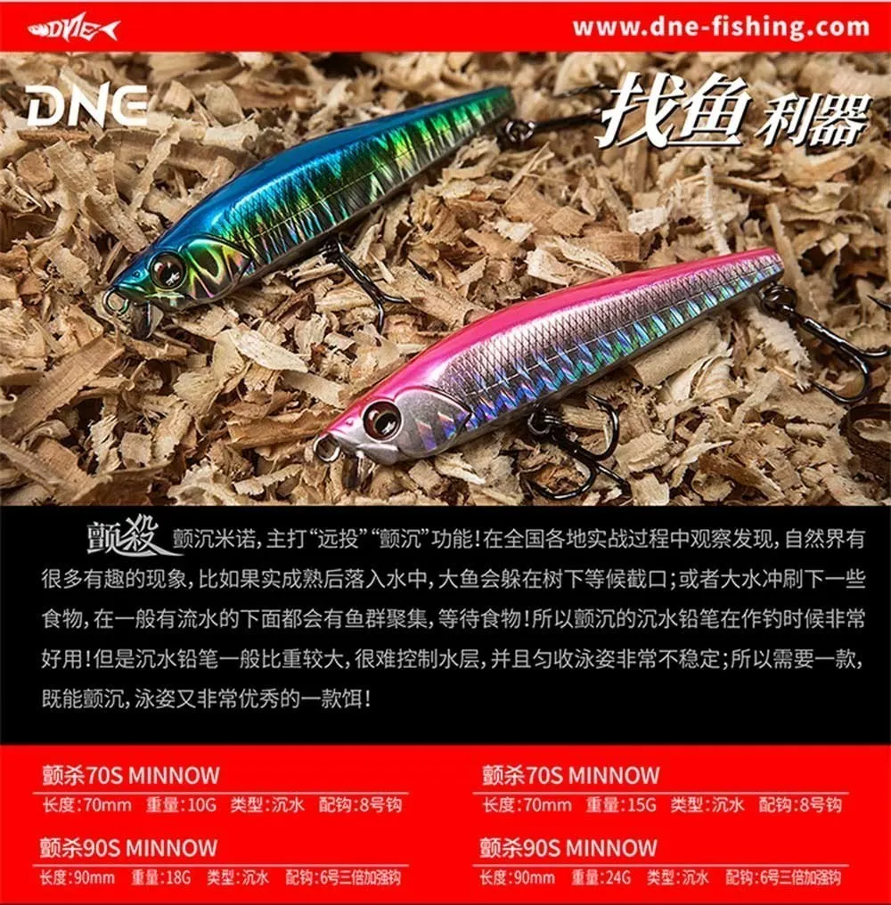 DNE 18g 24g Tremor hundimiento Minnow Wobblers 70S 90S Señuelos de pesca agua de mar duro Stickbait cebo aparejos para trucha Pike cebos