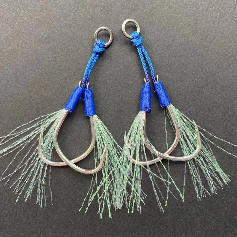 Doble par Tandem Multi Hook Rig para pesca, señuelo de plumas de alta eficiencia, configuración de cebo Snell, anzuelos afilados, duradero y confiable