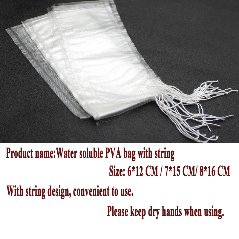 Bolsa DE PESCA DE PVA Soluble en agua Dongbory con cuerda de PVA de desglose Taska para carpa, bolsa de cebo grueso para Boilie, bolsa alimentadora de pesca