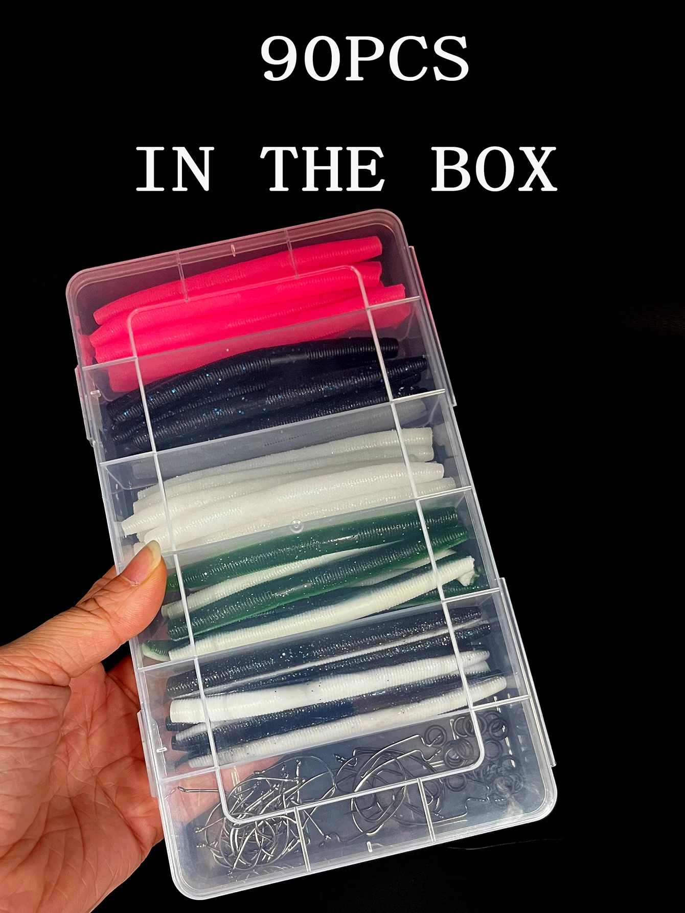 Donglejian-Juego de señuelos blandos de 91 Piezas, cebo Artificial de alta calidad, gusano Senko, anzuelo de alto carbono, accesorios de pesca, caja de aparejos