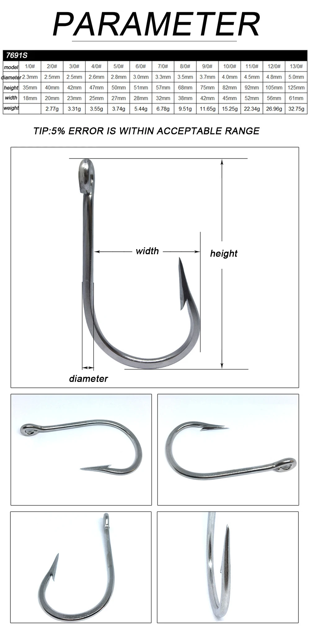 DORISEA 7691S Anzuelo de pesca de aguas profundas resistente de acero inoxidable, 2/0-13/0