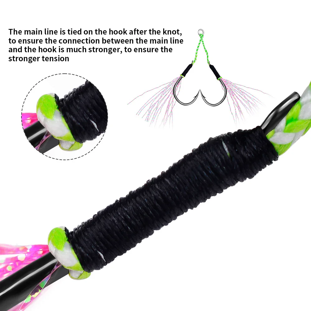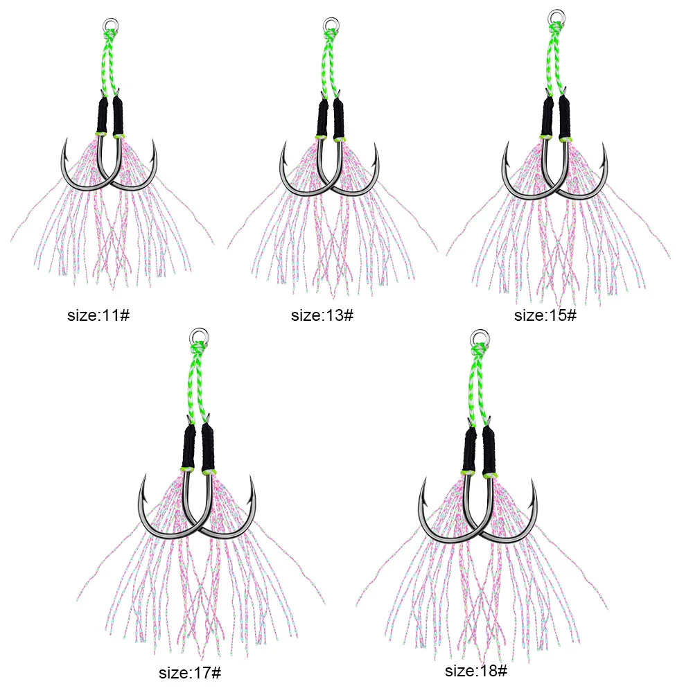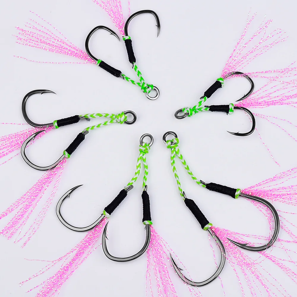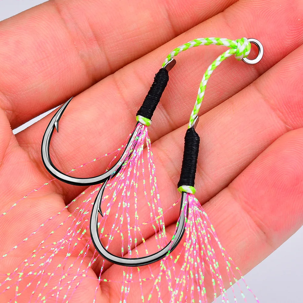 DORISEA-ganchos de asistencia para Jigging, accesorio de acero con alto contenido de carbono, doble plantilla, con pluma, 2 pares por bolsa