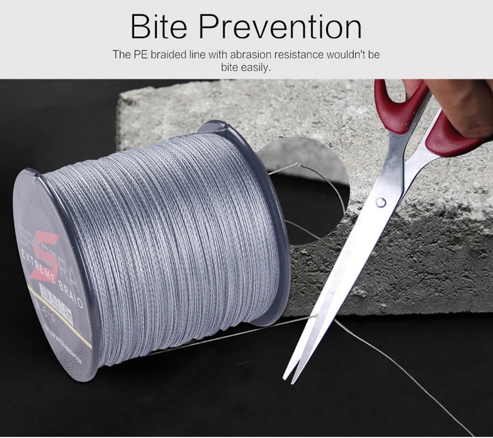 Línea de PE de 2, 8 hebras, material de Japón, construcción trenzada única, hecha de fibras de PE de ultra alta resistencia.
