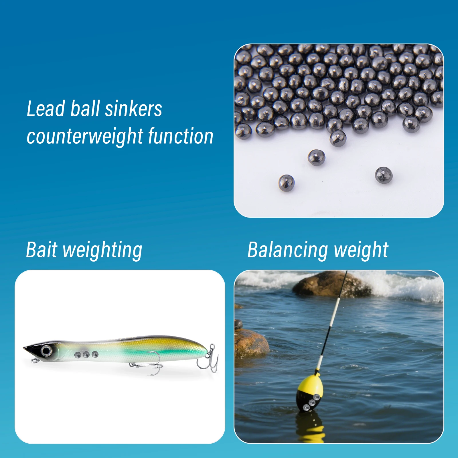 Las bolas de plomo son pesos de pesca esenciales para el ajuste del flotador, el anclaje del cebo y el equilibrio de los señuelos.Su tamaño compacto y su alta densidad ayudan a controlar la distancia de lanzamiento, la profundidad del cebo y la estabilidad del sedal en corrientes.