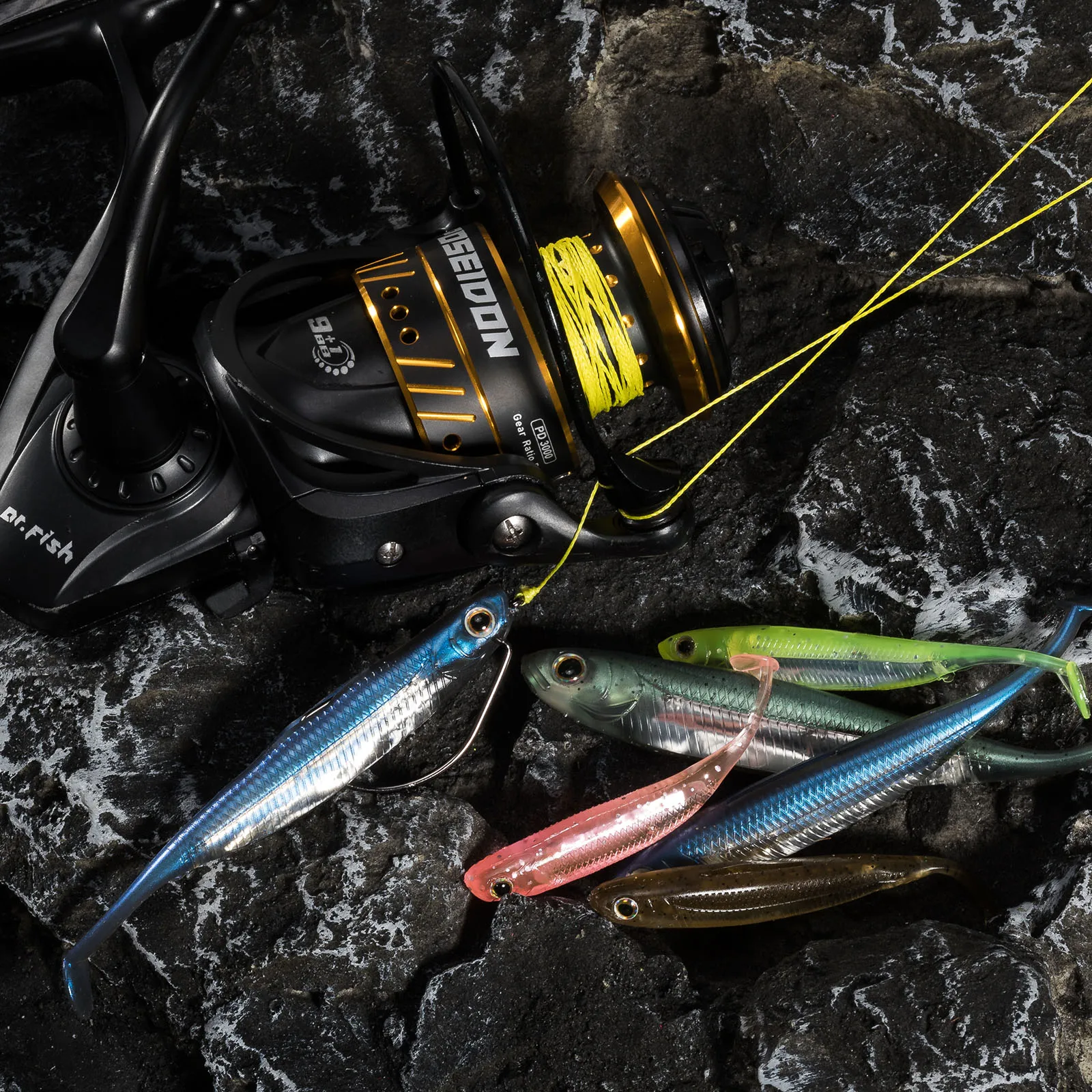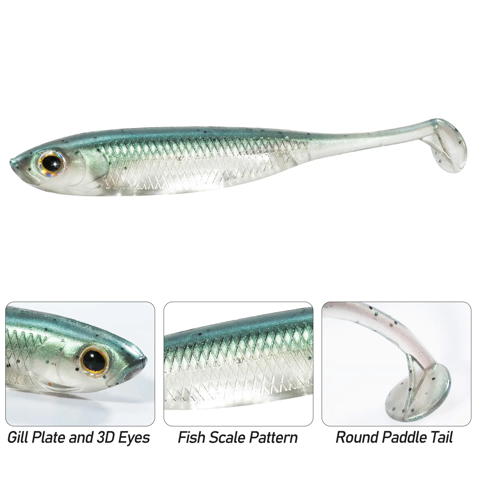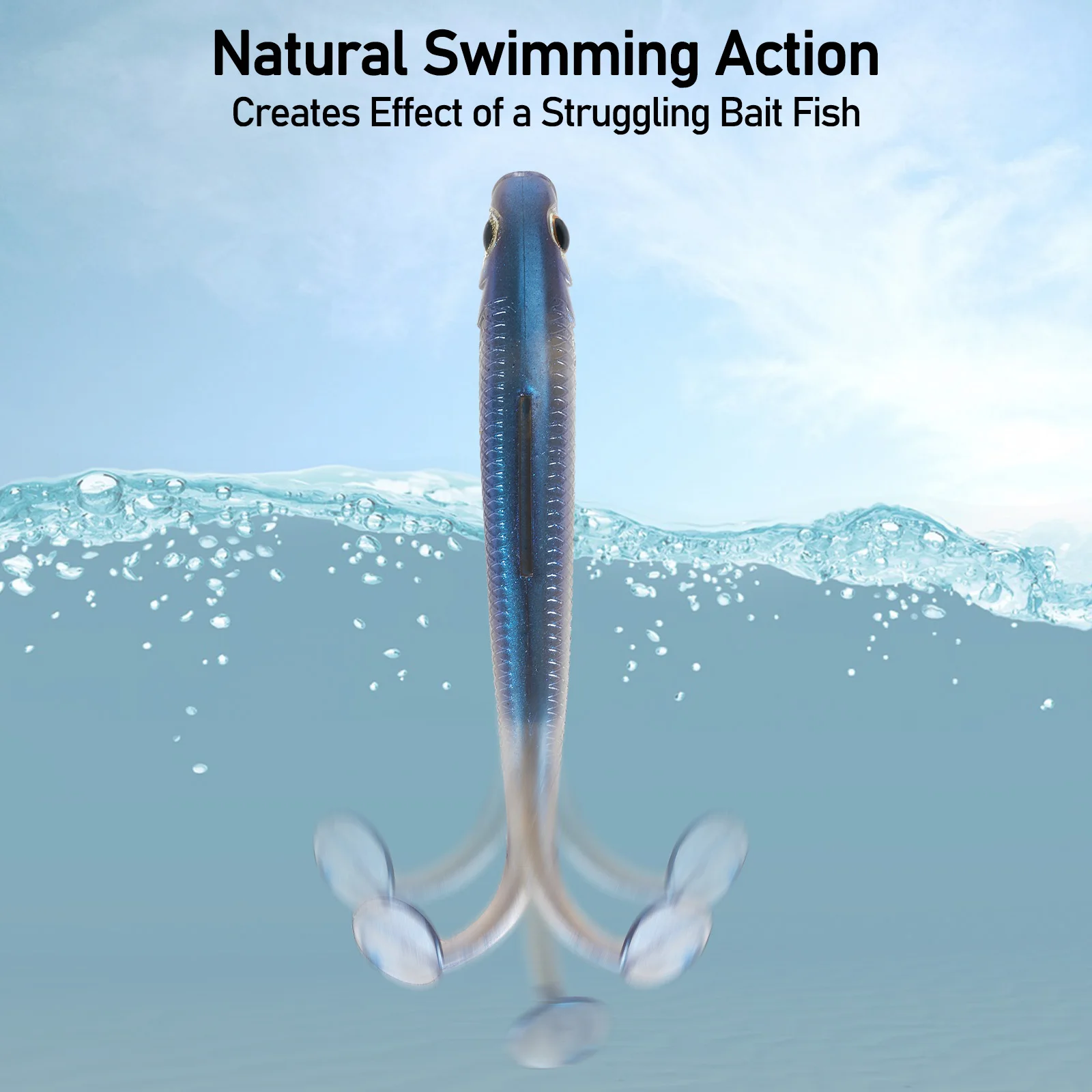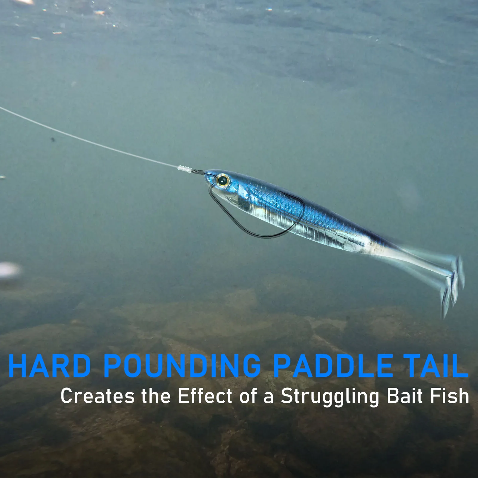 Extremely lifelike swimming action. Features a hard-pounding paddle tail to create enticing kicks and wiggles to drive fishes crazy, luring them to attack.