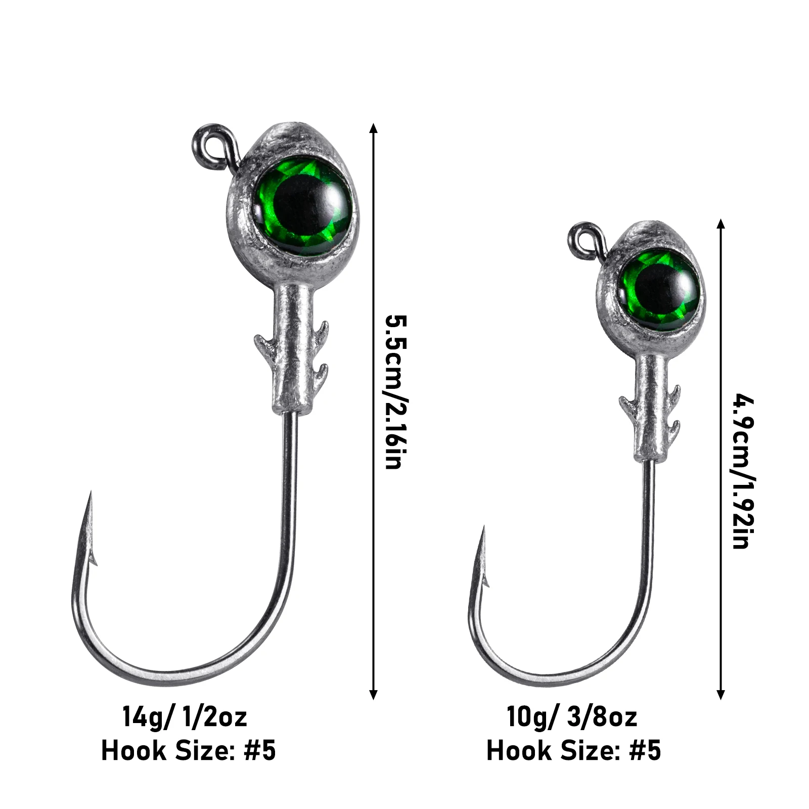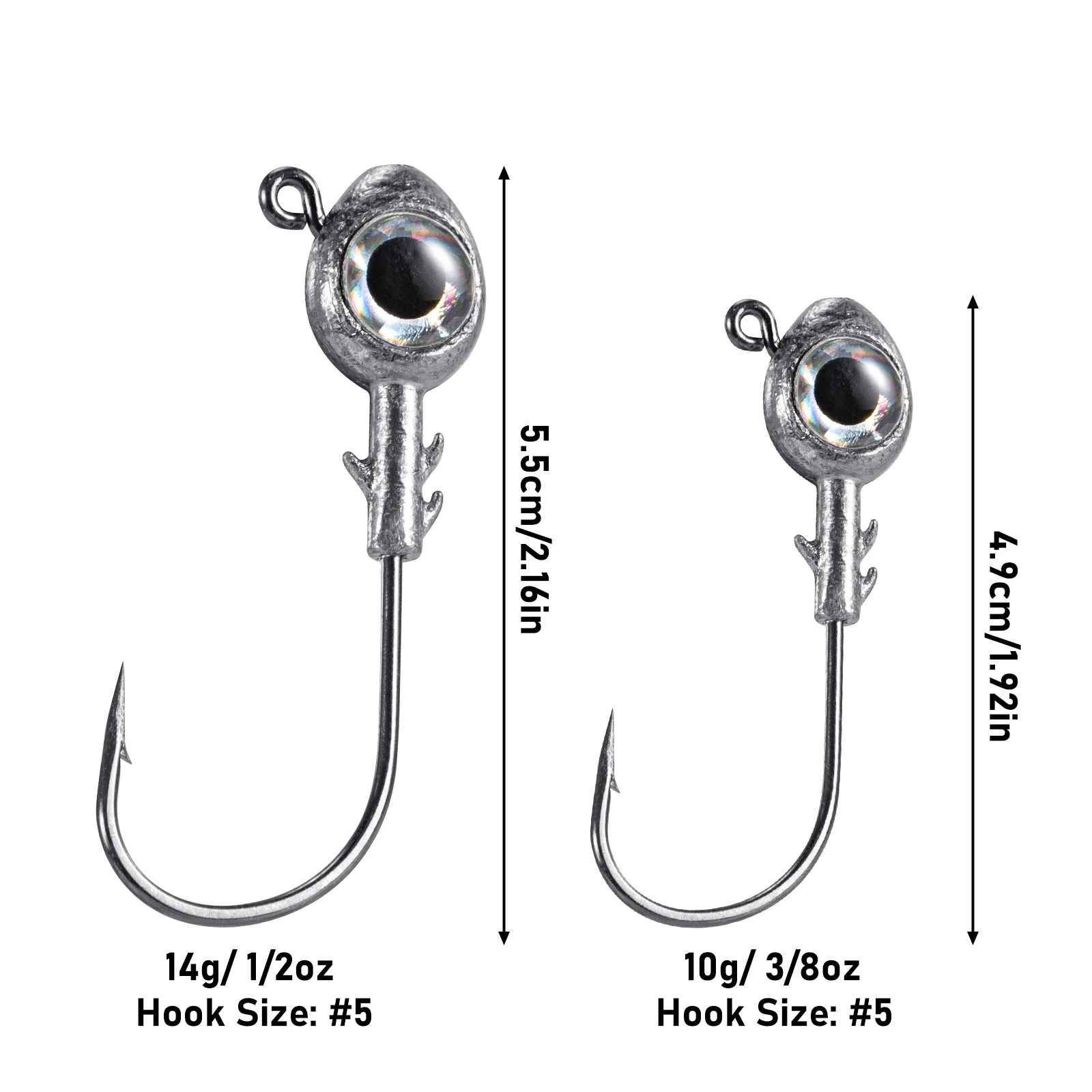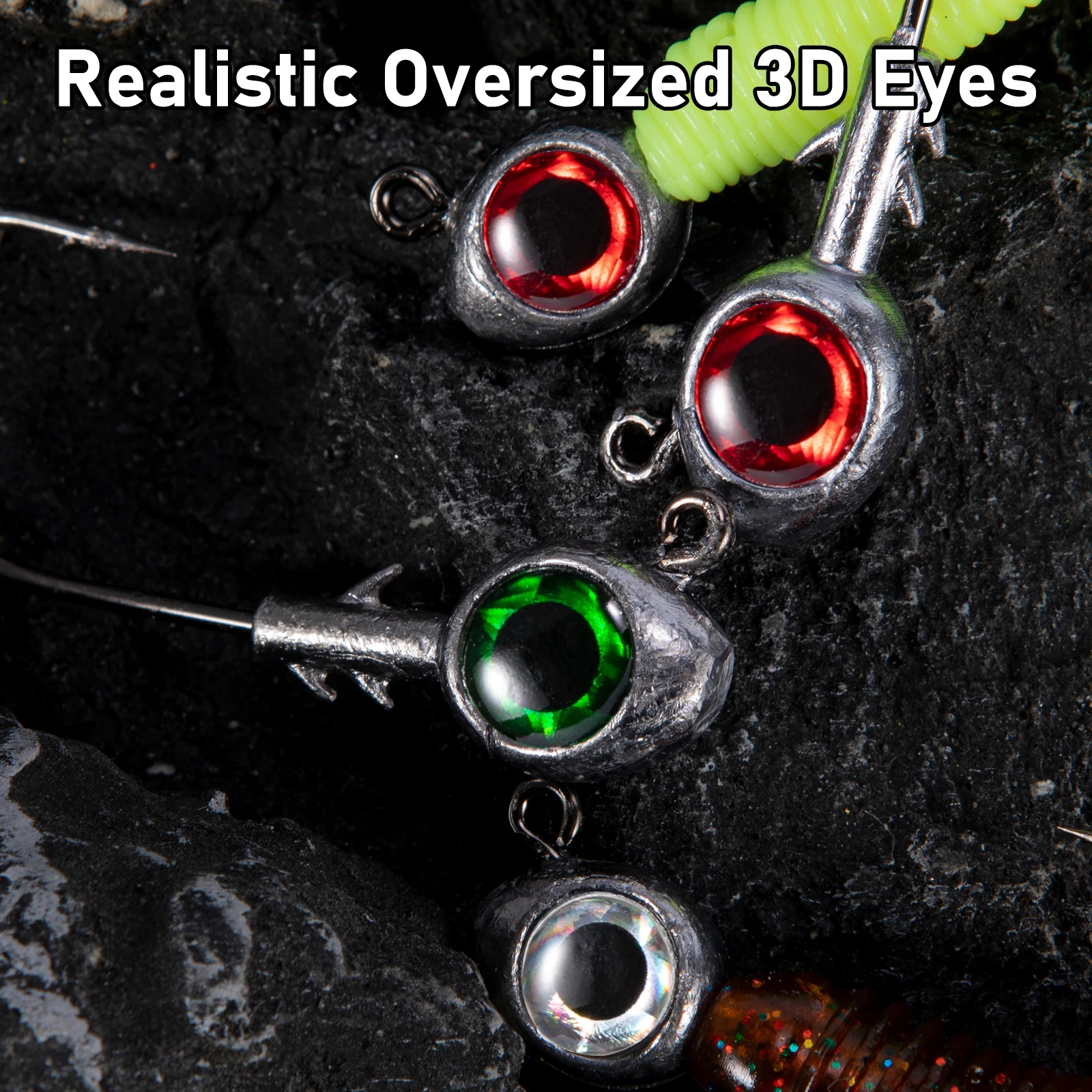 Dr.Fish-señuelo de pesca de 3 piezas, anzuelo de cabeza plomada de ojos grandes, 10g, 14g, para señuelo de plástico suave, cebo vivo, ojos 3D, trucha, lubina, agua salada