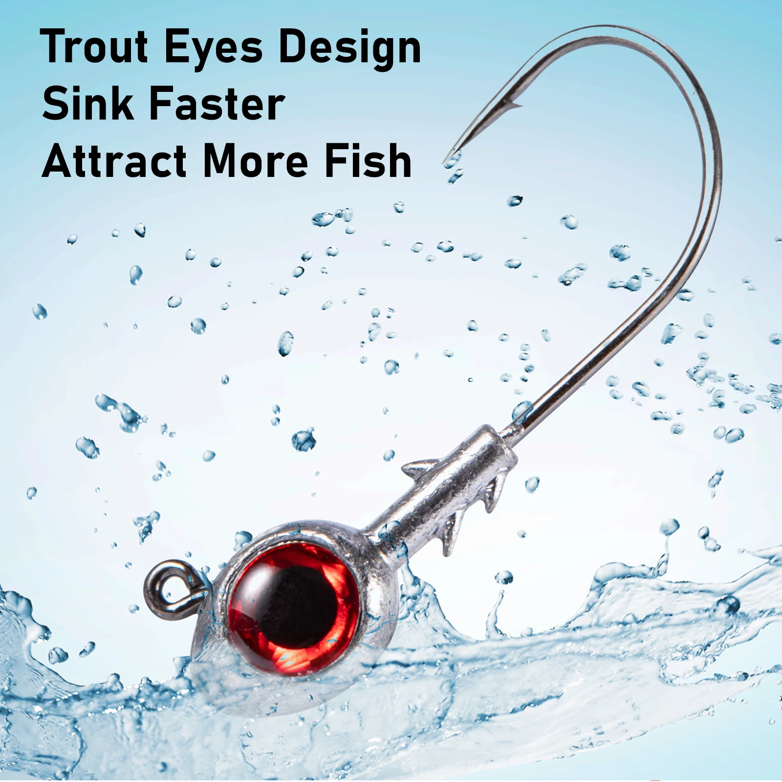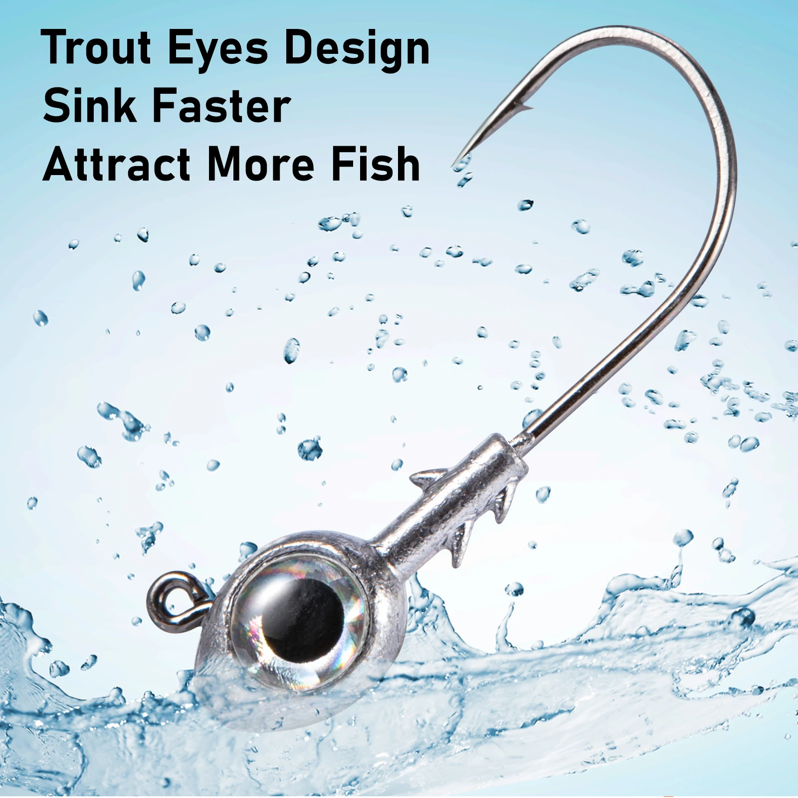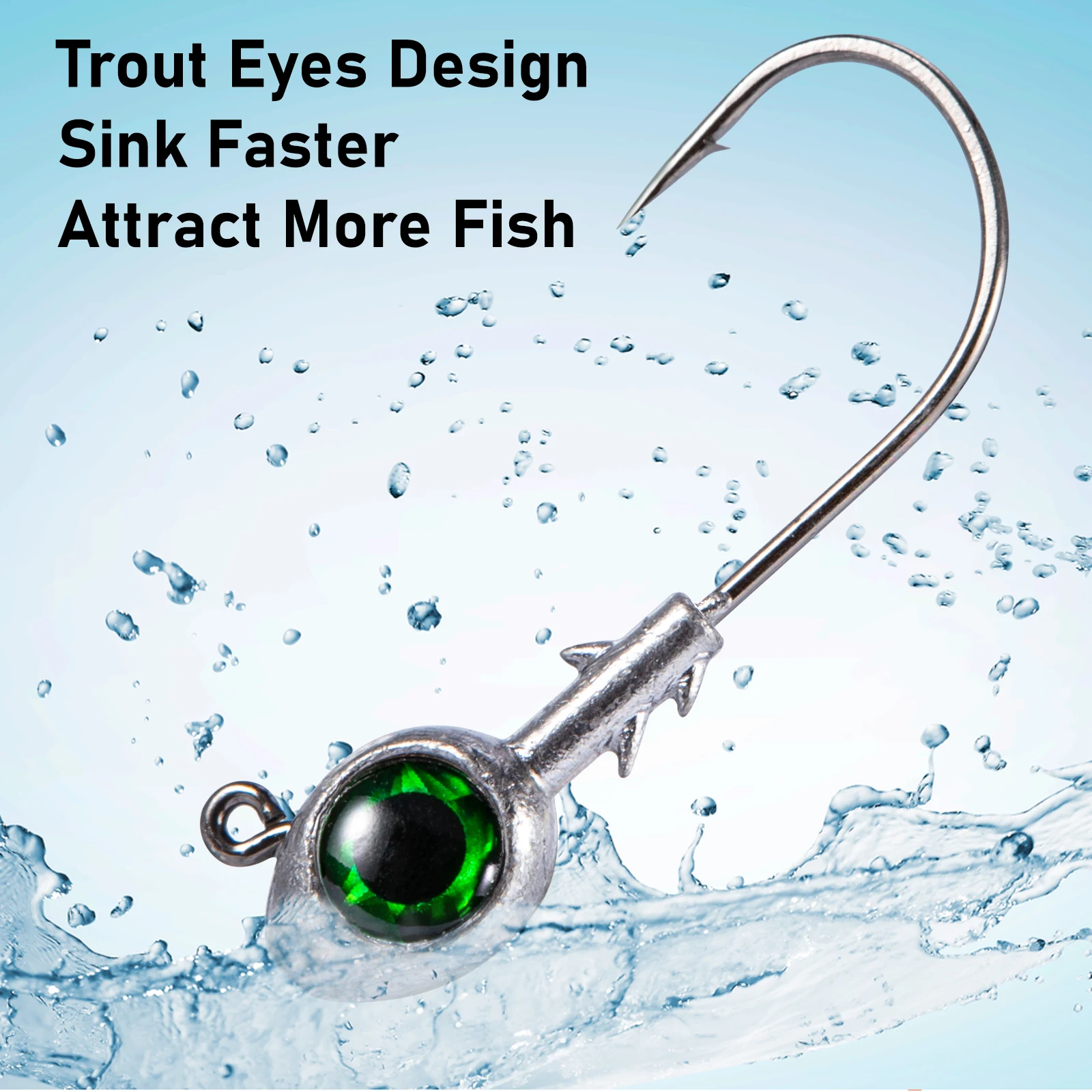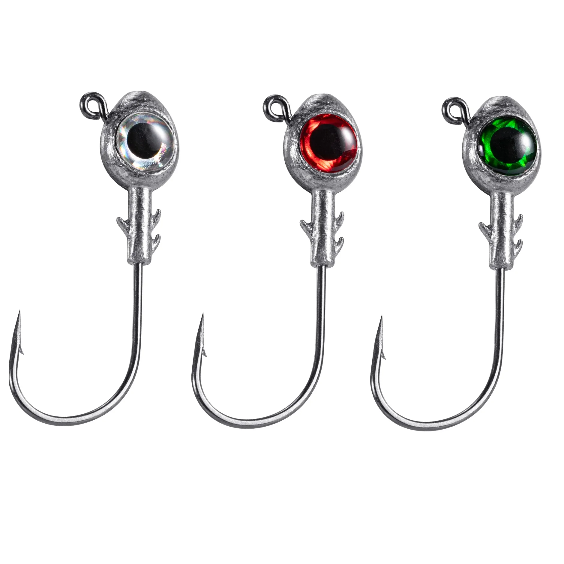 Dr.Fish-señuelo de pesca de 3 piezas, anzuelo de cabeza plomada de ojos grandes, 10g, 14g, para señuelo de plástico suave, cebo vivo, ojos 3D, trucha, lubina, agua salada