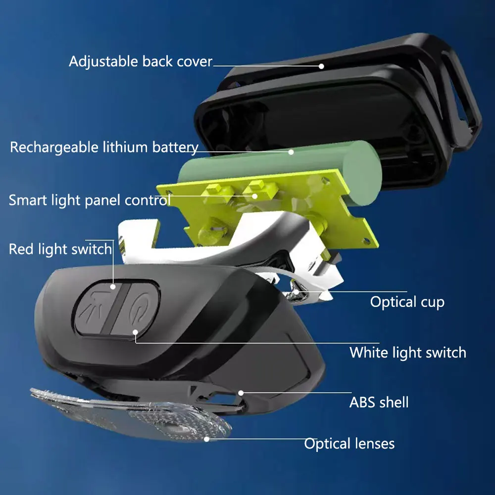 Este mini faro es fácil de usar y cómodo de llevar.Con correa elástica ajustable, fácil de ajustar a su cabeza, puede usarlo más cómodamente.