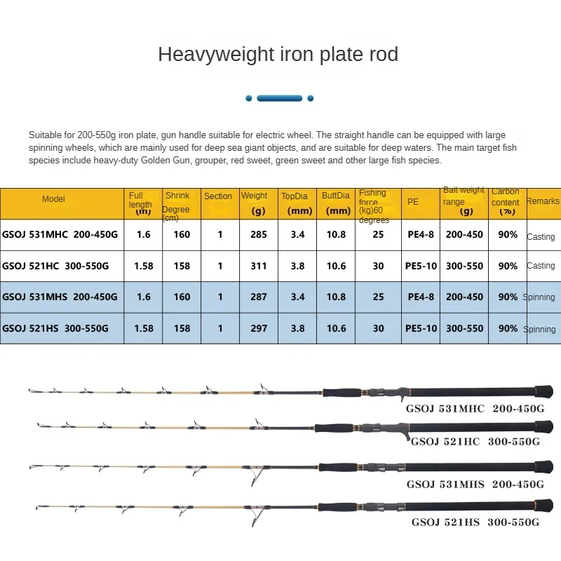 DSNY-varilla de Jigging lenta, piezas completas Fuji, 1,58 m, 1,6 m, 1,68 m, fundición giratoria de sección única, caña de PE1-10 para barco oceánico, señuelo de 60-550g