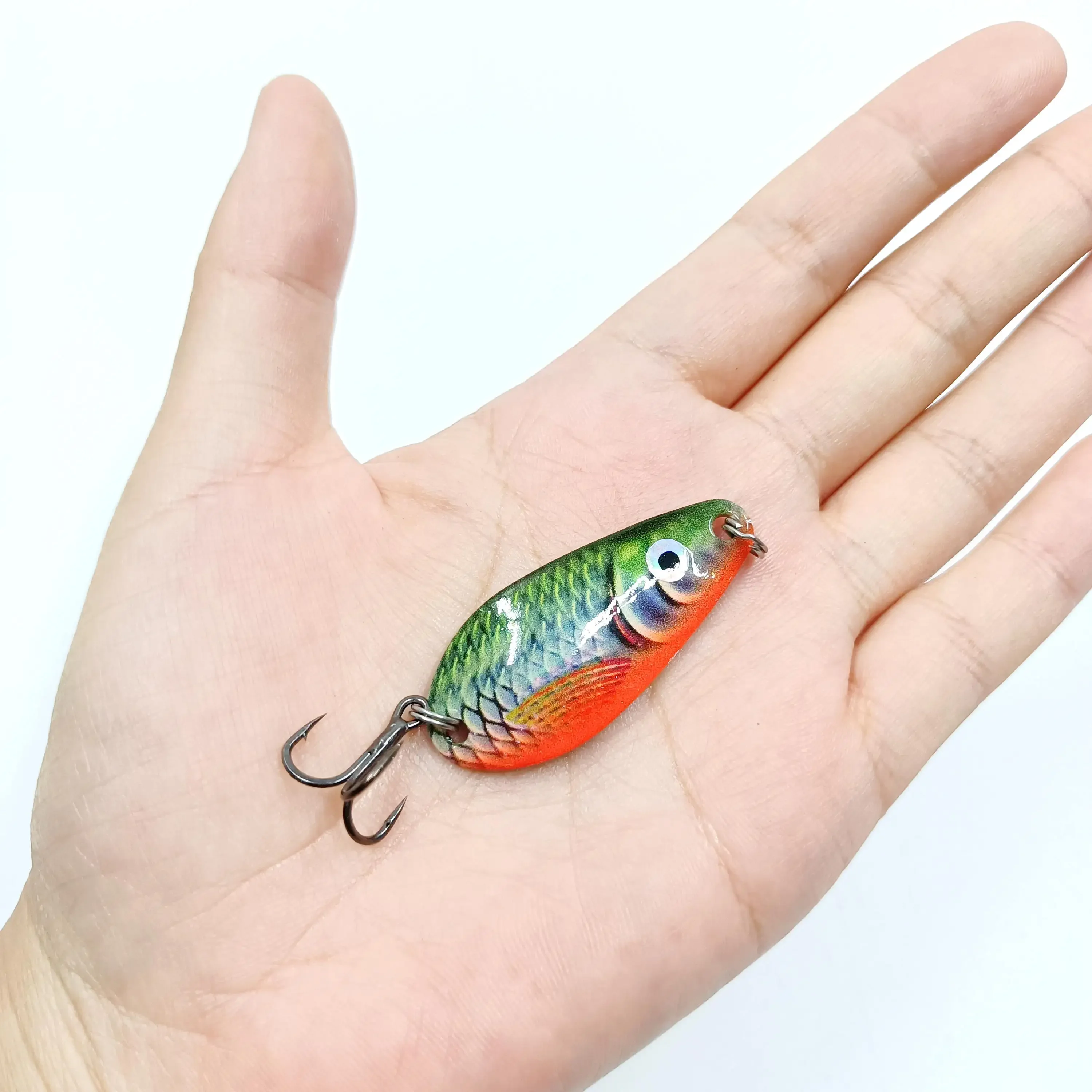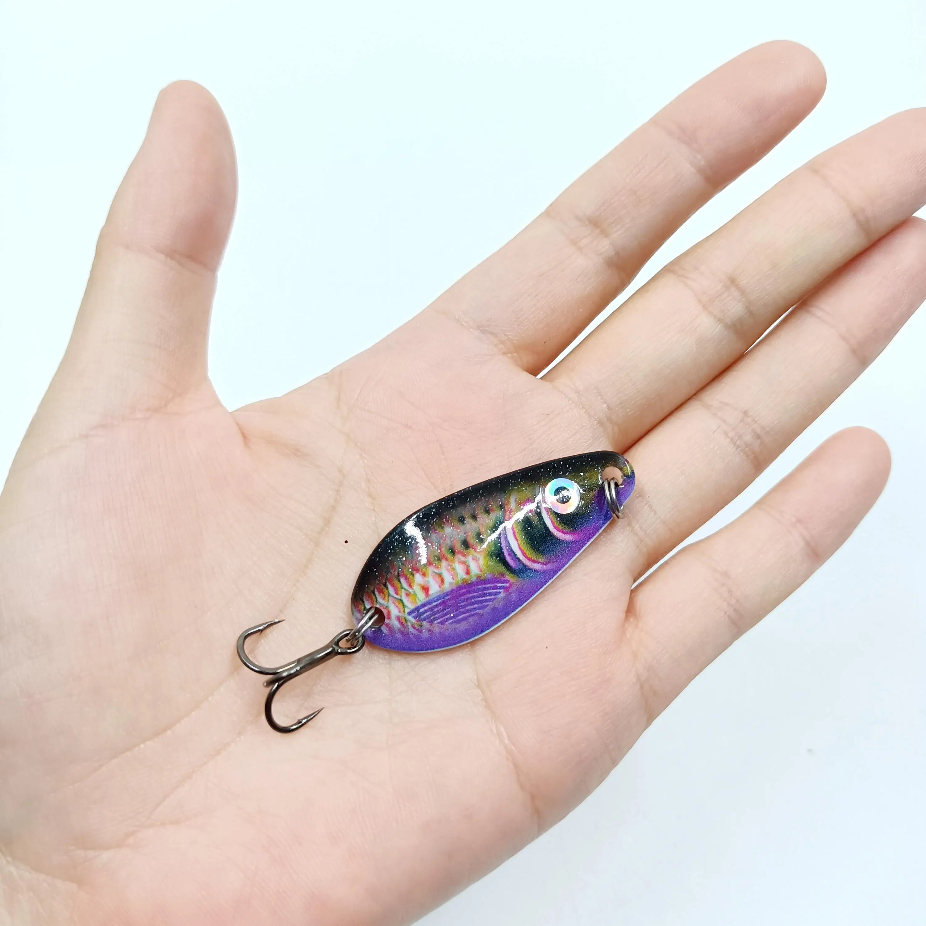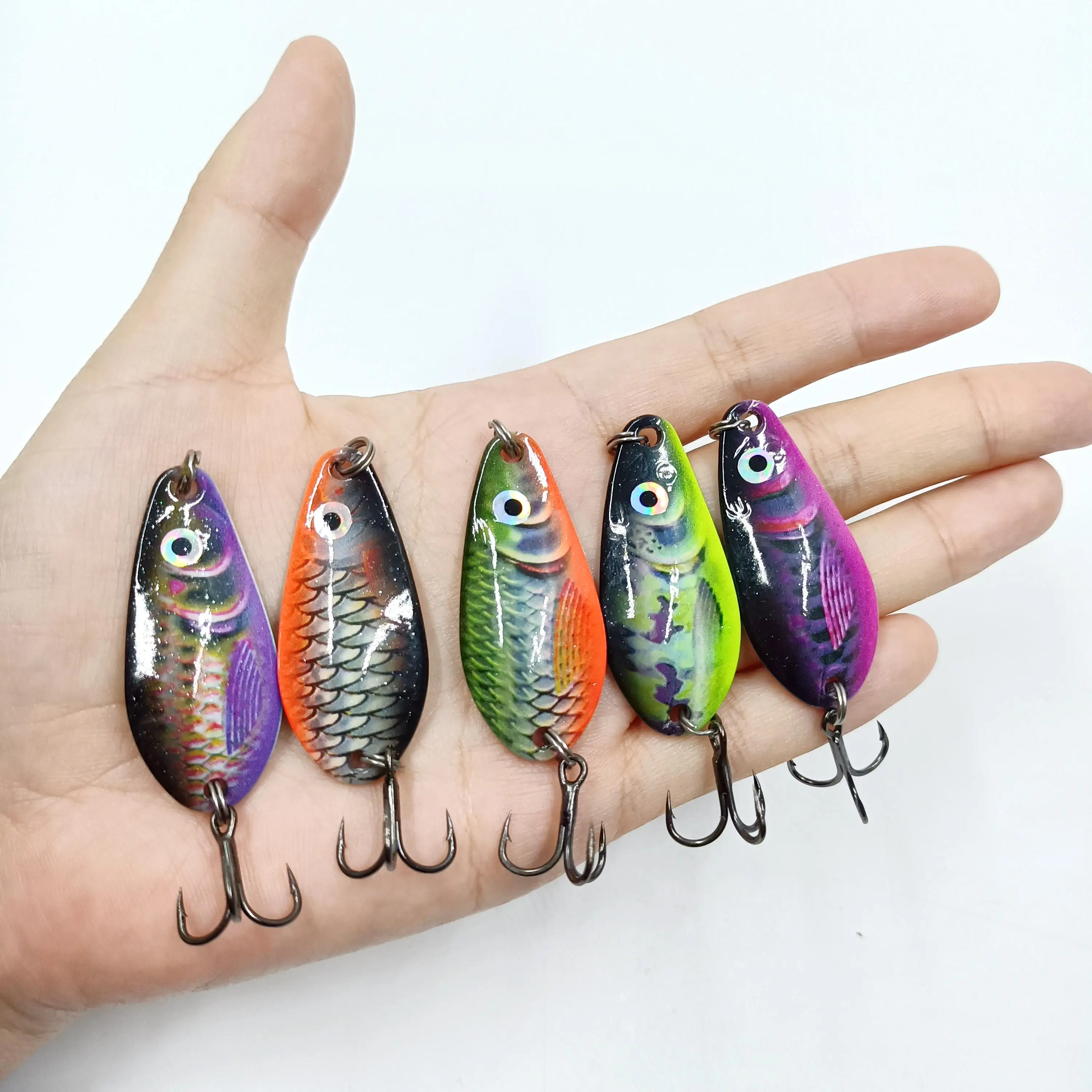 DUODUOYU, 1 Uds., cuchara para trucha con estampado 3D, señuelo de pesca de 10g/45mm, cebo Artificial Vib Metal JIG, señuelo para cuchara de pesca para trucha, perca, Lucio