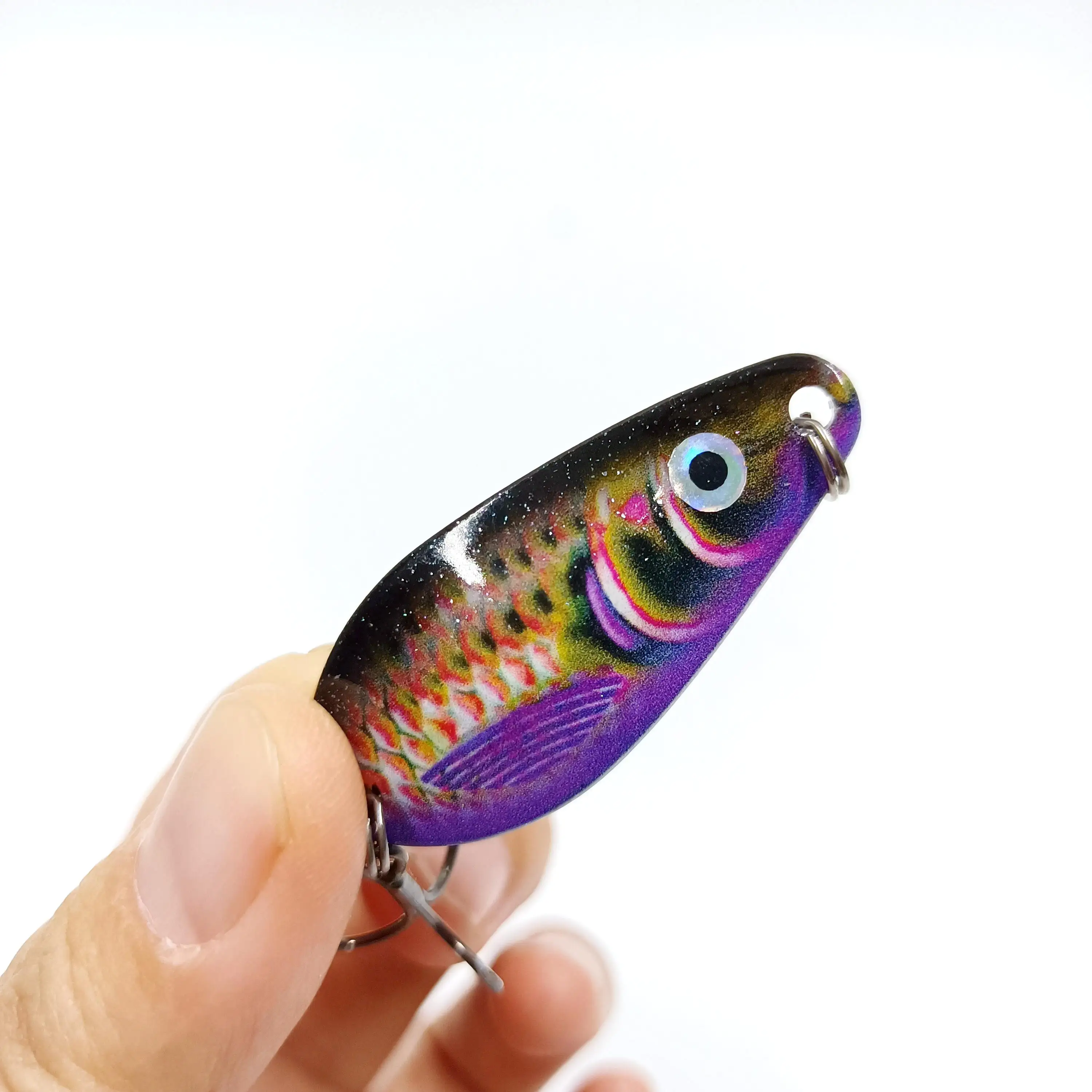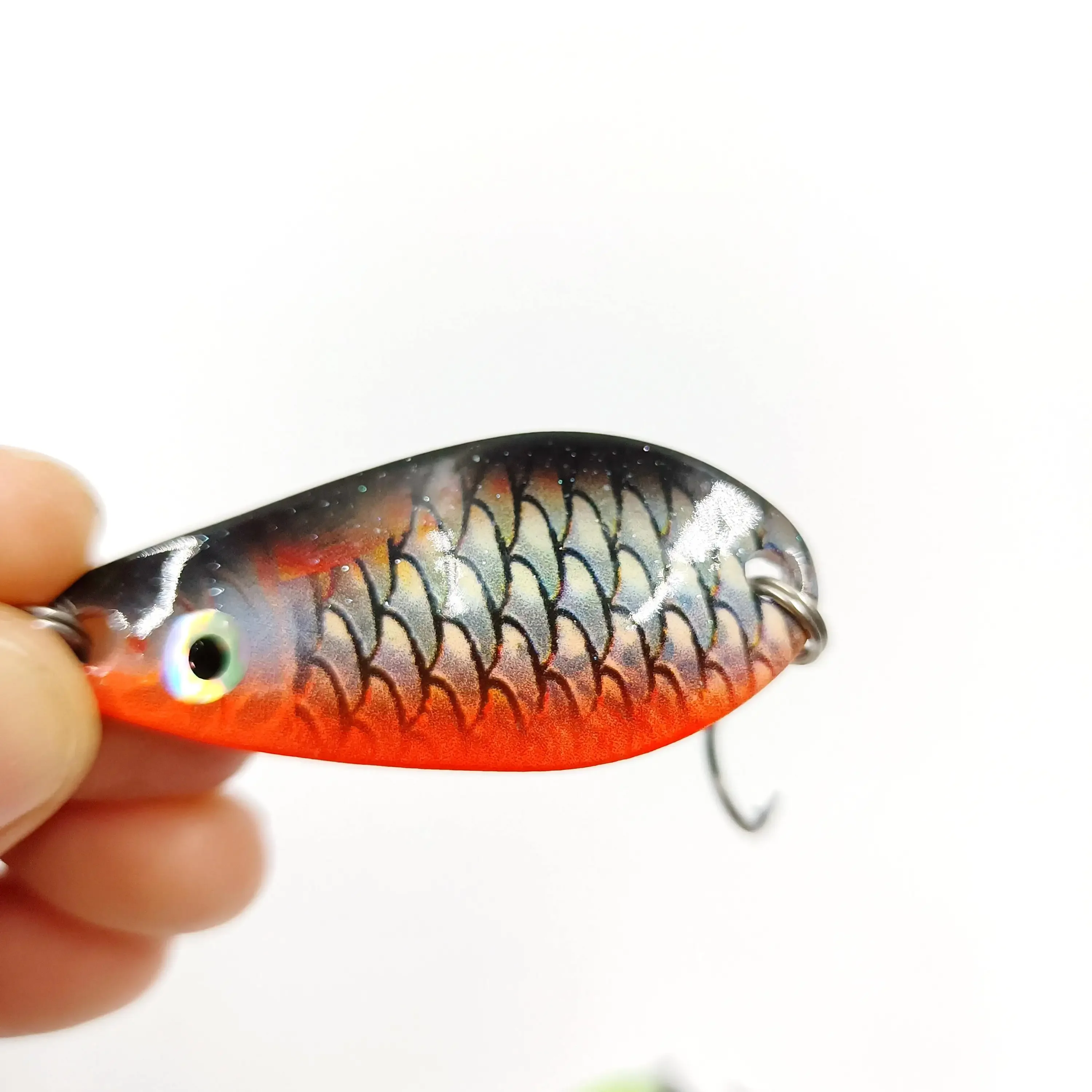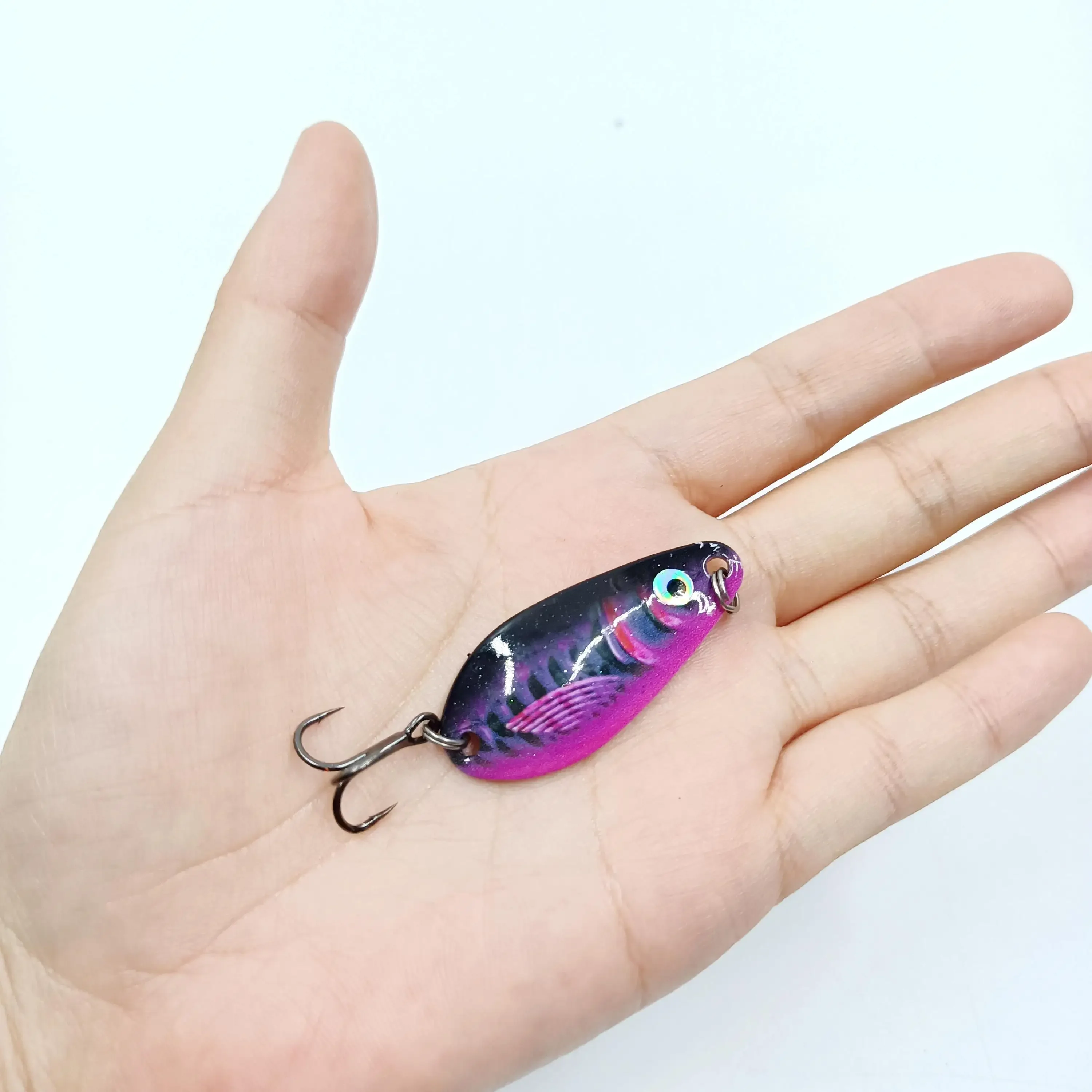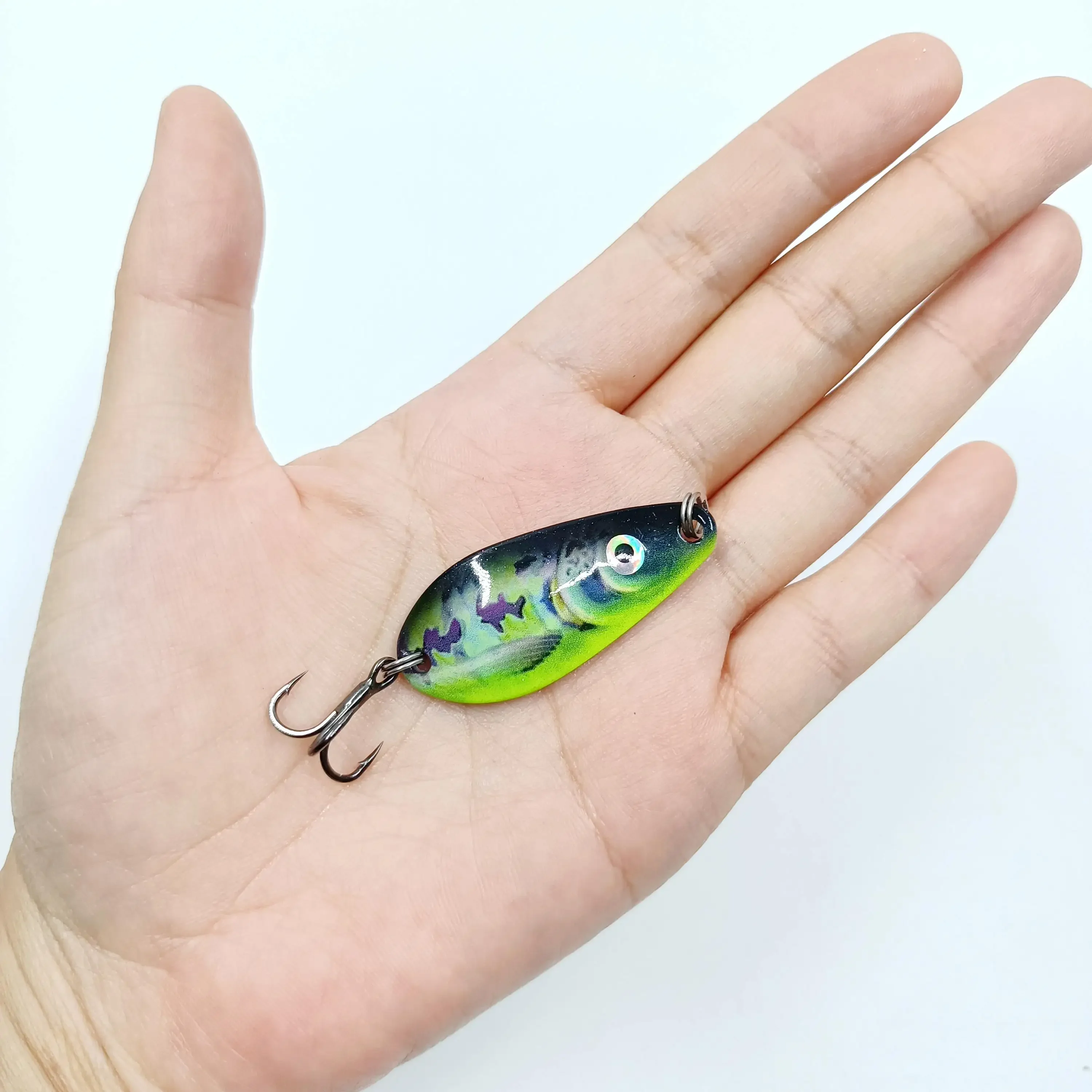 DUODUOYU, 1 Uds., cuchara para trucha con estampado 3D, señuelo de pesca de 10g/45mm, cebo Artificial Vib Metal JIG, señuelo para cuchara de pesca para trucha, perca, Lucio
