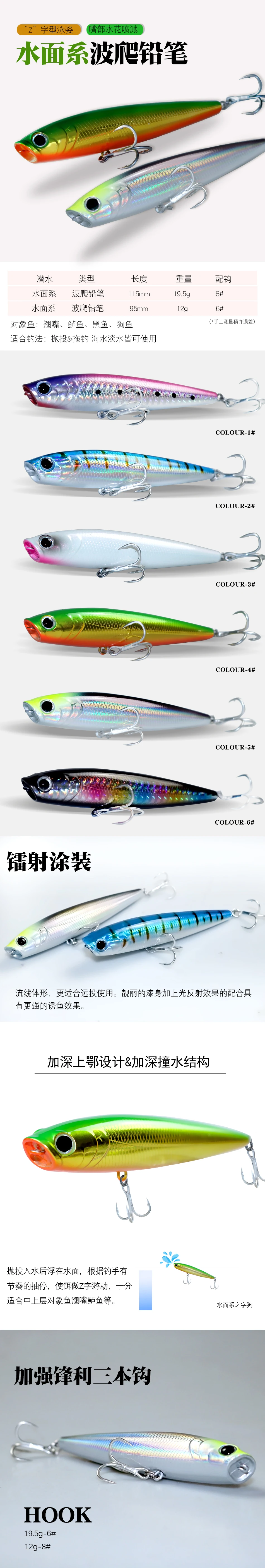 DUODUOYU 1 Uds nuevo señuelo de pesca Popper 12g/19,5g Topwater lápiz Popper Wobbler para pesca de lubina señuelos de superficie de agua salada