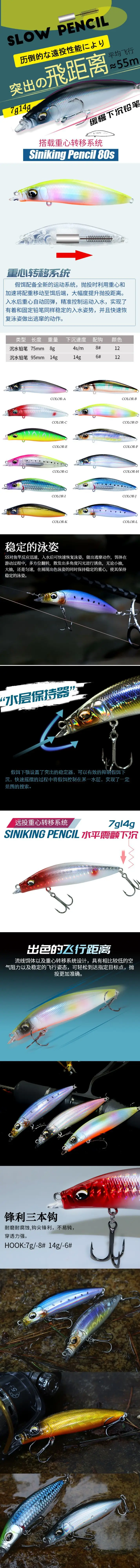 DUODUOYU 1 Uds. Señuelo de pesca con lápiz de hundimiento lento 8g 14g Minnow Crankbait Wobbler cebo duro Artificial de fundición larga señuelo para trucha lubina