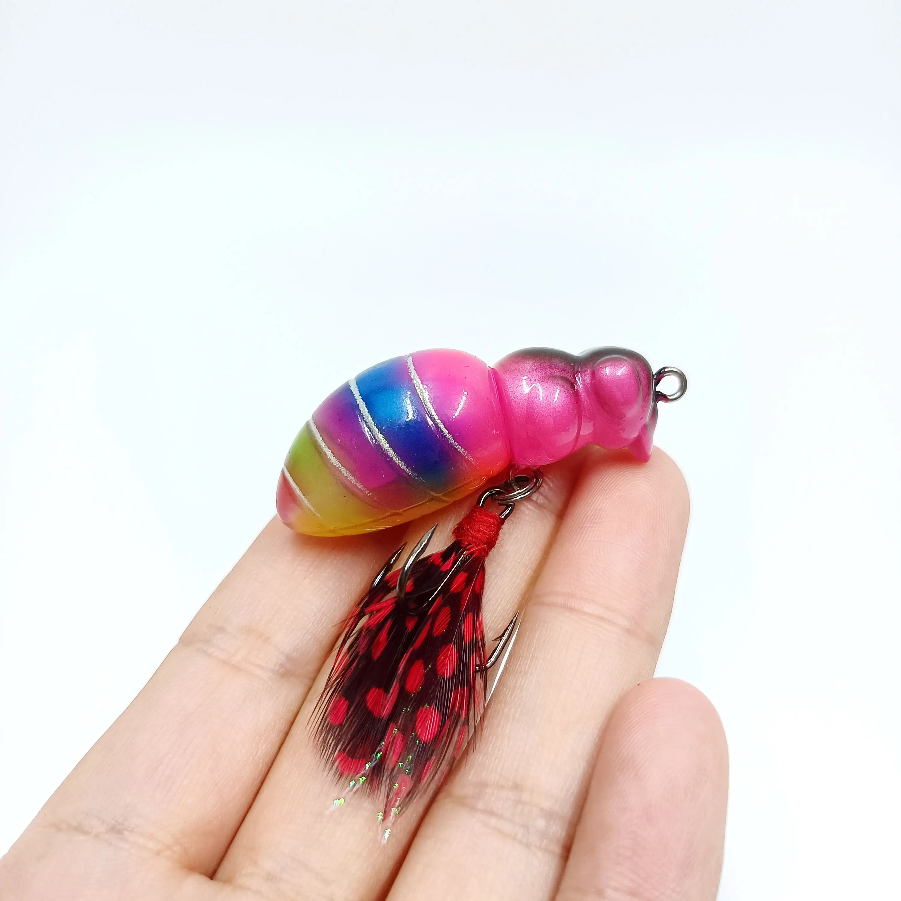 DUODUOYU, 1 Uds., señuelo de pesca con mosca tipo lápiz flotante, 4,7 cm, 5,5g, cebo para mosca seca, señuelo de abeja, anzuelo de plumas, Swimbait, aparejos de pesca de insectos