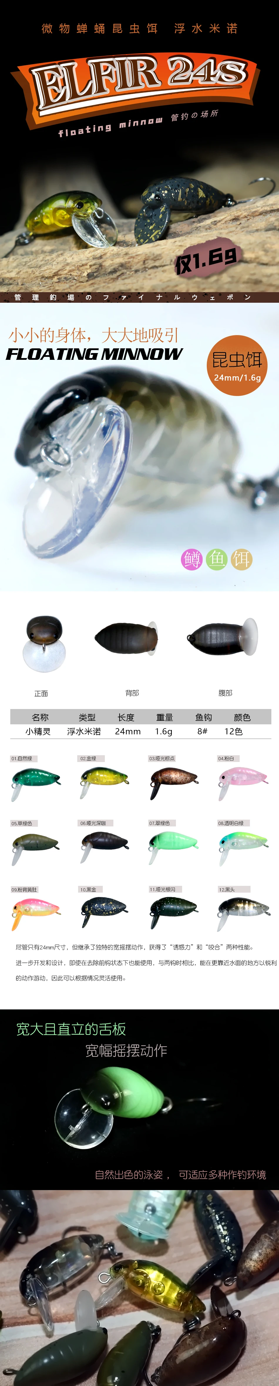 DUODUOYU, 1 Uds., señuelo de pesca de pececillo pequeño, 1,6g/24mm, Mini cebo duro flotante, Wobblers de manivela para perca, trucha, aparejos de pesca de lubina