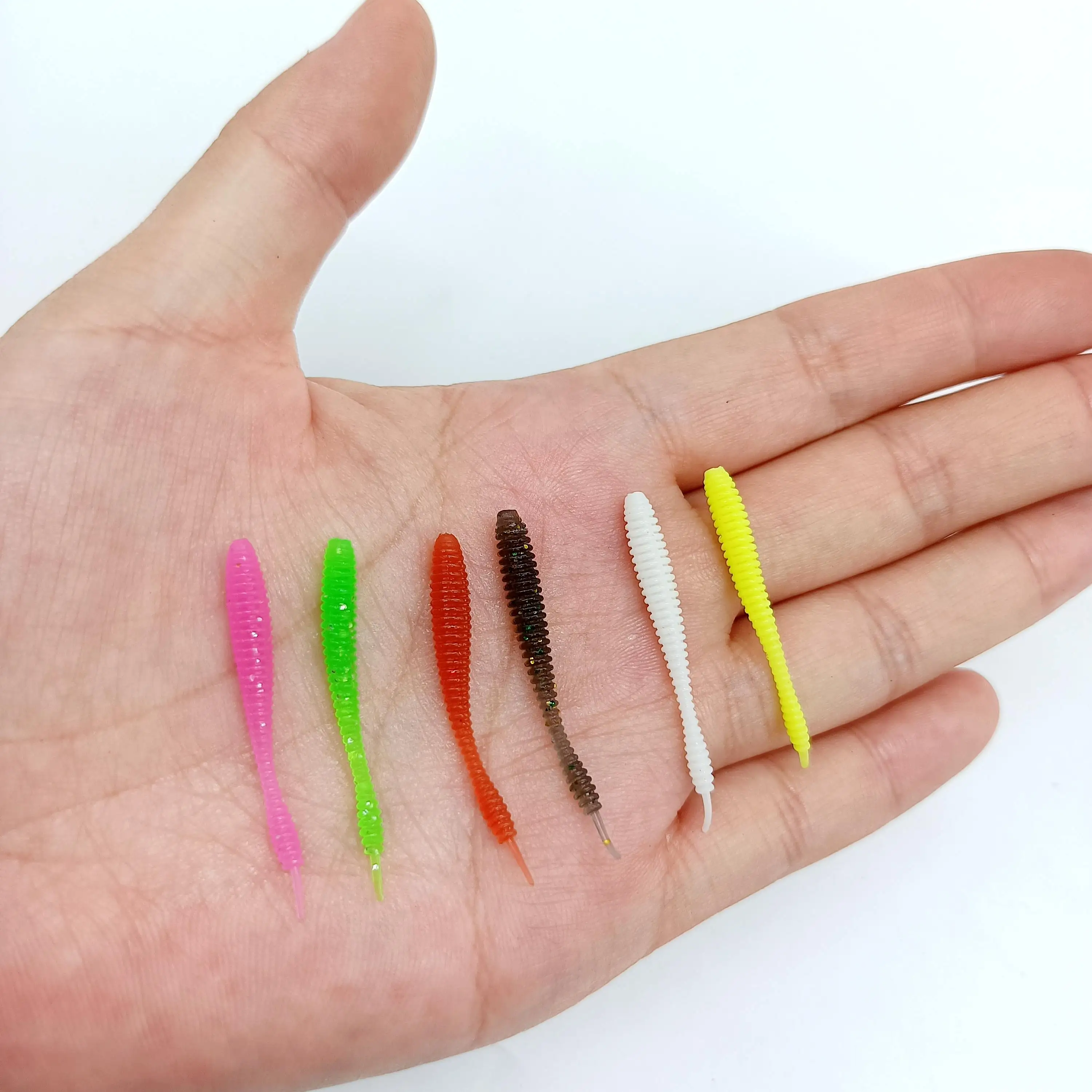 DUODUOYU, 10 Uds., Mini Señuelos blandos para pesca en roca oceánica, 0,15g/40mm, cebos artificiales de gusano suave, cebo de silicona para lubina, accesorios de pesca