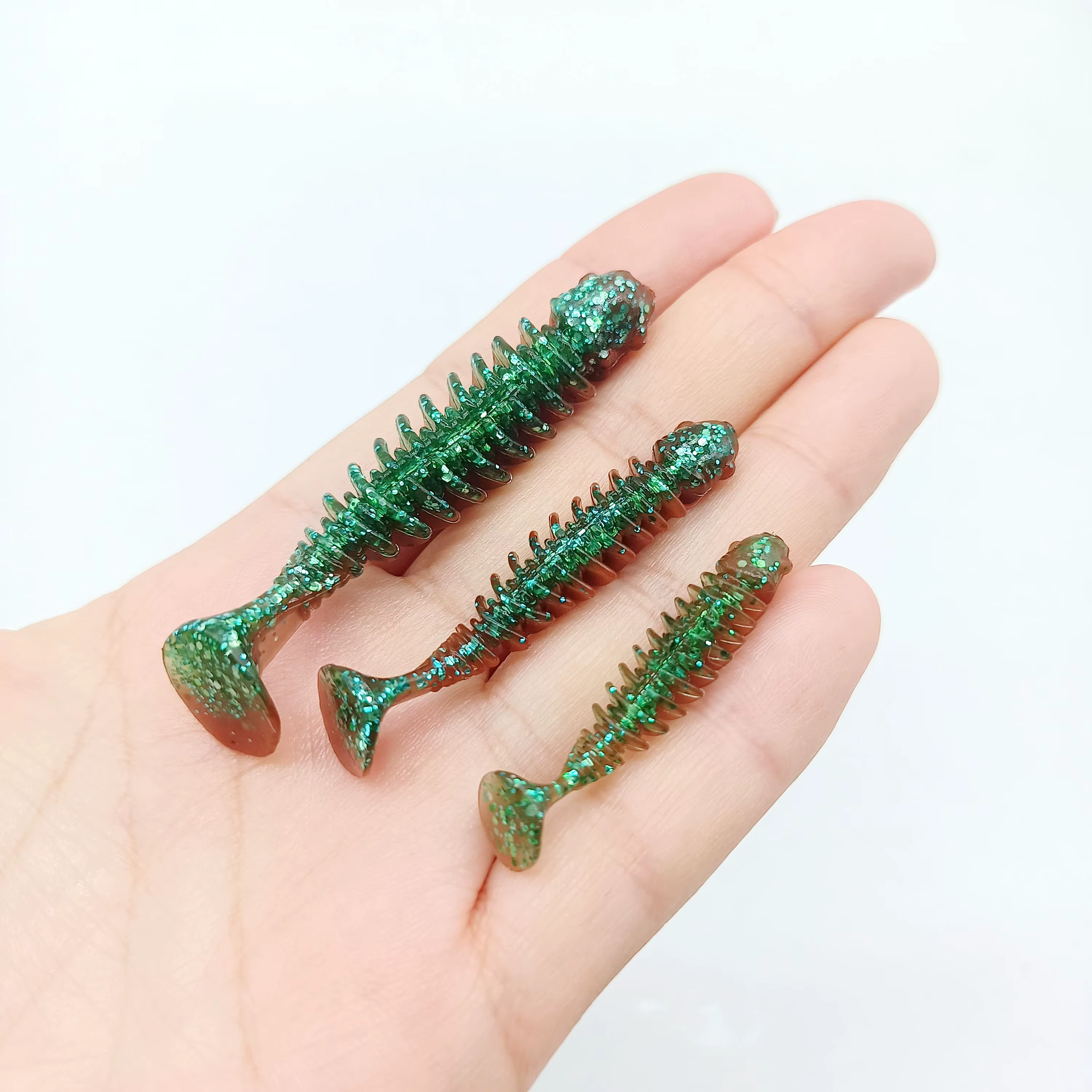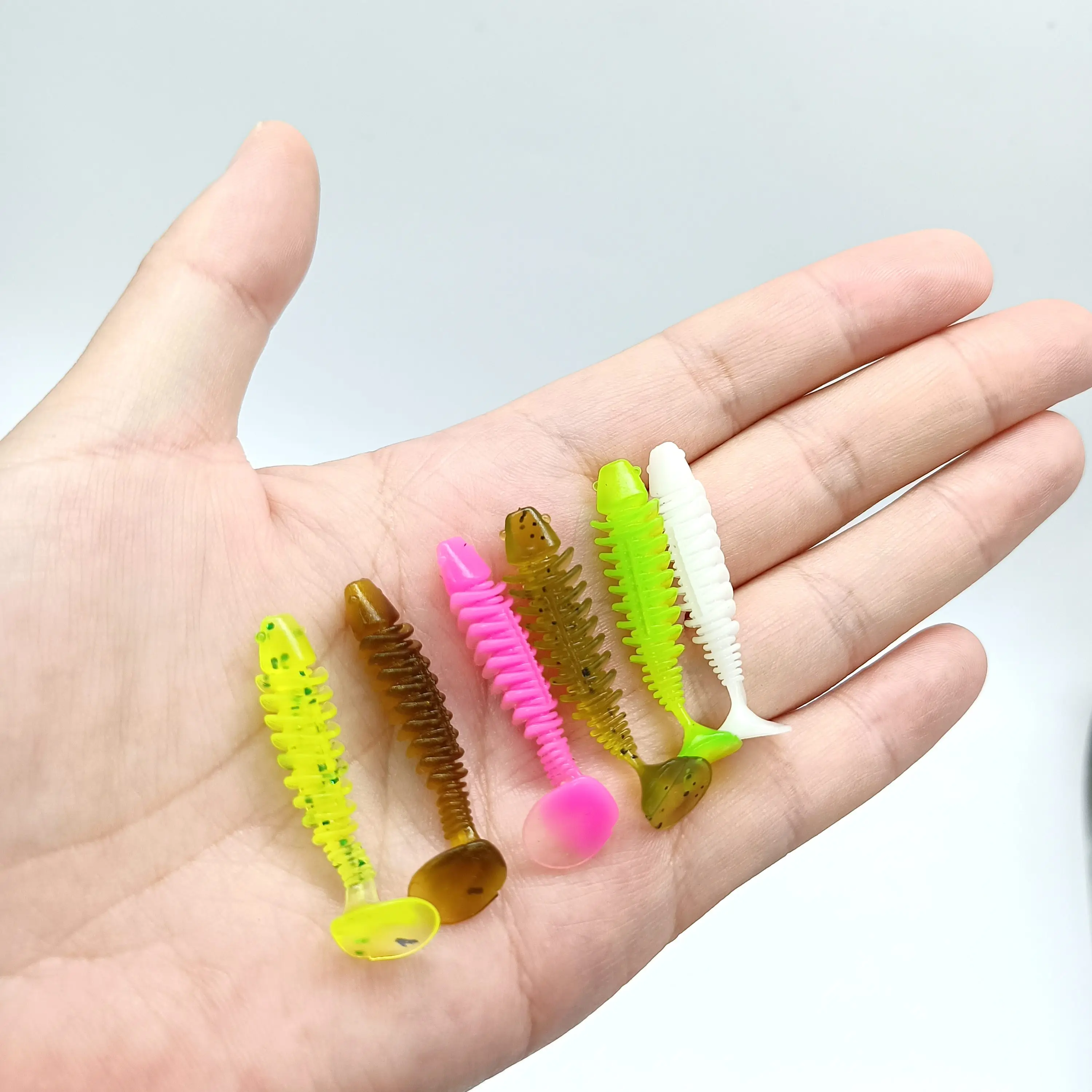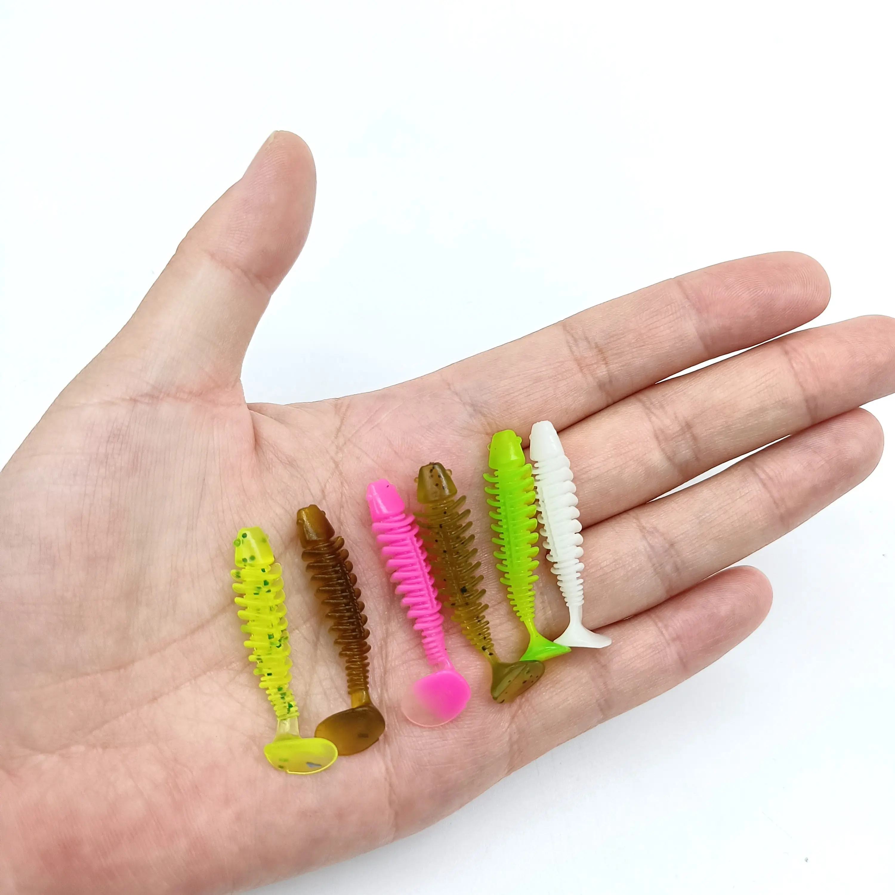 DUODUOYU 10 Uds. Señuelos de pesca blandos con cola en T 40mm/50mm/65mm cebos de plástico Swimbait señuelo de Jigging cebos artificiales aparejos de pesca