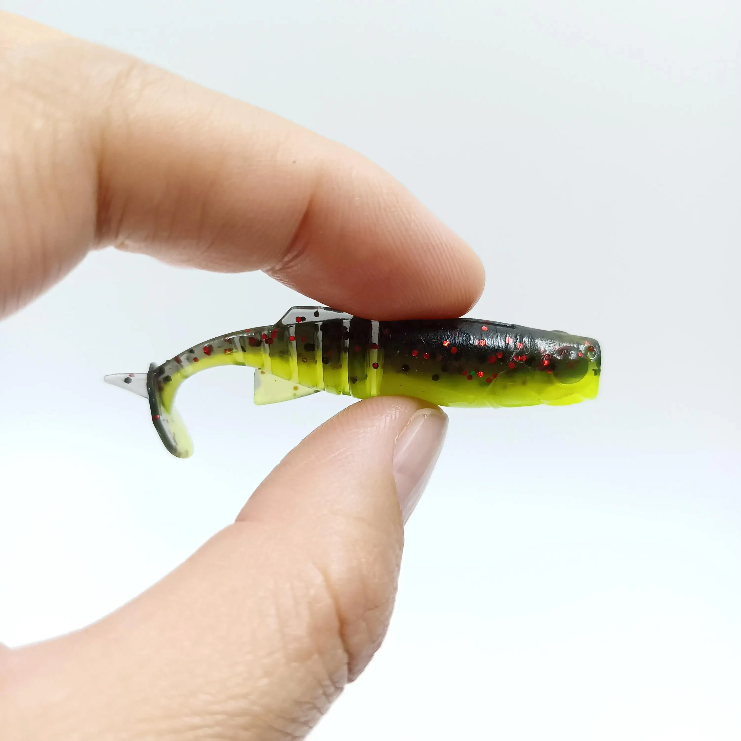 DUODUOYU 10 Uds TPE t-tail Señuelos de Pesca blandos 1,7g 55mm Mini gusano suave Swimbait Jigging señuelo cebos artificiales aparejos de pesca