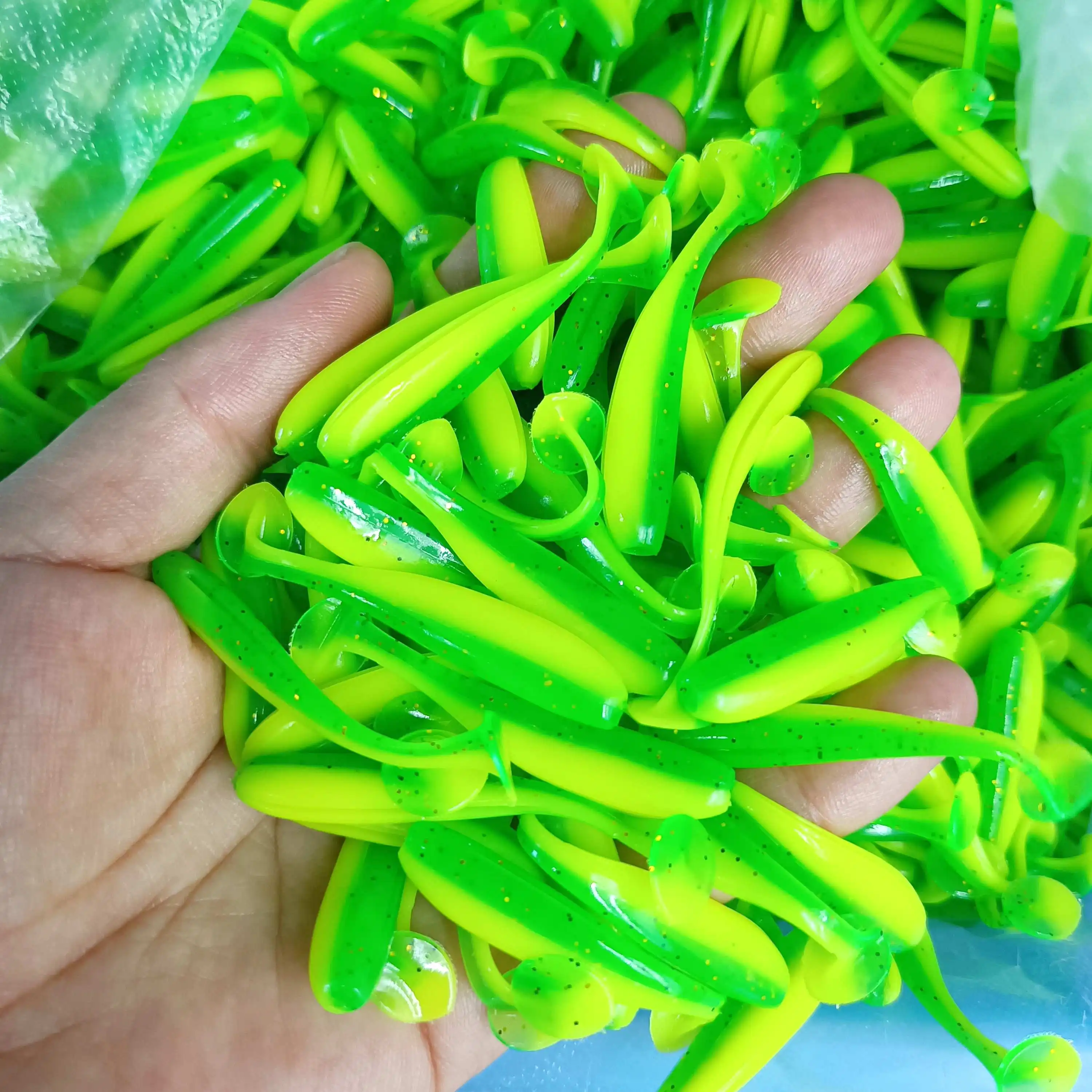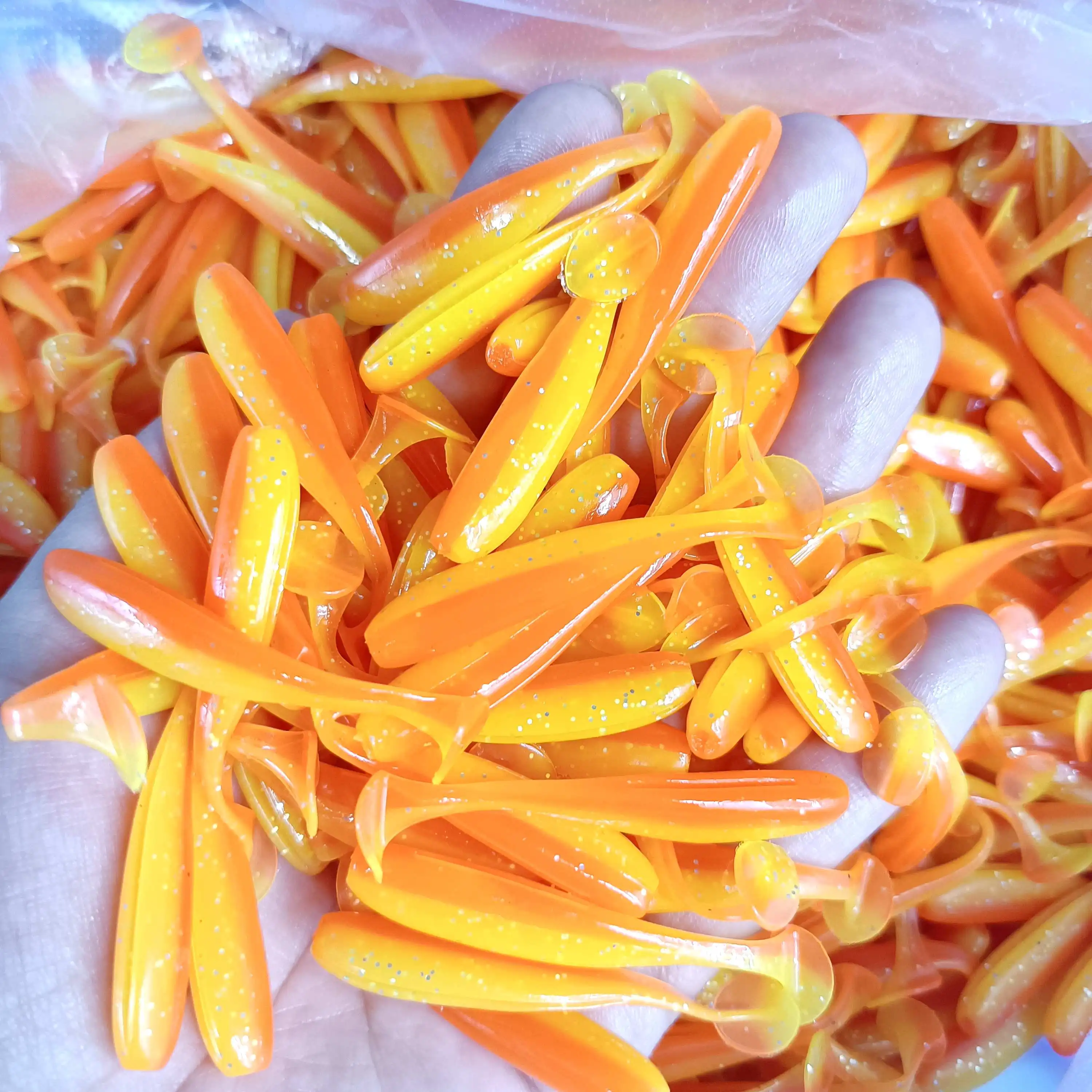 DUODUOYU 20 piezas Venta caliente Señuelos de Pesca blandos 1g/50mm cola en T señuelo de gusano pequeño cebo Artificial plantilla Wobblers lubina aparejos de pesca