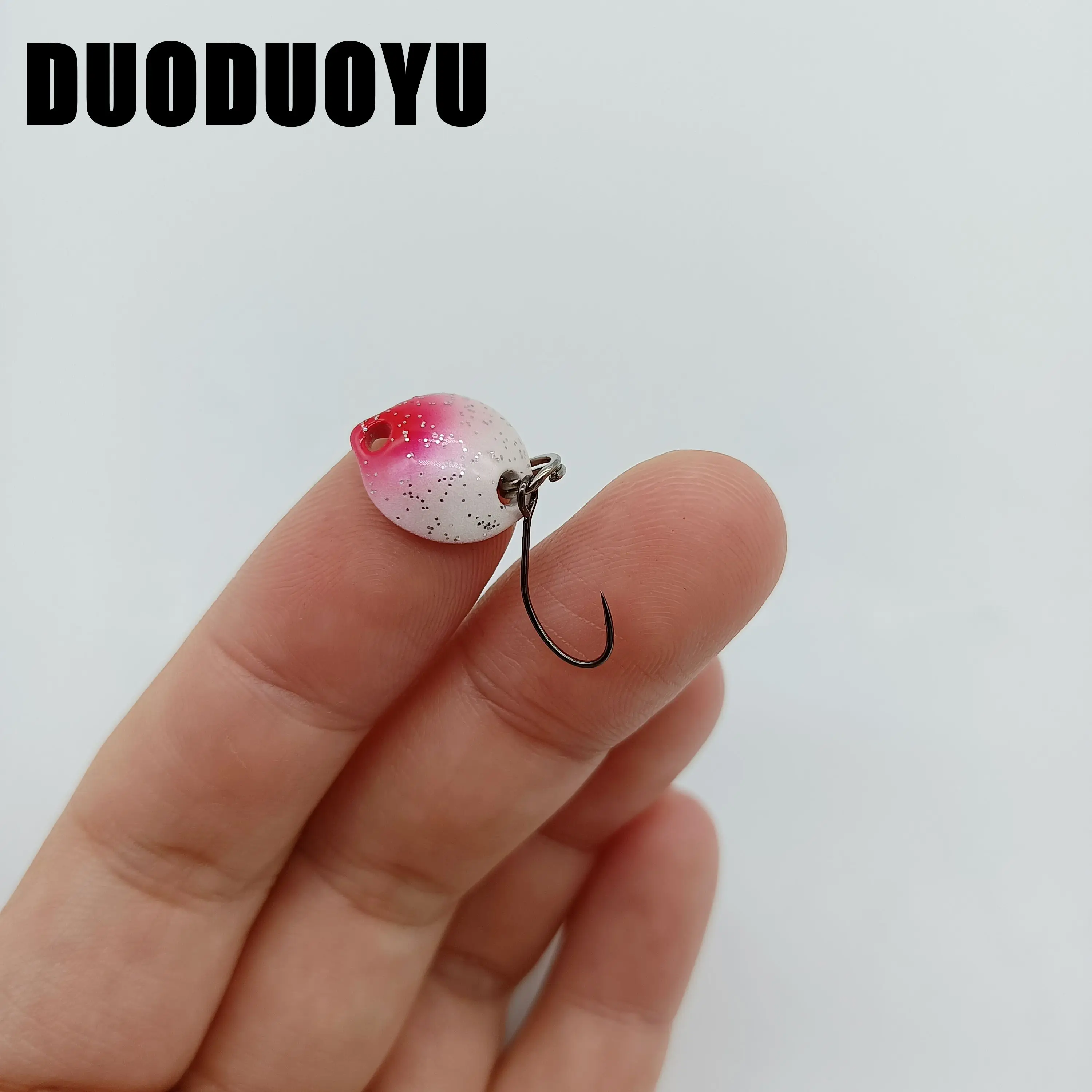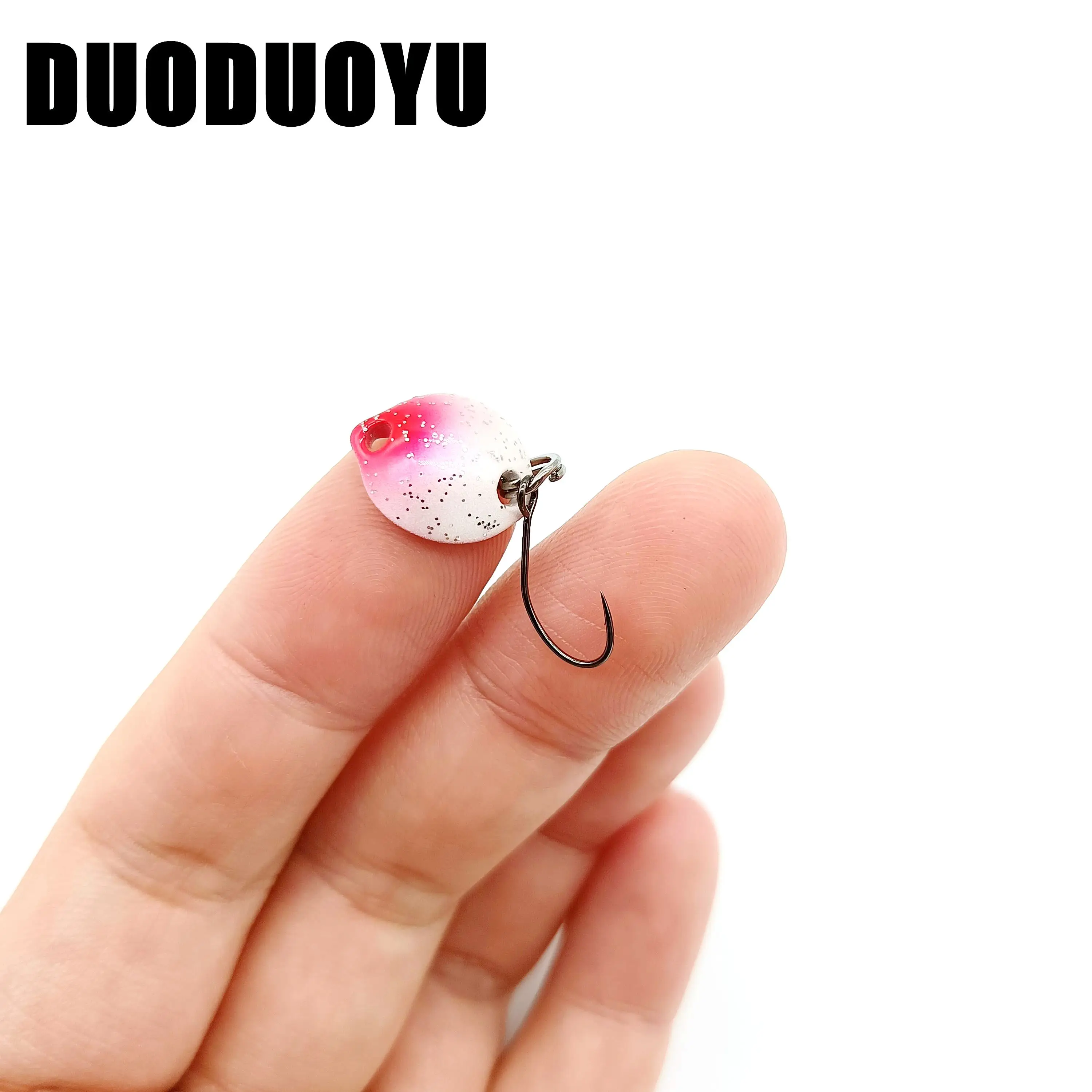 DUODUOYU-Mini señuelo de pesca de 1 piezas, cebo metálico de 1,8g/14mm, de un solo gancho, giratorio, duro, para trucha, lubina, Lucio, pesca en hielo