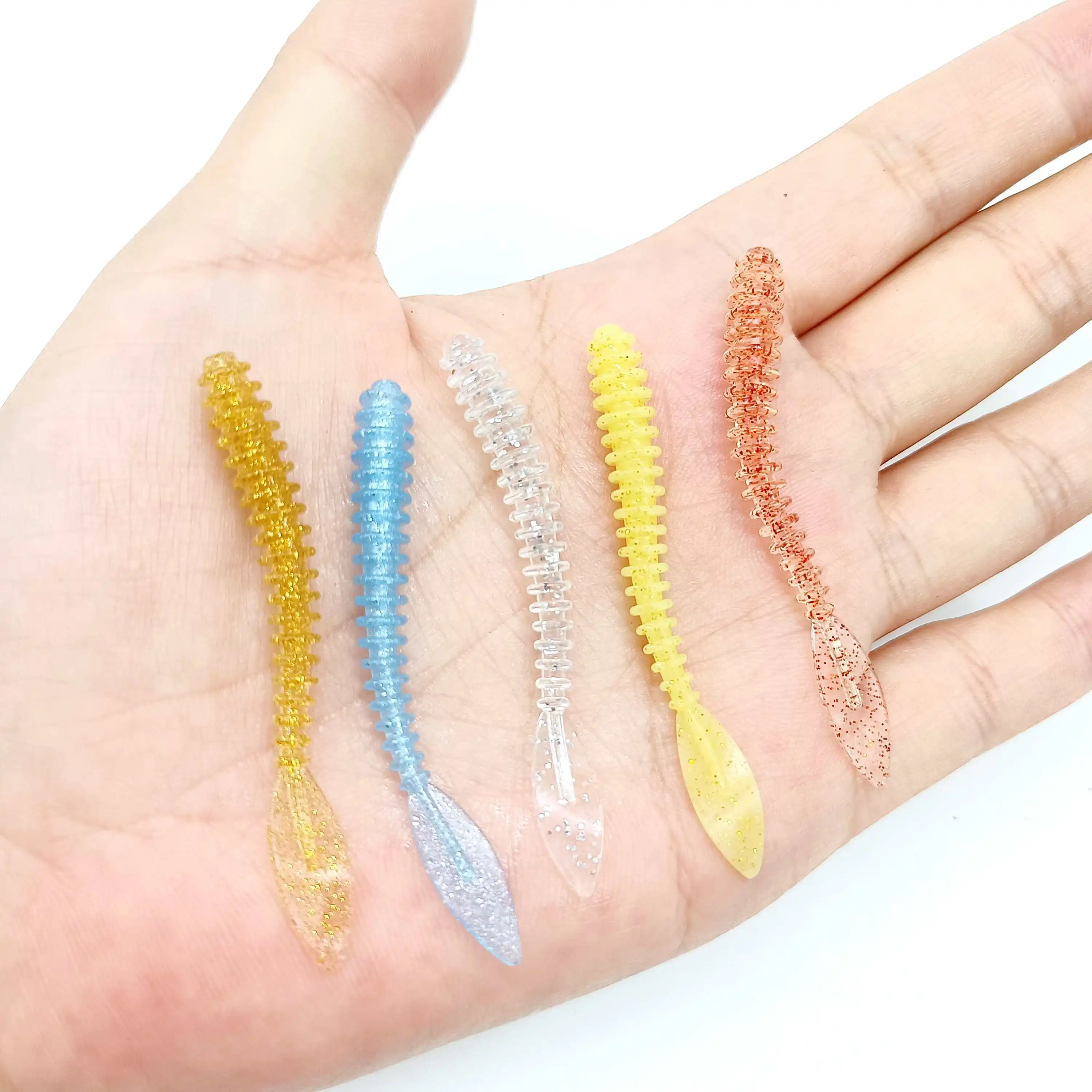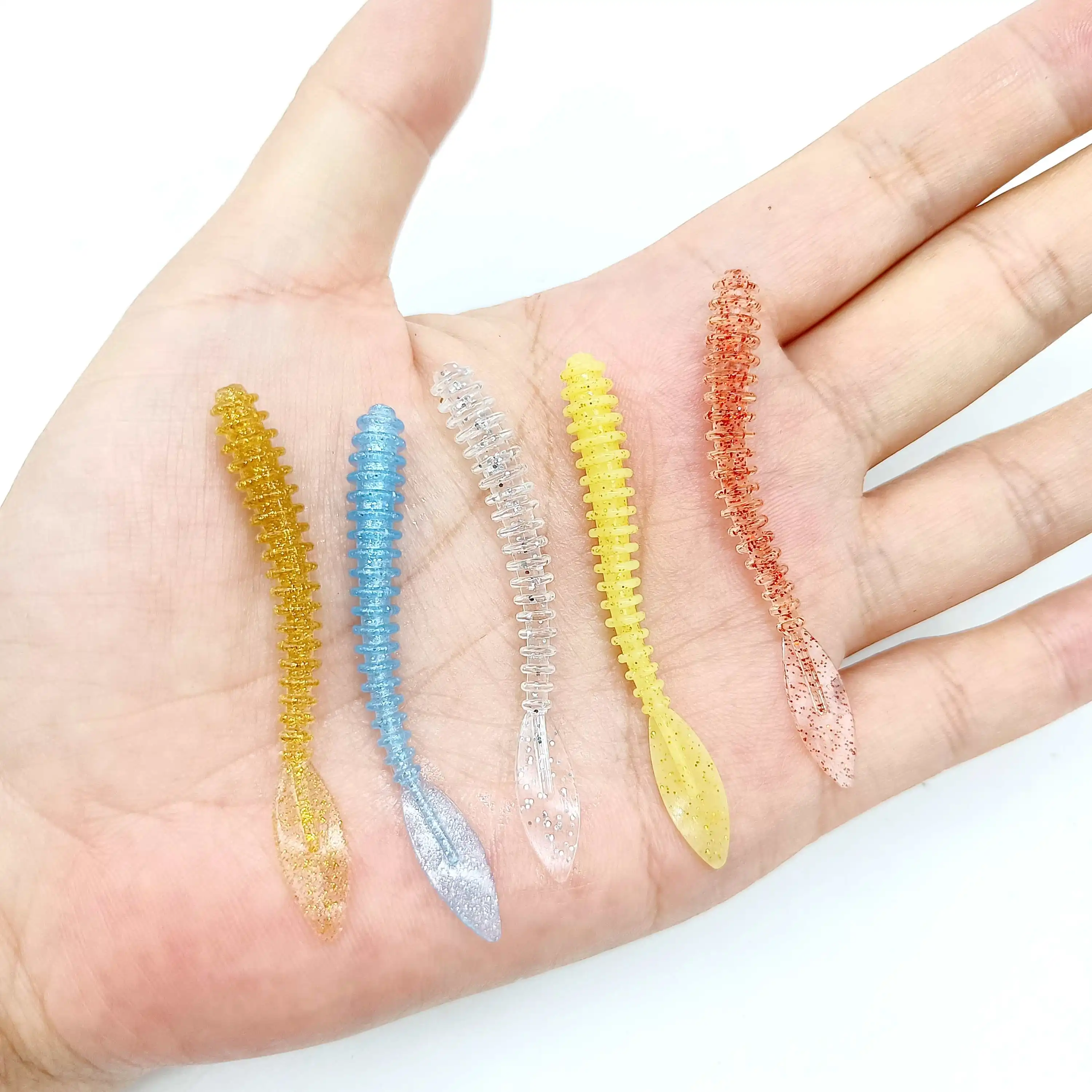 DUODUOYU-Mini Señuelos de Pesca blandos, 10 piezas, 0,6g/55mm, PVC, gusano, pequeño cebo Artificial, Wobblers Jig, Lucio, aparejos de pesca