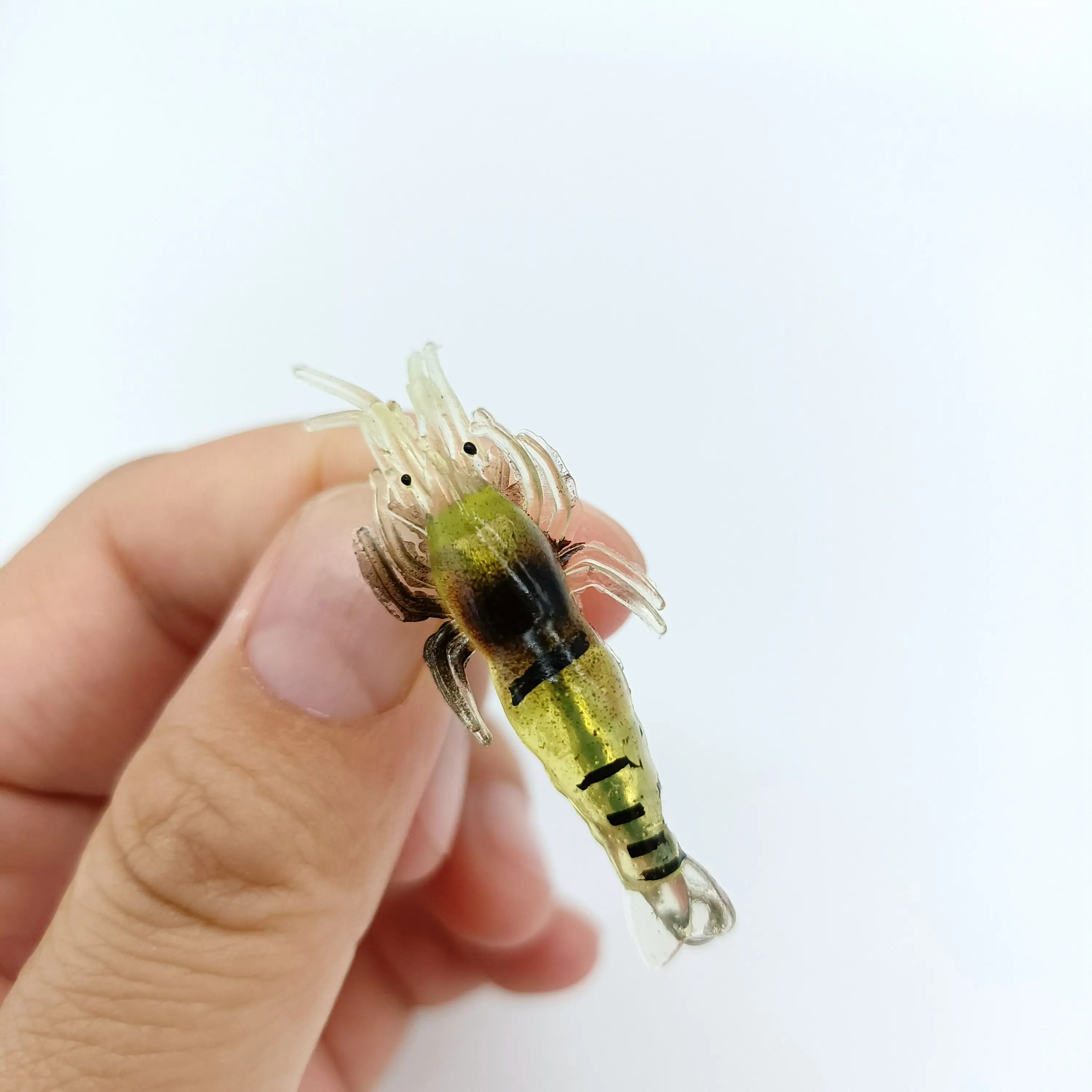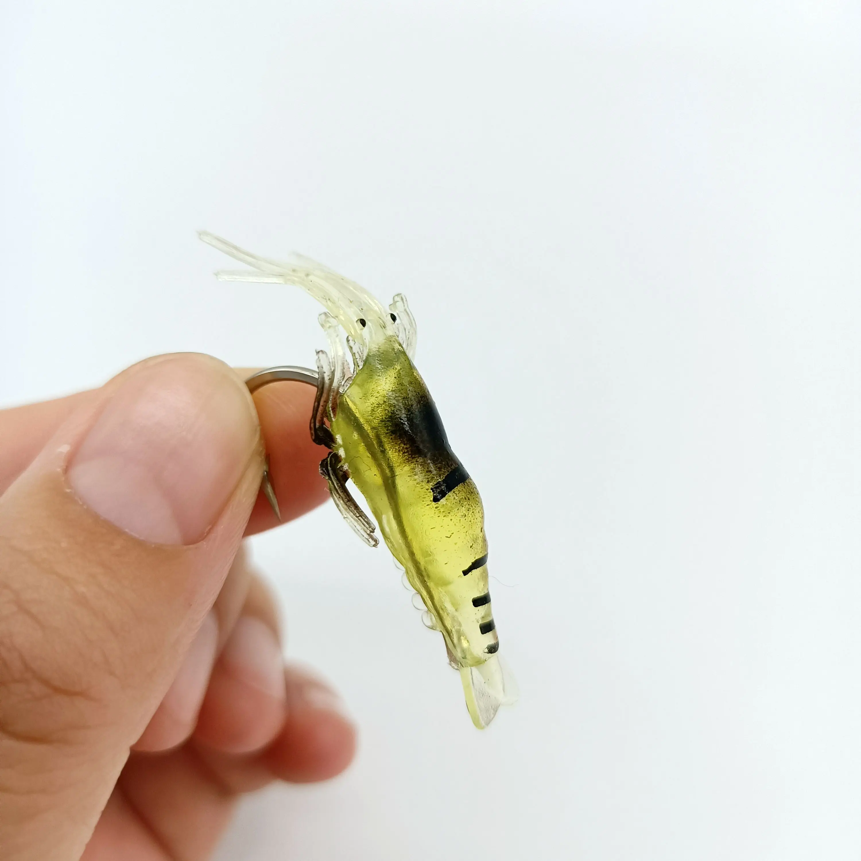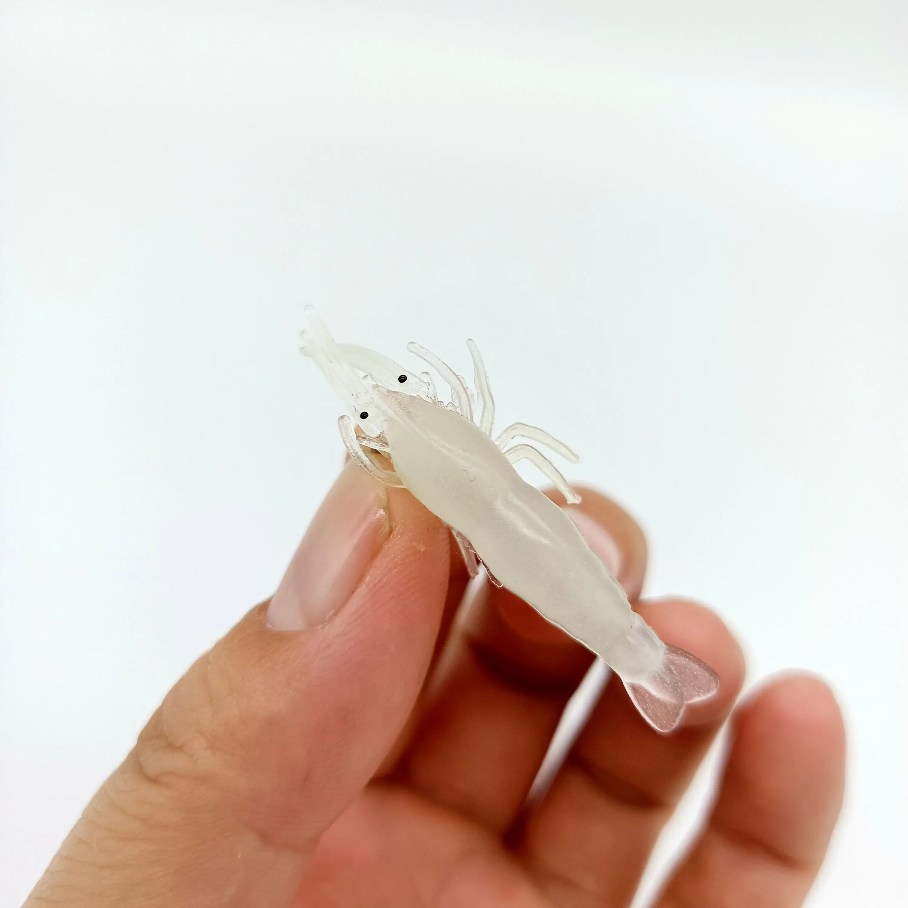 DUODUOYU-señuelo de pesca de camarón suave, cebo artificial Isca de silicona luminosa con un solo gancho, aparejos de pesca, 1,3g/30mm, 10 unidades por lote