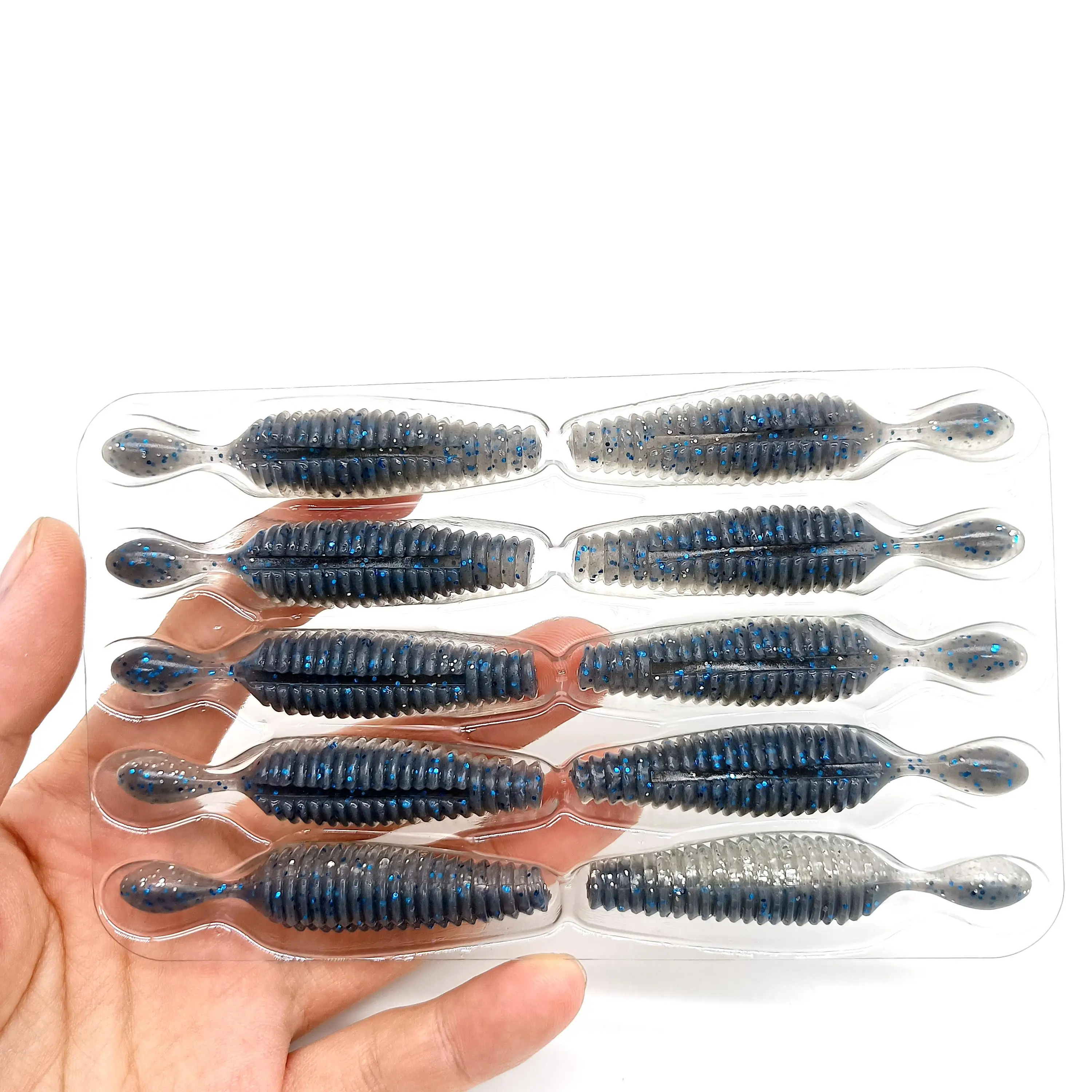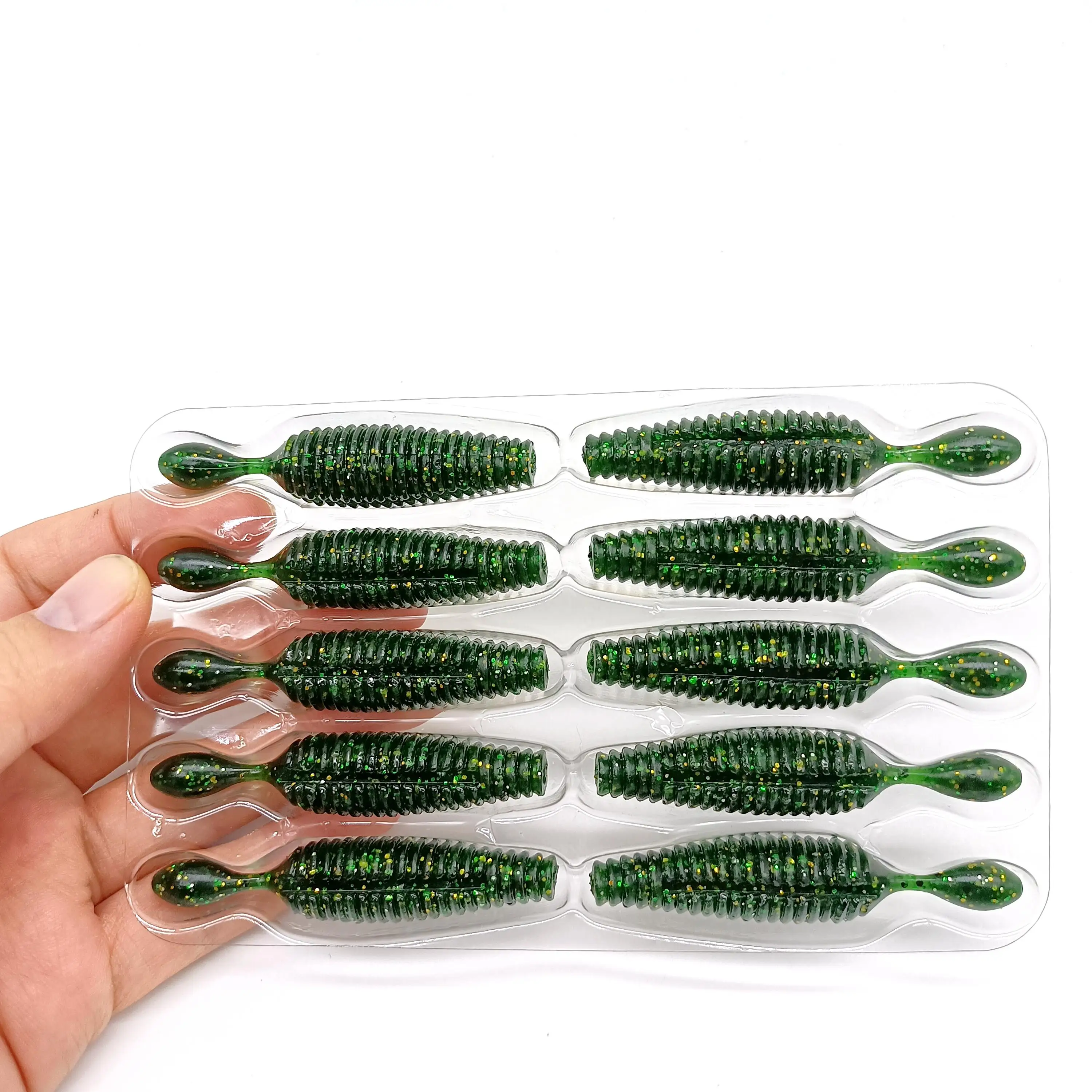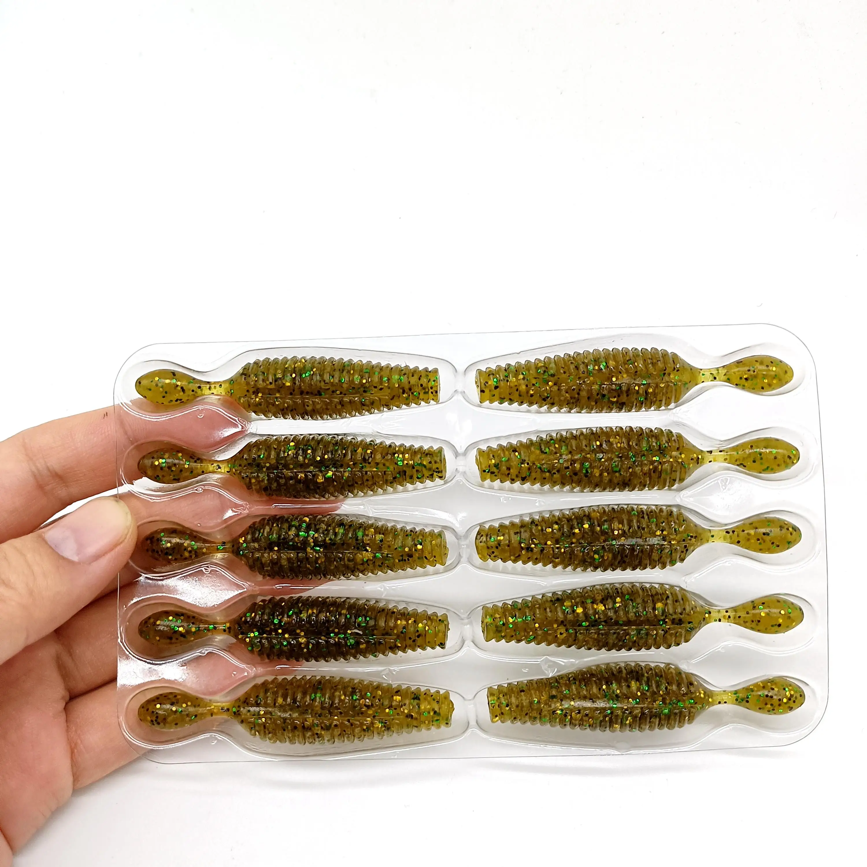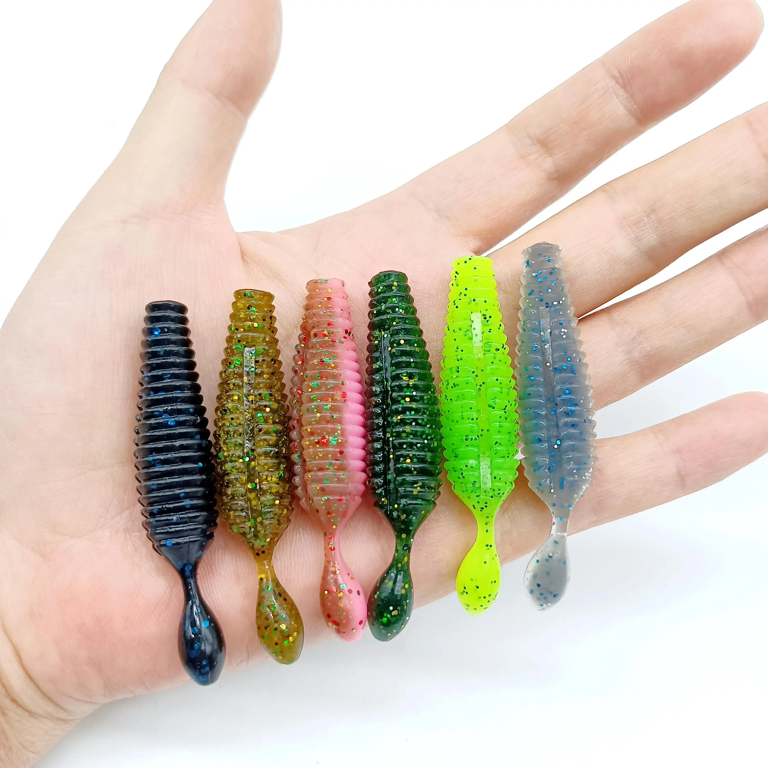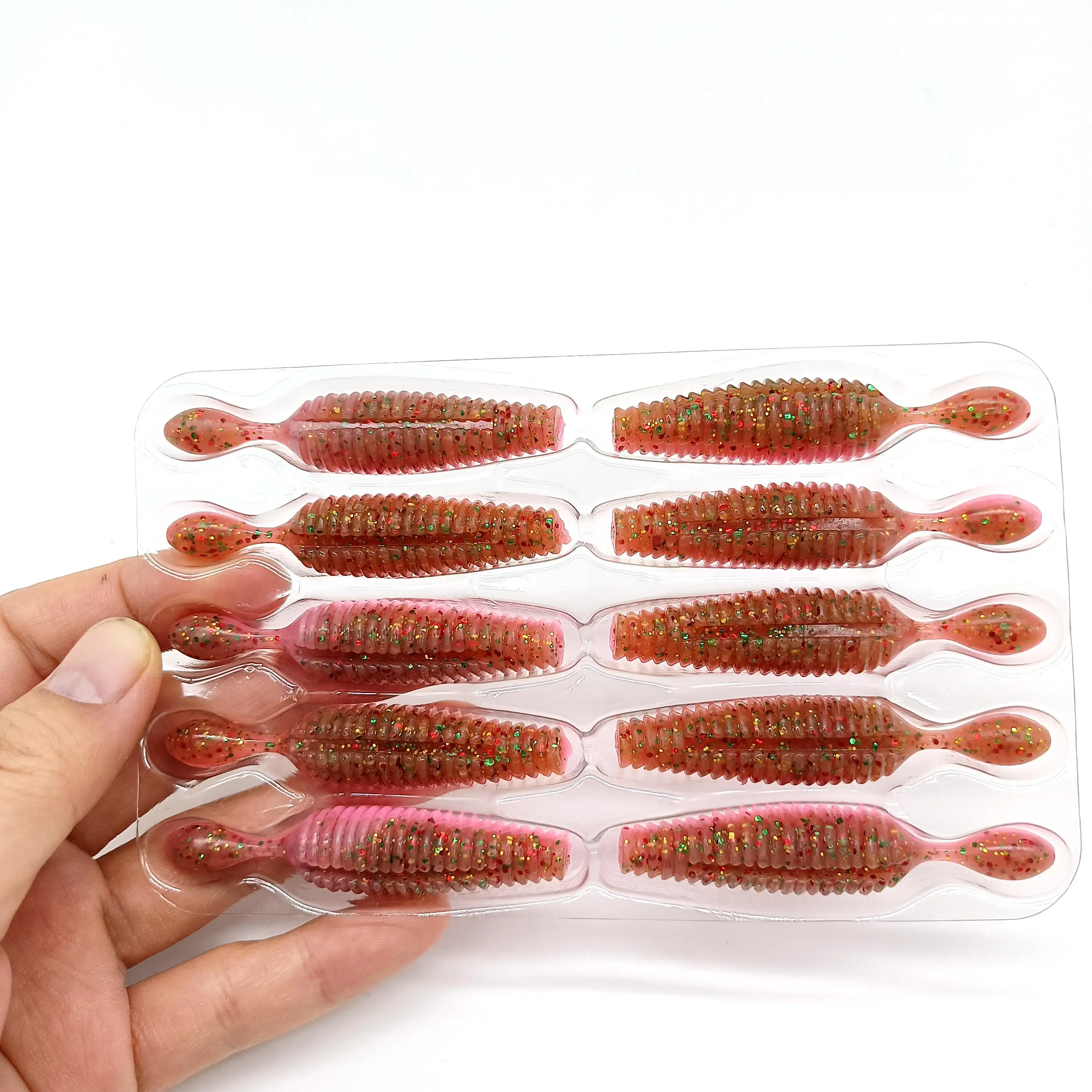 DUODUOYU-señuelo de pesca suave, cebo Artificial de gusano para lubina rosa con aparejos de agua dulce y salada, 10 piezas de patatas, 60mm, 4g