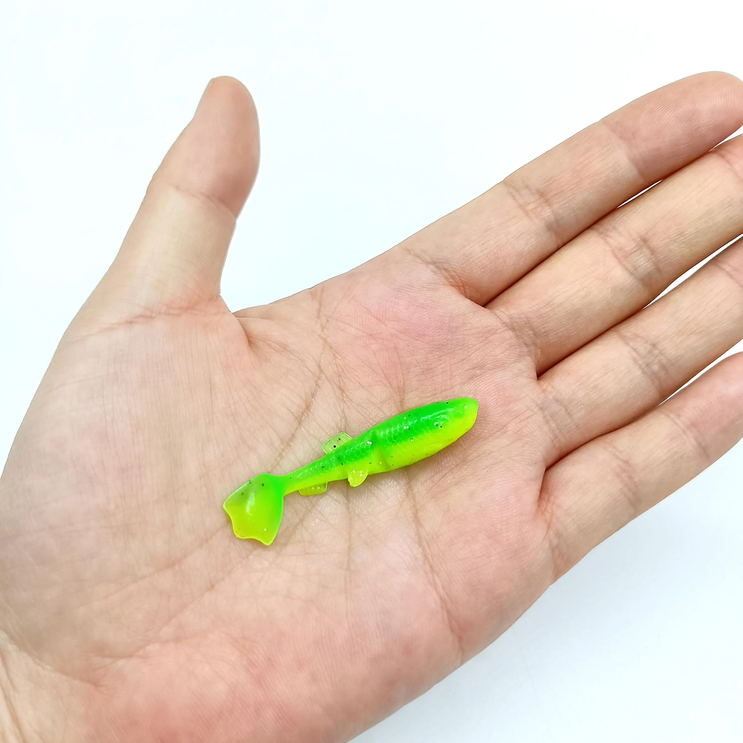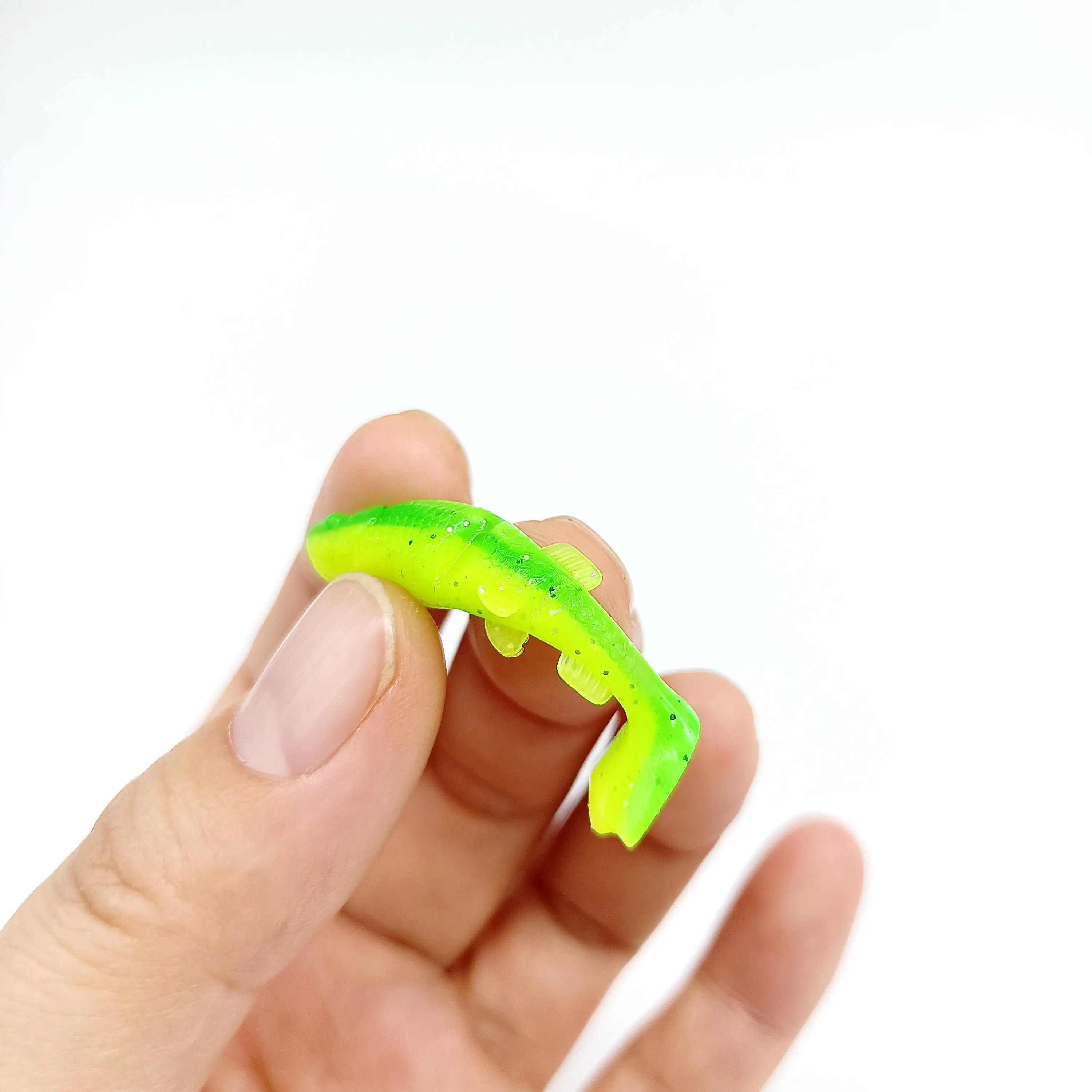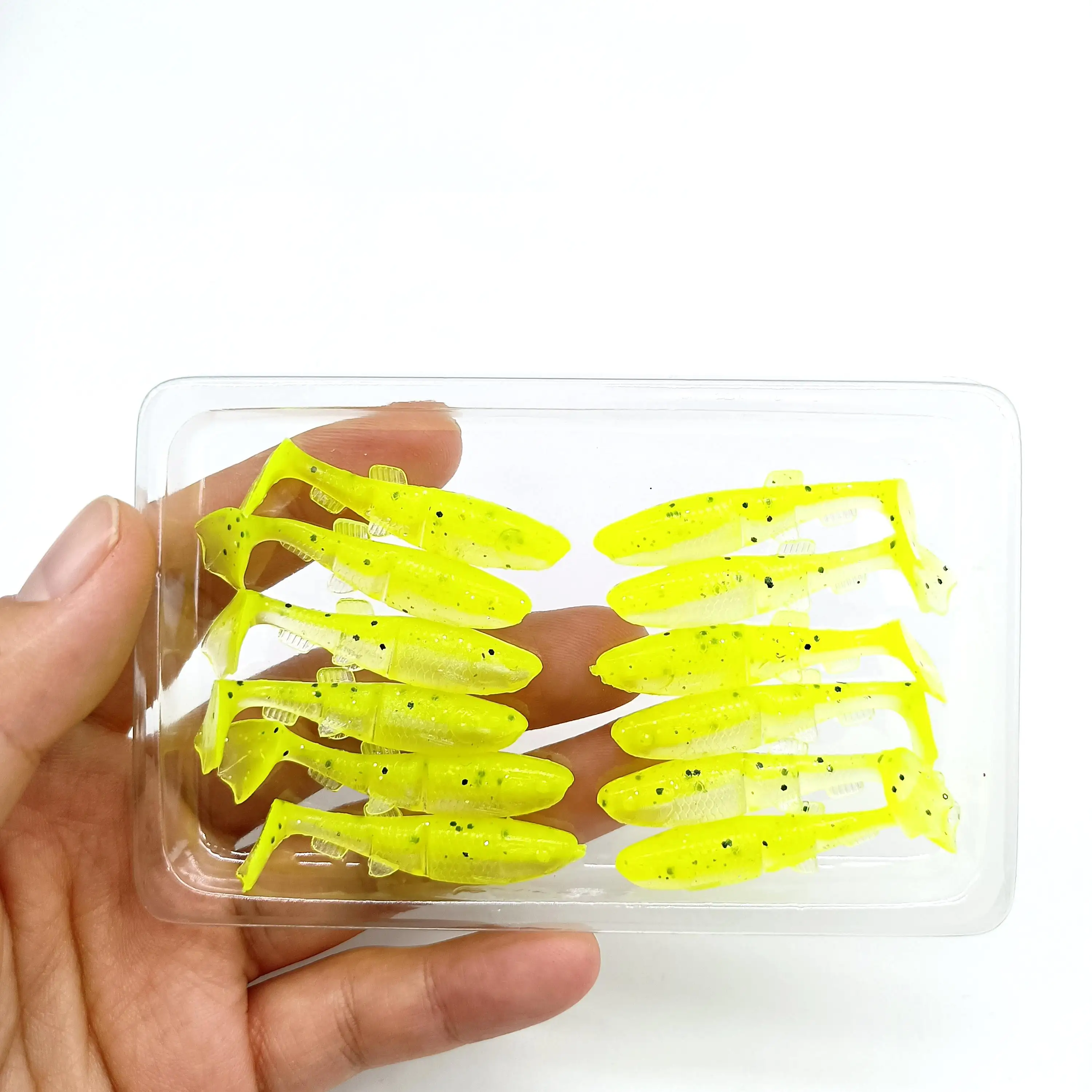 DUODUOYU-señuelo de pesca suave con cola en T flotante, 12 Uds., 1g/40mm, pez pequeño, Swimbait de silicona, Wobbler para Lucio, lubina, sábalo, aparejos de pesca
