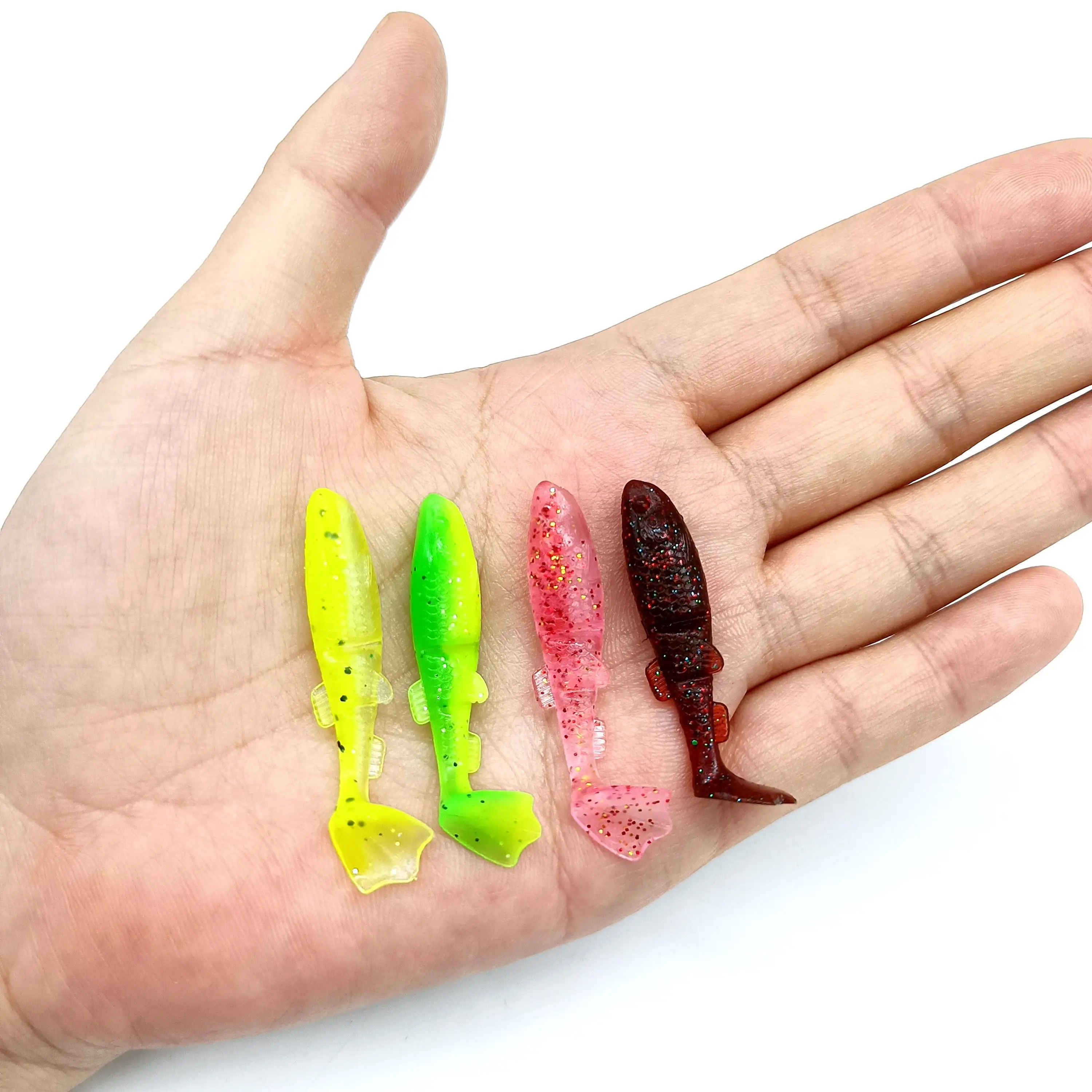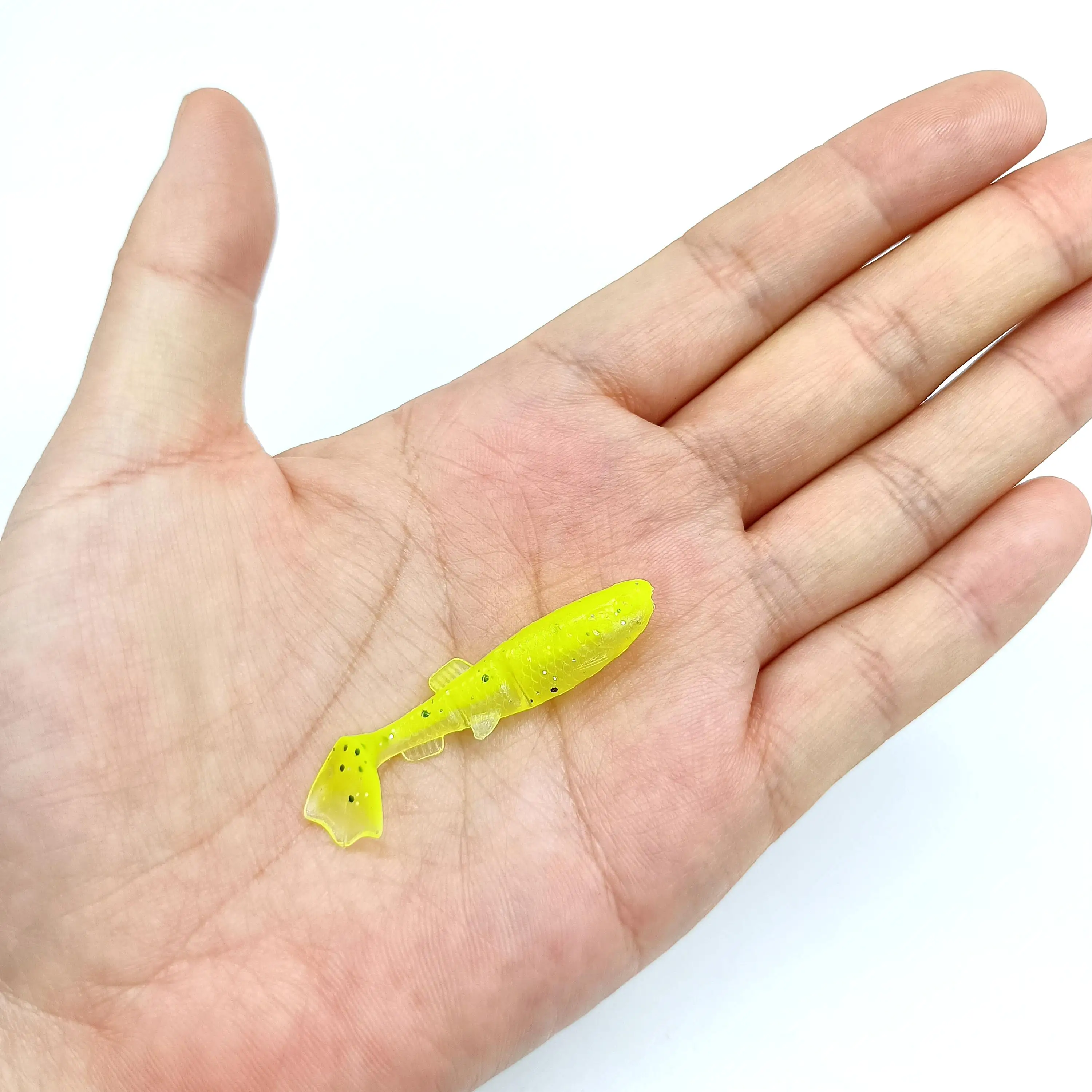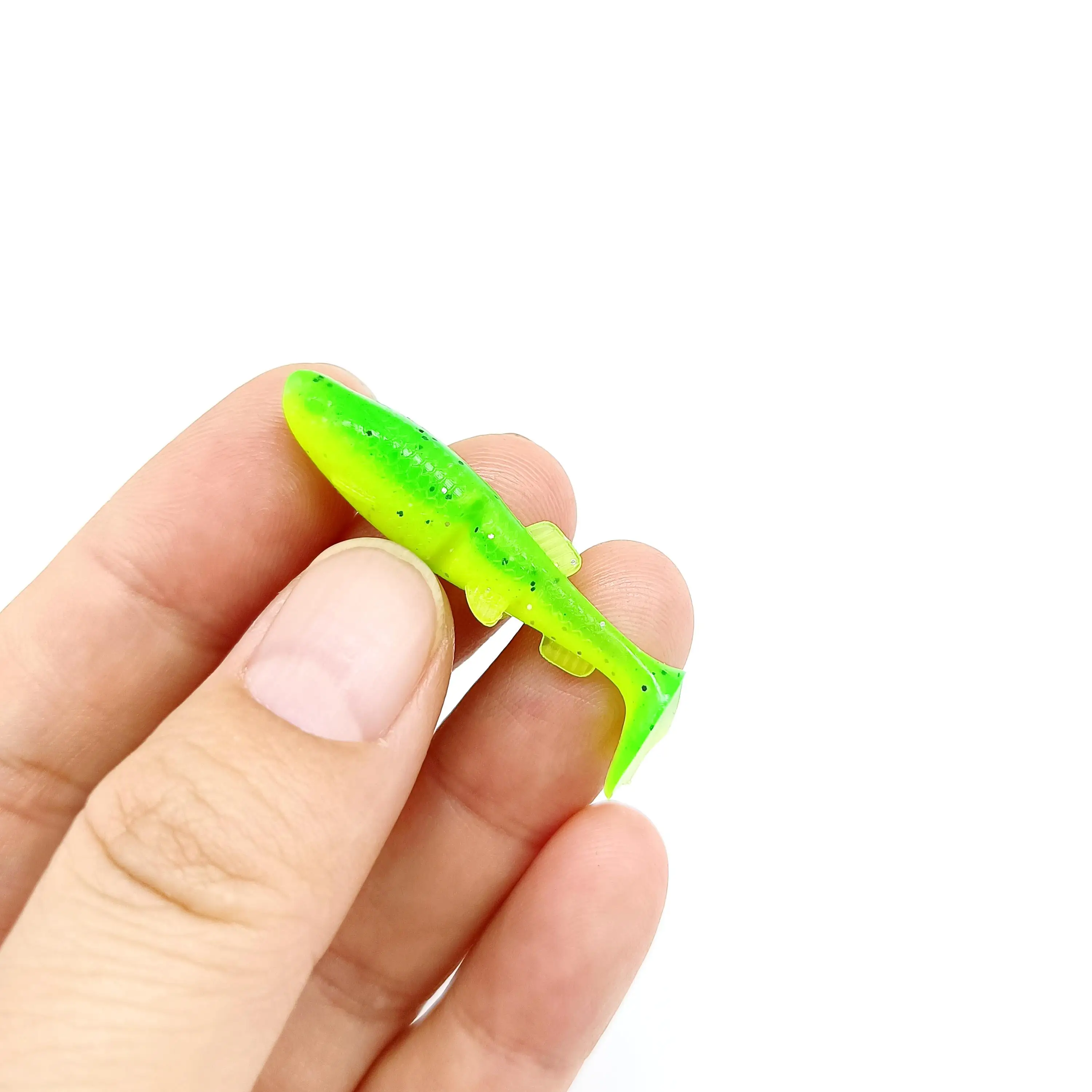 DUODUOYU-señuelo de pesca suave con cola en T flotante, 12 Uds., 1g/40mm, pez pequeño, Swimbait de silicona, Wobbler para Lucio, lubina, sábalo, aparejos de pesca
