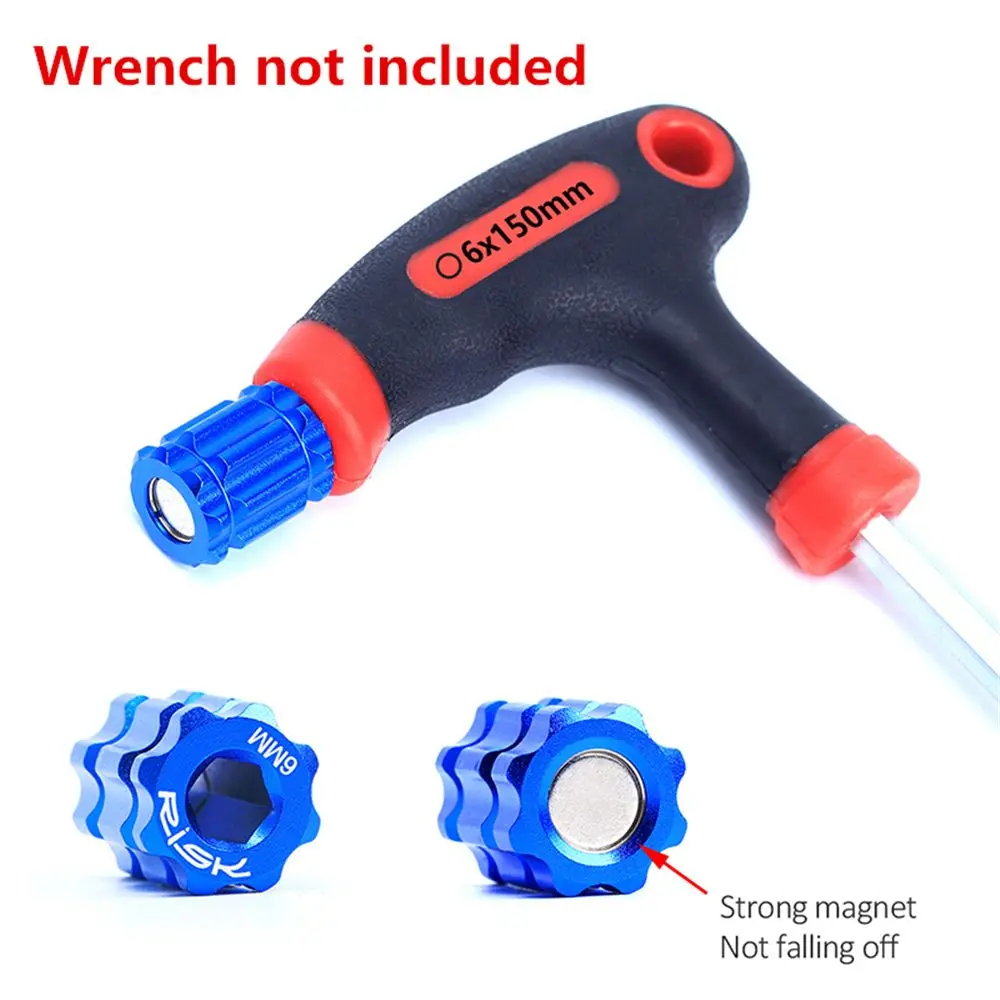 Size:19*15mm Name: Aluminum Alloy Crank Cover Tool Material: Aluminum Alloy Color: Blue Package List:1*Bicycle Bottom Bracket Remover Feature: 1.Designed for the removal and installation of bike cranks. 2.Compatible for HollowTech XT eries cranks. 3.Built-in strong magnet for convenient storage, and it can be easily absorbed onto metal tool shelf. 4.Not easy to lost.Adopting aluminum alloy, excellent hardness, long service life It needs to be used with 6mm allen wrench together. 5.Updated from the old types, the teeth is identical with Torx screws, which does no harm to the screws or other accessories.