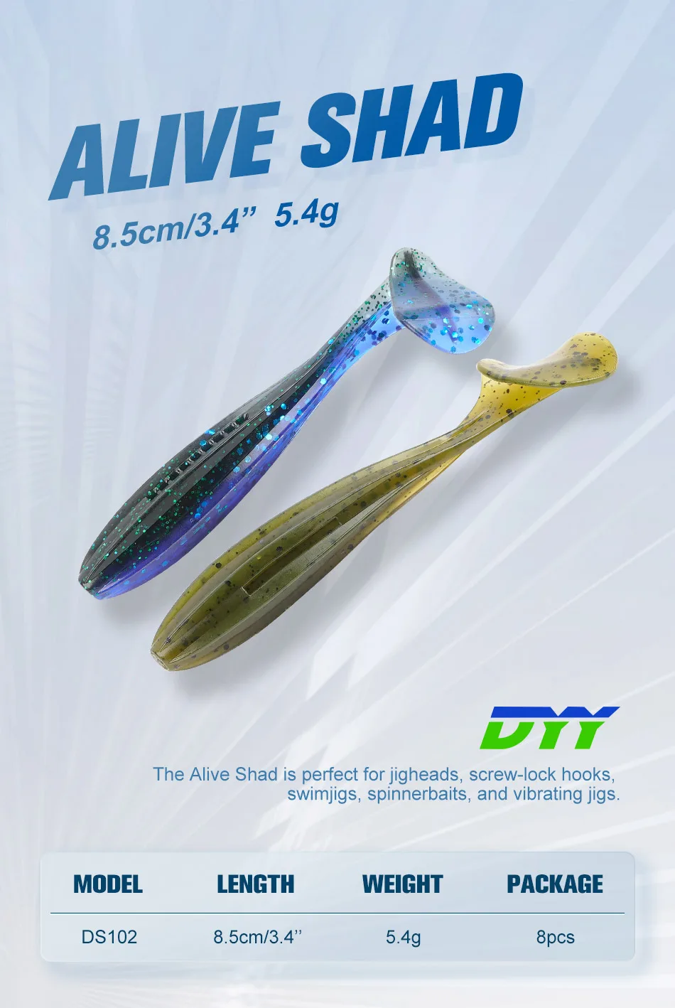 ✨¡DALE UN VOCEDOR!:DY Soft Bait Paddle Tail 8,5 cm 5,4 g Vivive Shad Swimbait de silicona para lubina Lucio Artificial Soft Señuelo Jig Head Wobblers Señuelos