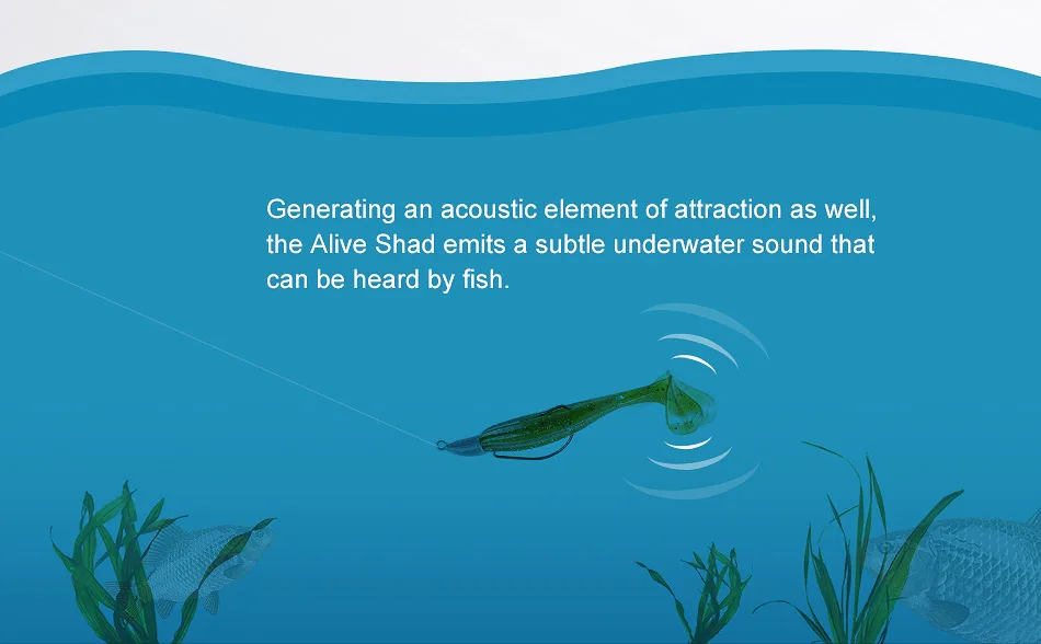 Generating an acoustic element of attraction as well, the alive shad emits a subtle underwater sound that can be heard by fish.