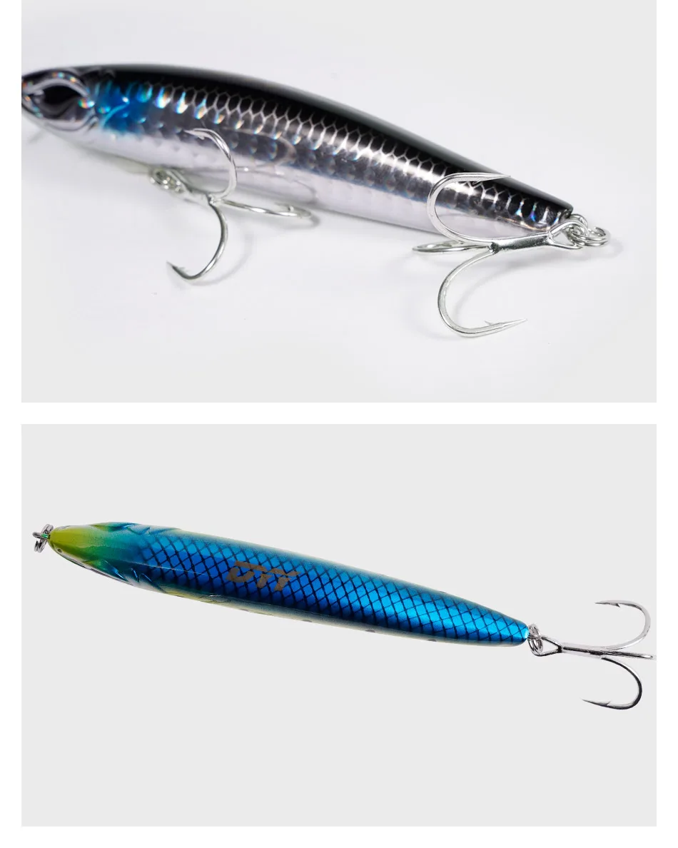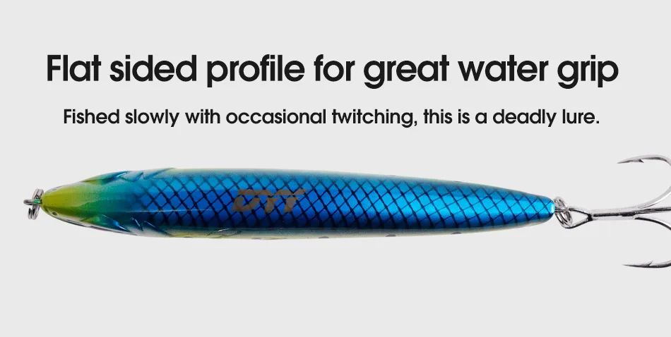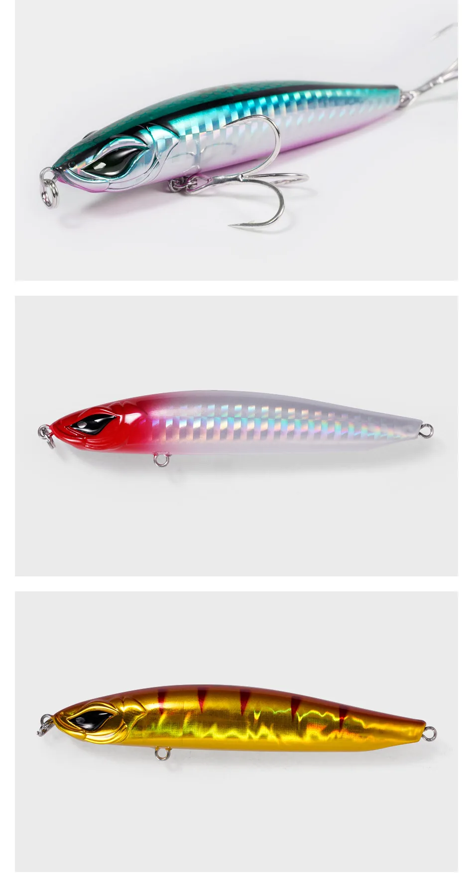 Aguja lápiz stickbait. Agarre perfecto en el agua, desde la superficie hasta el fondo.