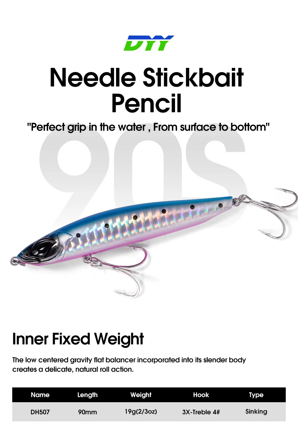 DYY 9cm 18g aguja Stickbait lápiz pesca señuelo hundimiento Wobblers fundición larga cebo duro Artificial para lubina Señuelos de Pesca