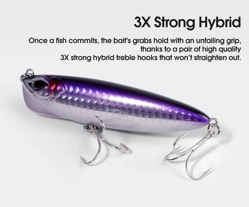 Una vez que un pez comete, los agarres del cebo se mantienen con un agarre inconfortable gracias a un par de anzuelos triples híbridos fuertes 3X de alta calidad que no se enderezarán.
