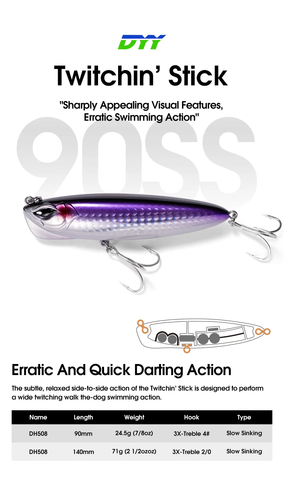 DYY 9cm 24.5g 14cm 71g señuelo de pesca Stickbait lápiz de hundimiento lento Wobbler perro Walker cebo duro Artificial para señuelos de pesca de lubina