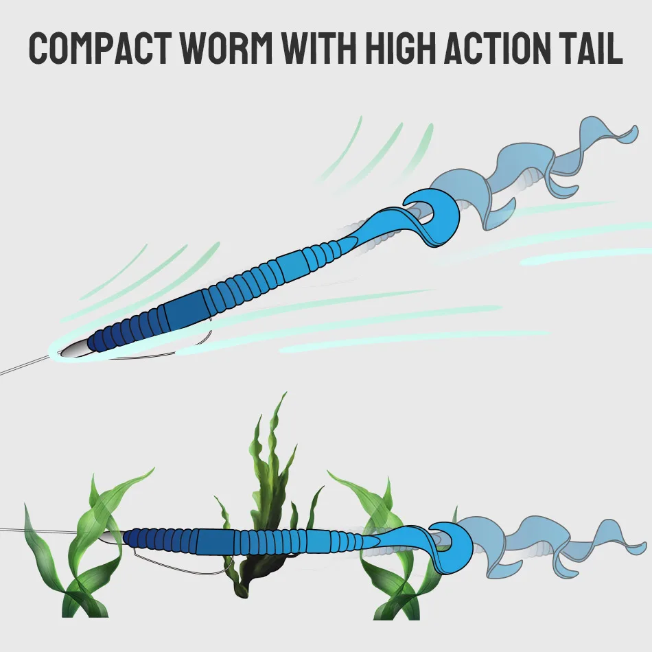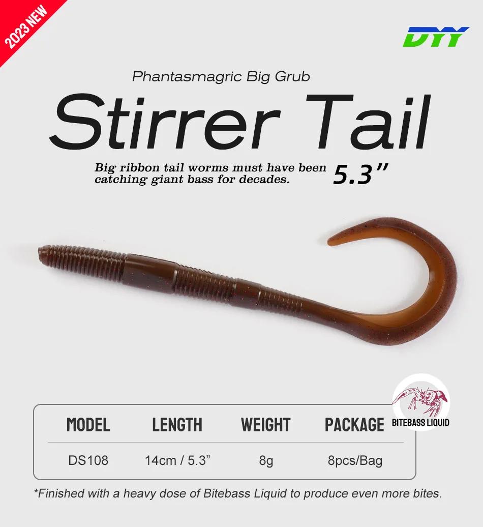 Made from Japan sourced materials , the Stirrer Tail worm keep your presentation elevated off the bottom to create an enticing visual target while its large grub tail produces an alluring swimming action that big bass attack.
