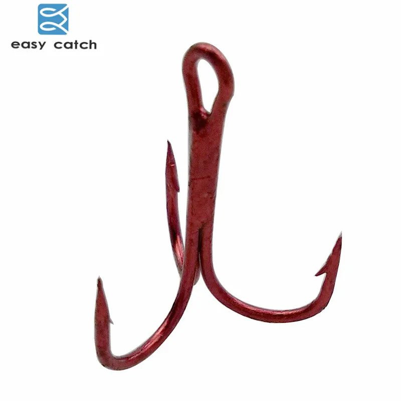 Fácil de atrapar 100pcs 35647 anzuelos de pesca triples rojo pequeño redondo doblado Triple duro señuelo cuchara anzuelo tamaño 2 4 6 8 10 12 14