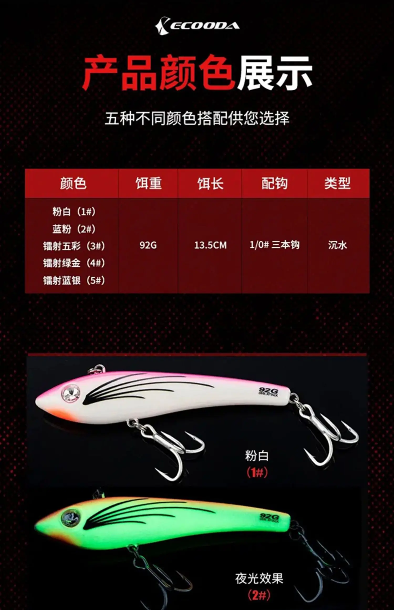 ECOODA buceo Attacke hundimiento duro VIB 92g 13,5 CM Deep Sea Wobbler Stickbait cebo Artificial atún GT señuelo de pesca