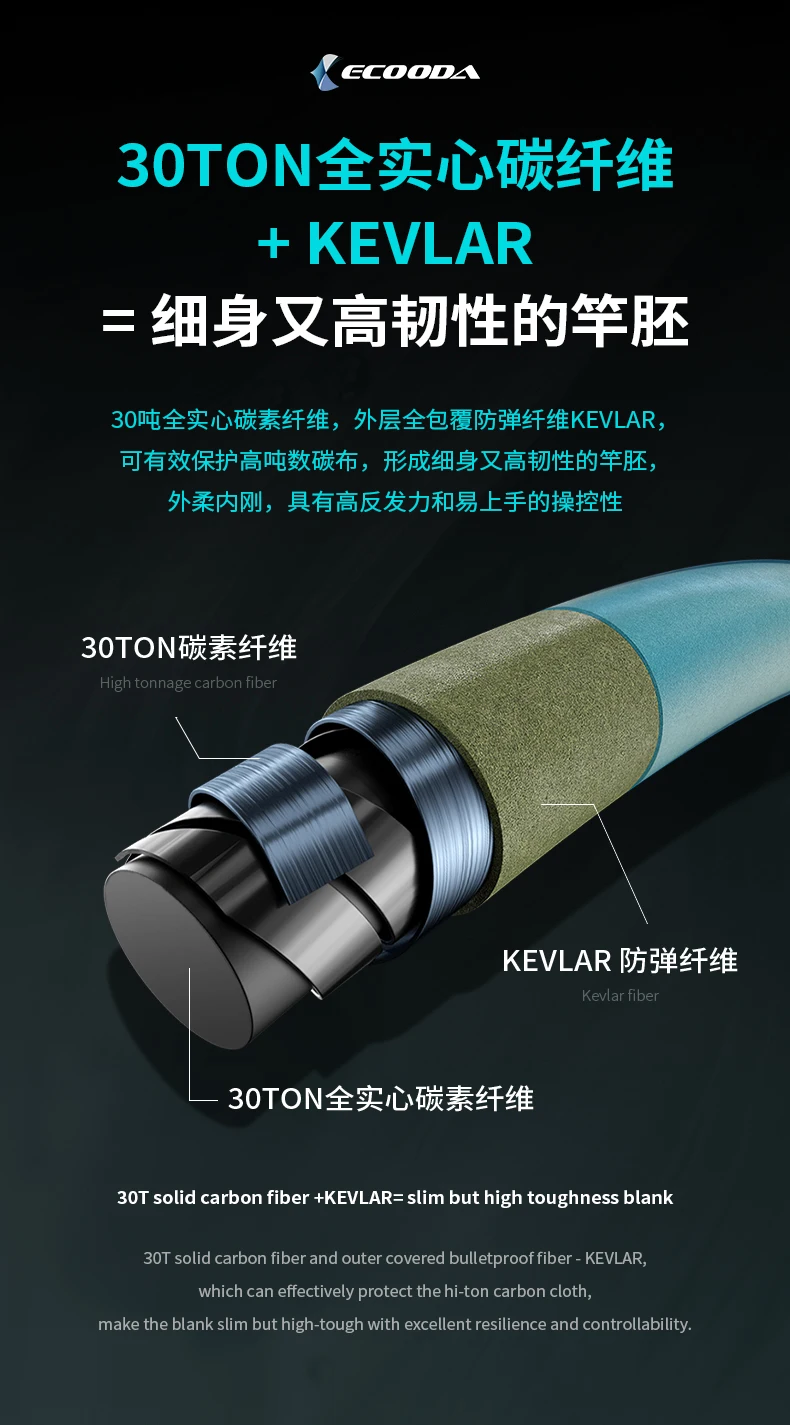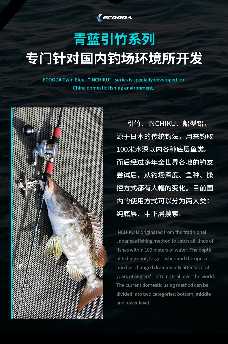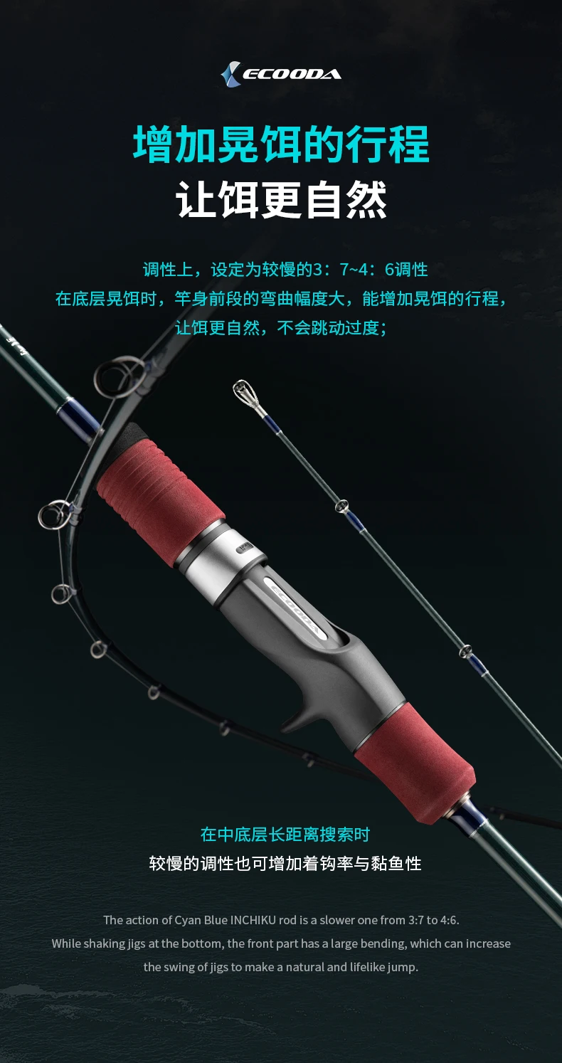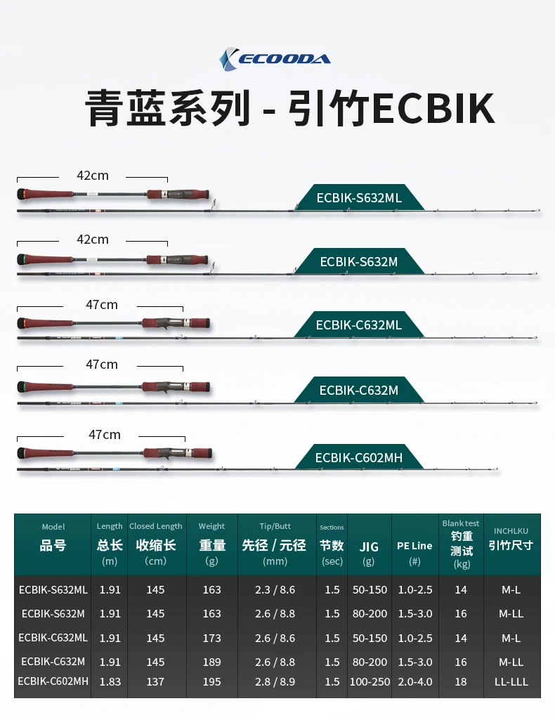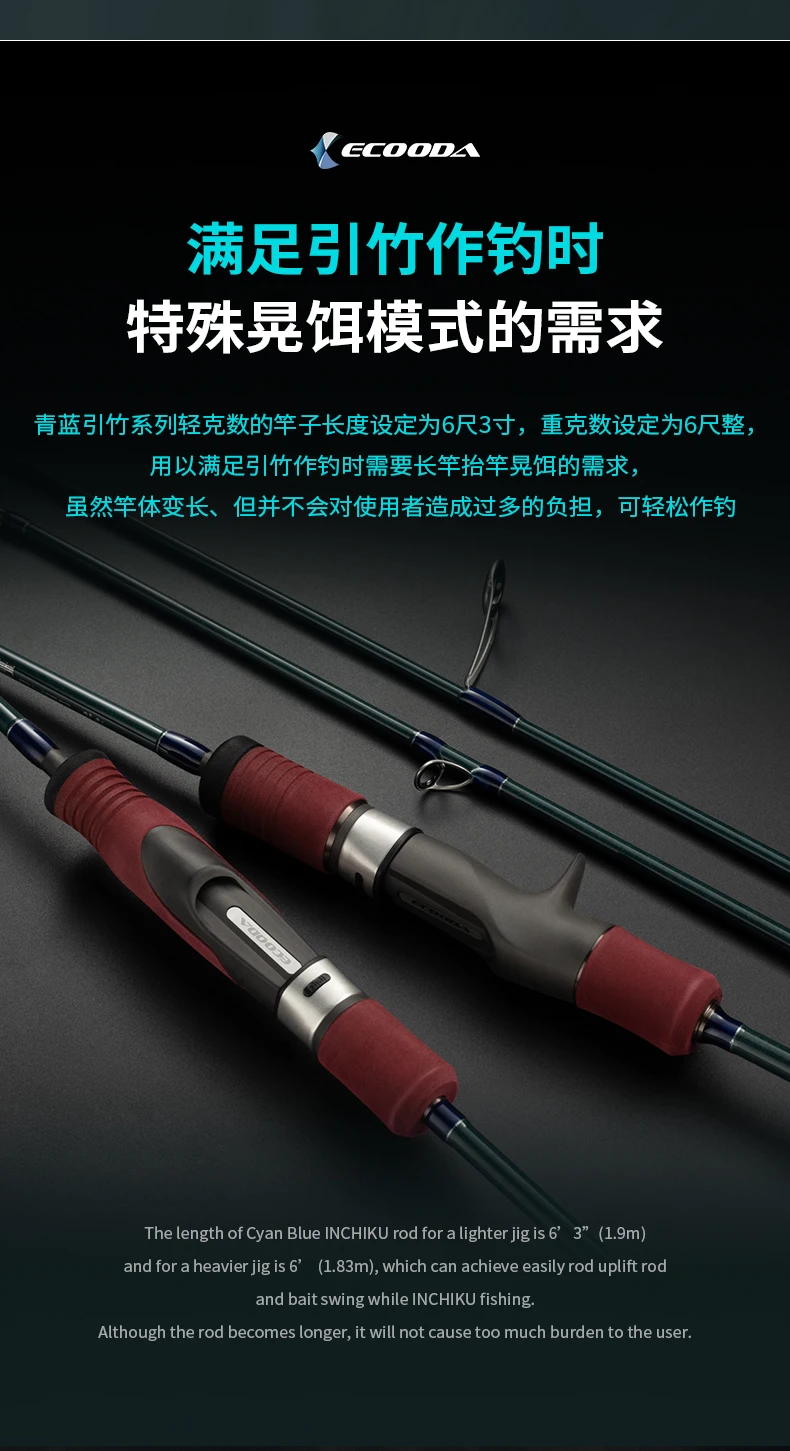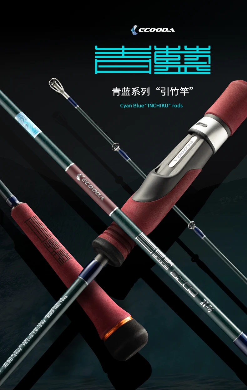 Ecooda-caña de INCHIKU de carbono sólido para Jigging lento, piezas completas de Fuji, PE1-4 de agua salada, ECBIK azul cian, 1,83 M/1,91 M, nuevo