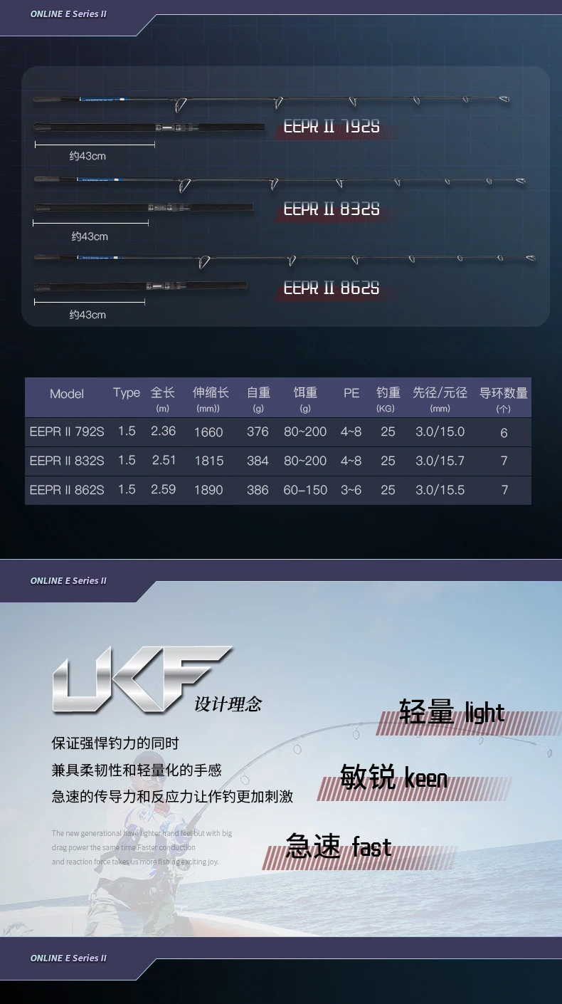 ECOODA-caña de pescar EEPR II, accesorio giratorio de 2022/2,36/2,51 m, potencia de arrastre de 25kg, piezas completas de Fuji, bote de pesca, novedad de 2,59, PE3-8