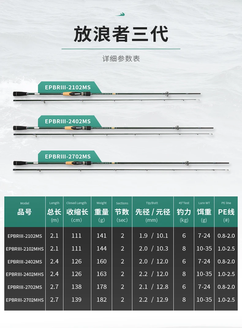 ECOODA-caña de pescar EPBR III, 2,1 m, 2,4 m, 2,7 m, señuelo, peso del señuelo 7-35g, PE0.8-2.5 #, novedad de 2021