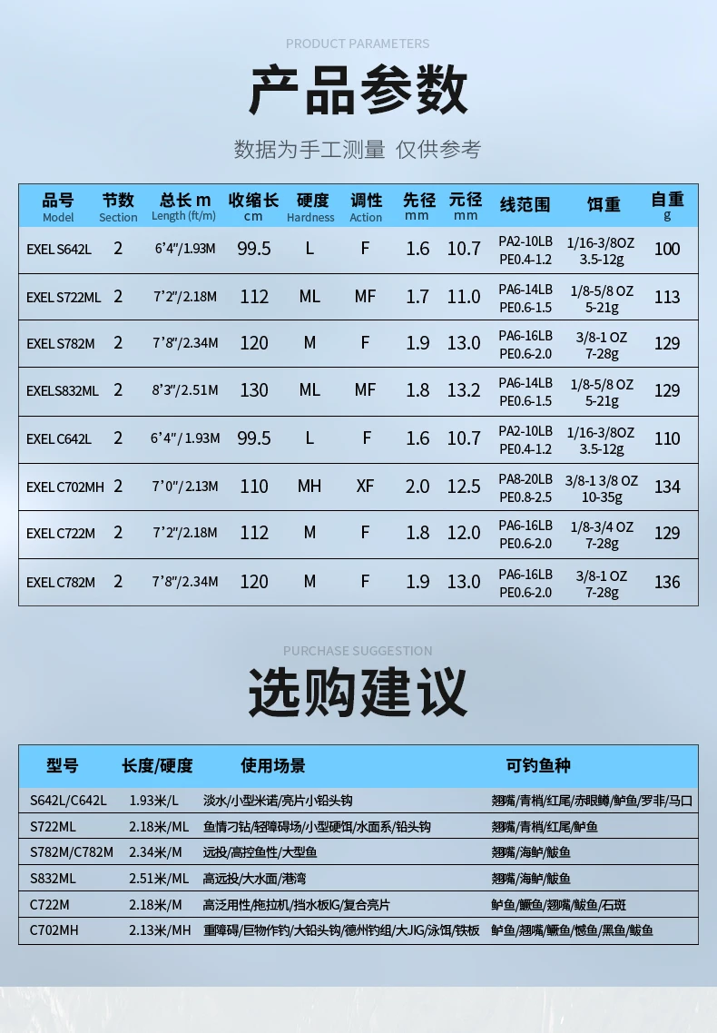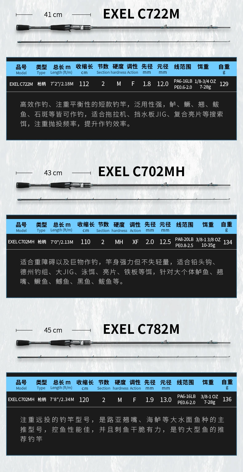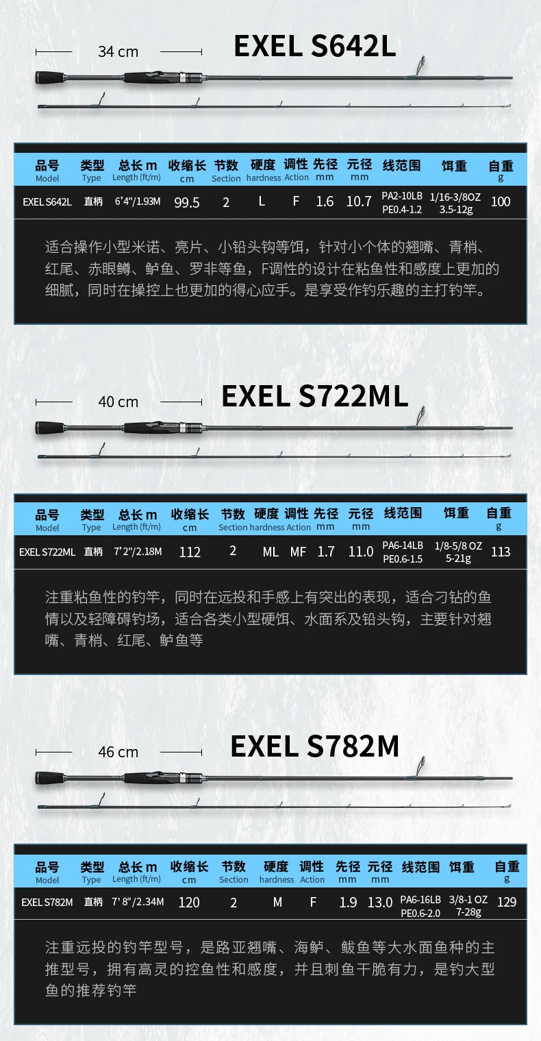 ECOODA-caña de pescar EXEL 1,93 m-2,51 m, acción MH, 2 unidades, señuelo de pesca, WT 3,5-28g, caña giratoria para pesca en barco