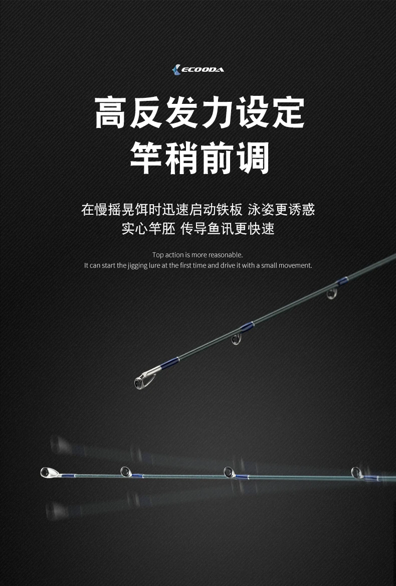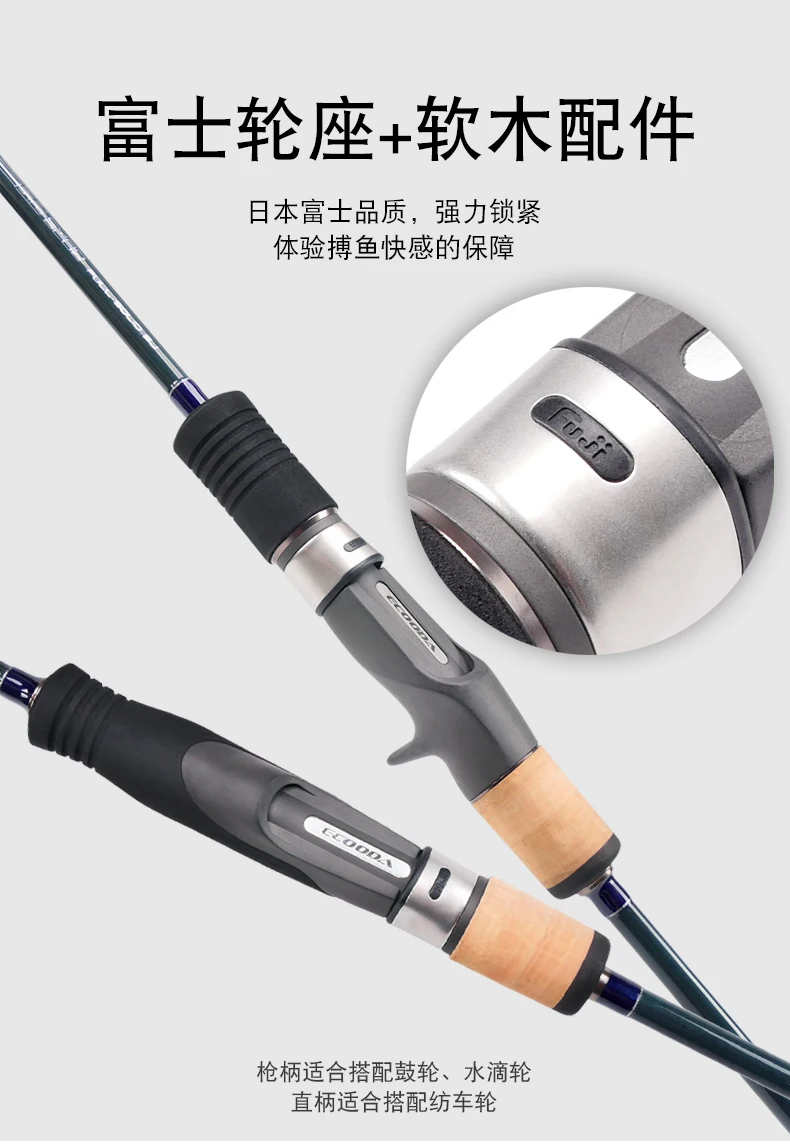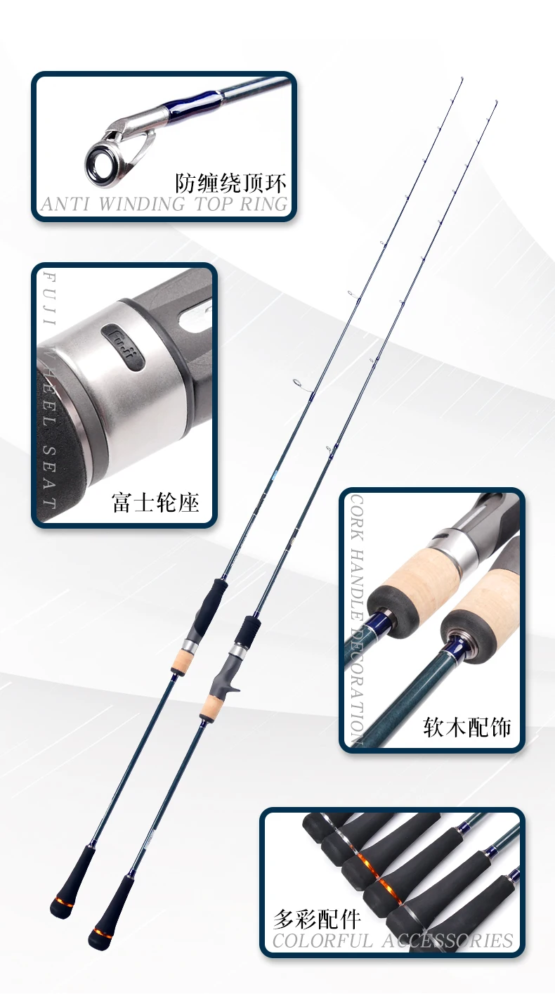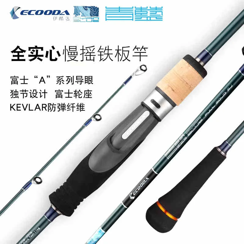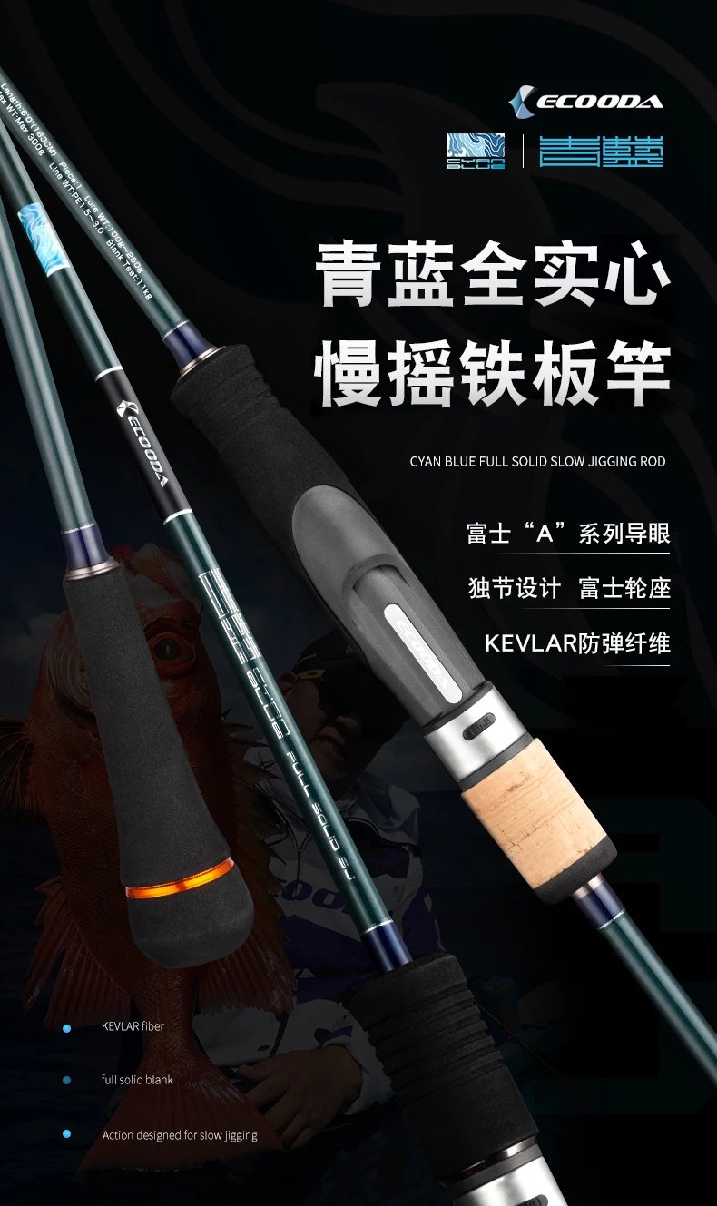 ECOODA-caña de pescar de fibra de carbono, cañas de fundición giratorias, color azul cian, 1,73 m, 1,83 m, 1 sección