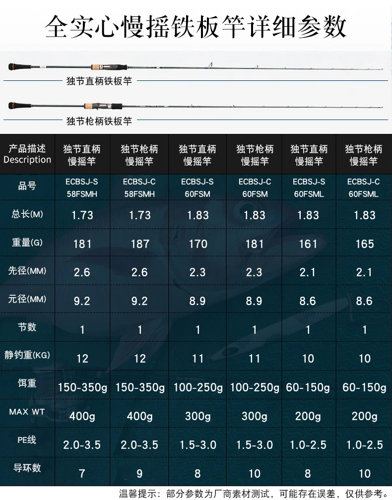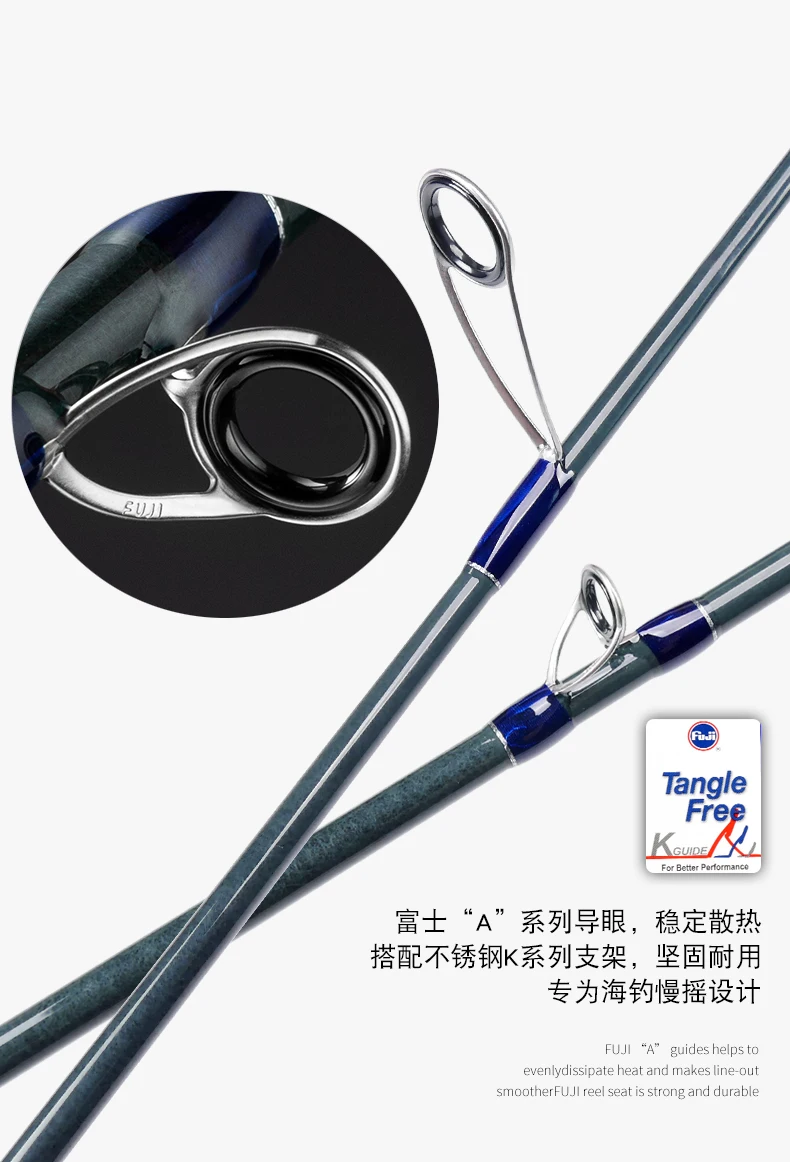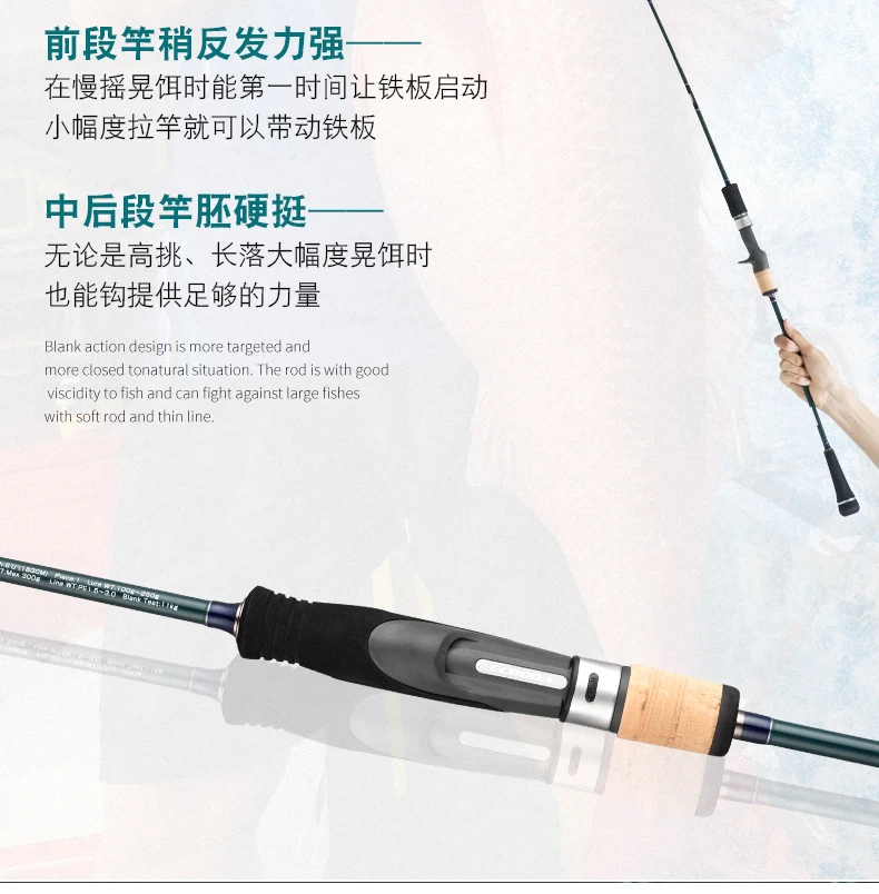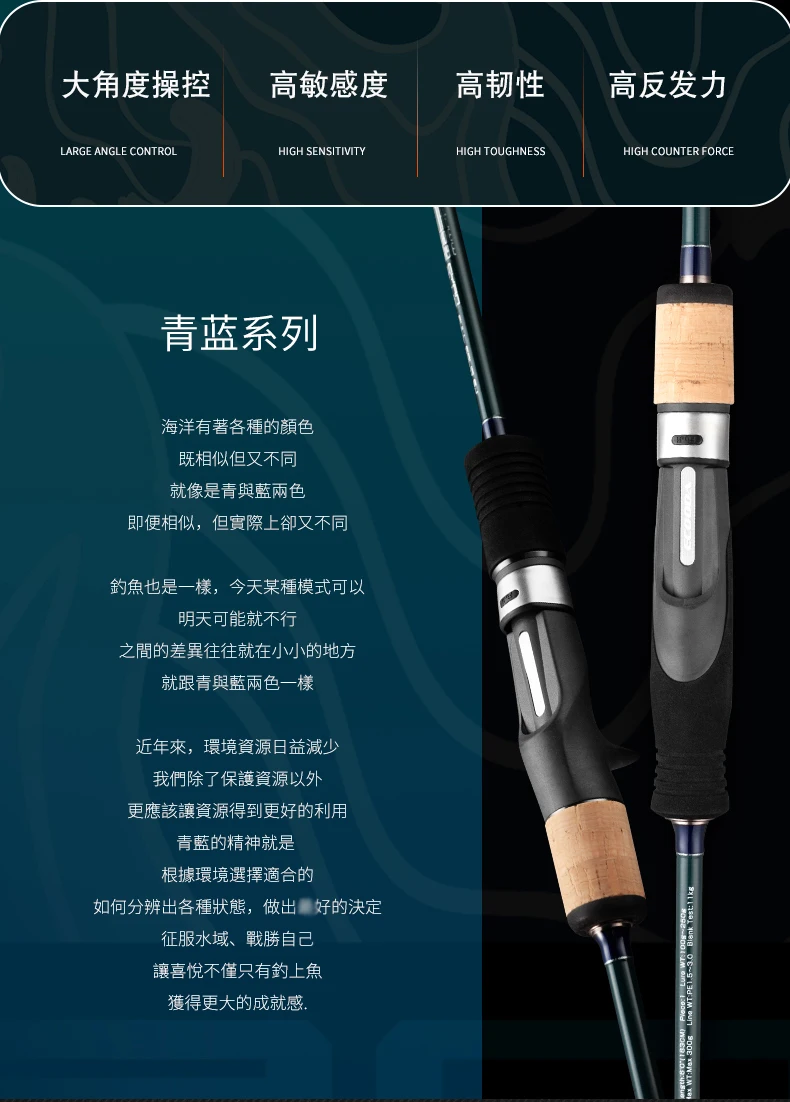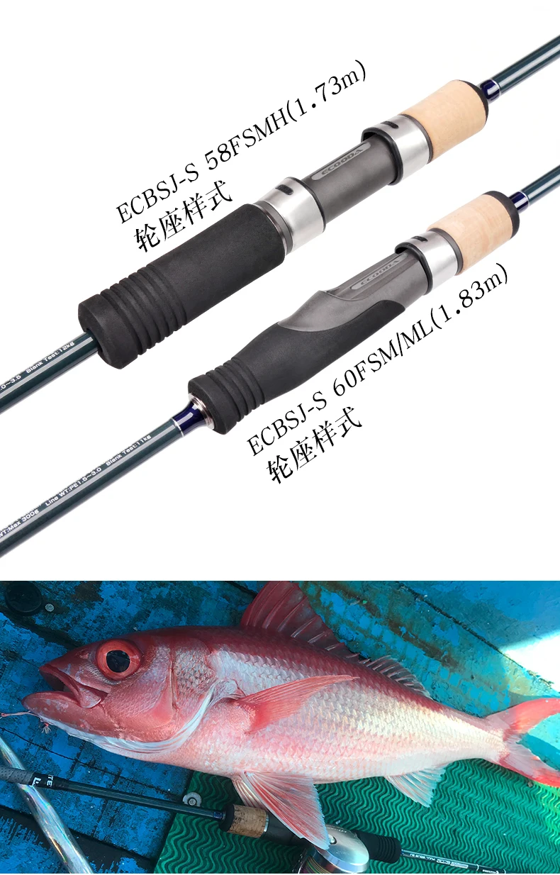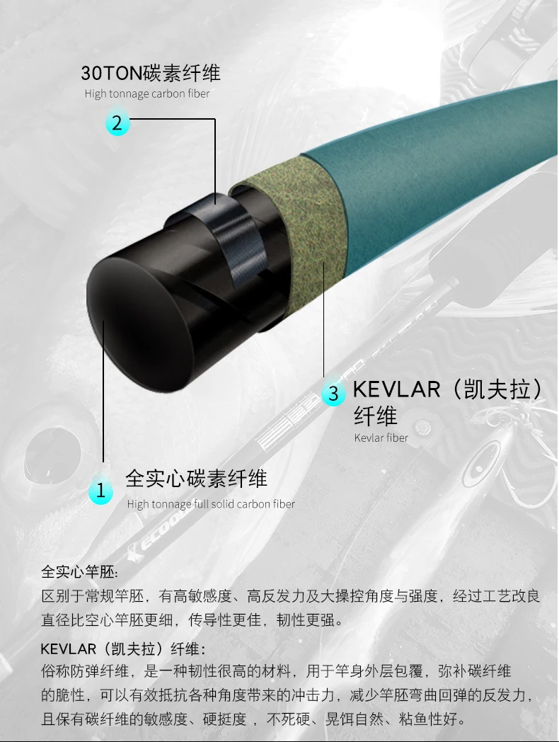ECOODA-caña de pescar de fibra de carbono, cañas de fundición giratorias, color azul cian, 1,73 m, 1,83 m, 1 sección