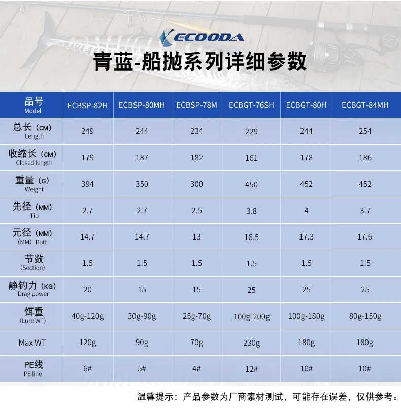 ECOODA-caña de pescar de fundición azul cian, 2,29 m-2,54 m, potencia de arrastre 15-25kg, señuelo, WT25-200g, novedad