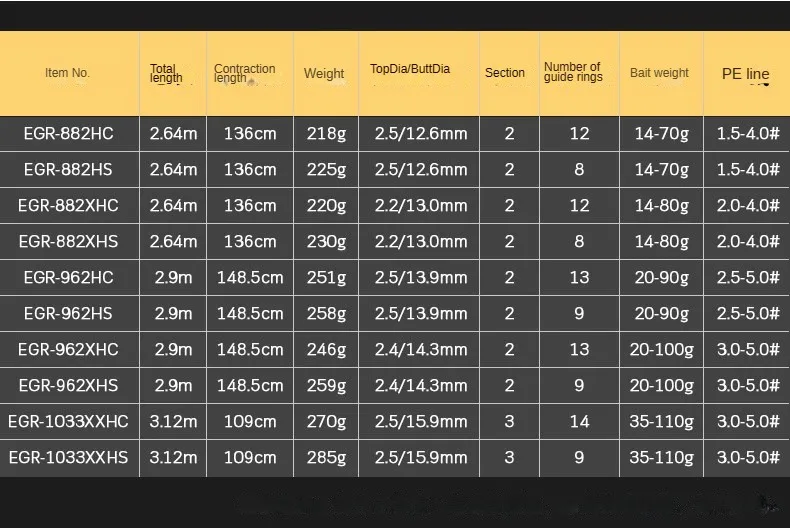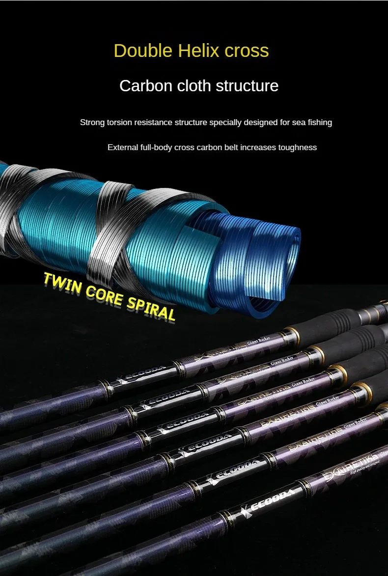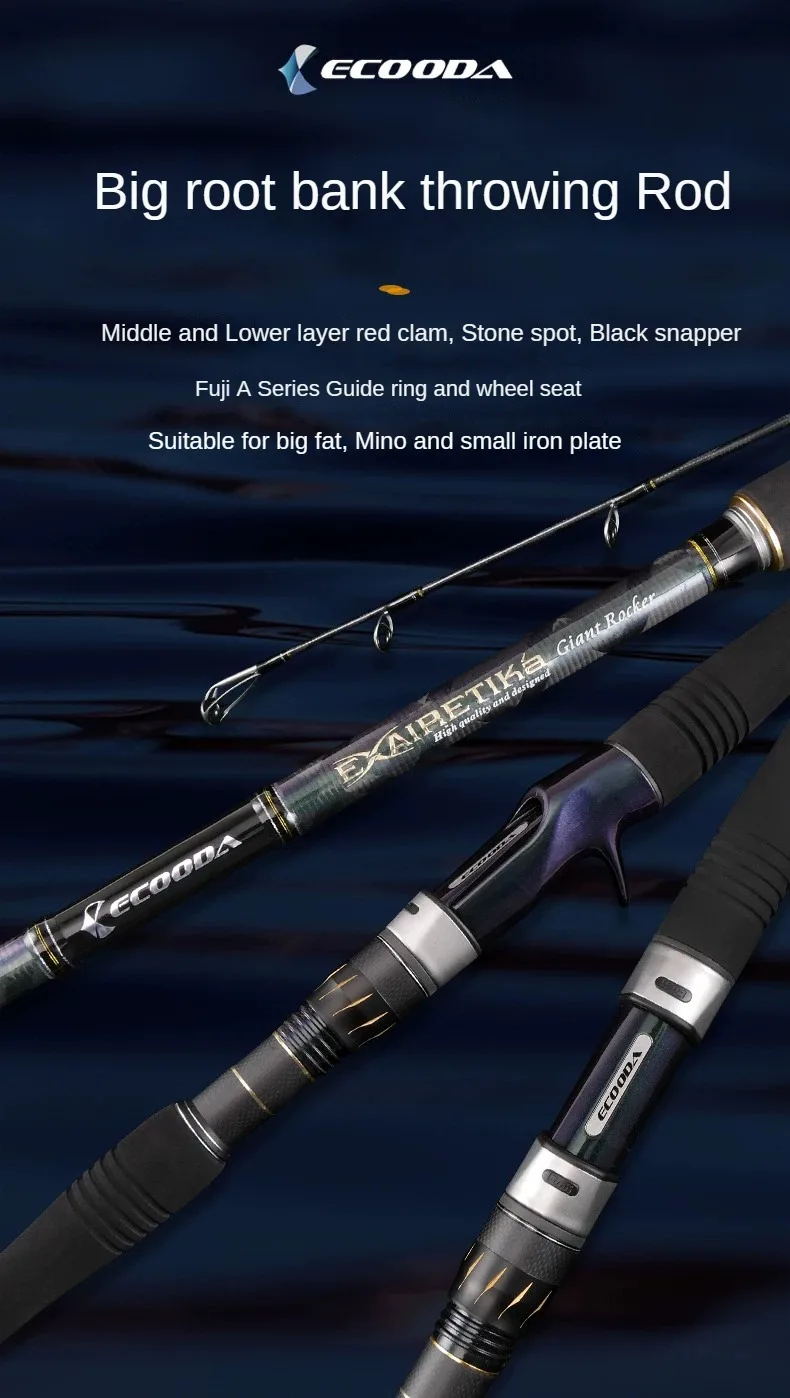 ECOODA-caña de pescar giratoria para peces grandes, piezas completas de Fuji, 2 secciones, 2,64 m, 2,9 m, 3,12 m, para agua salada