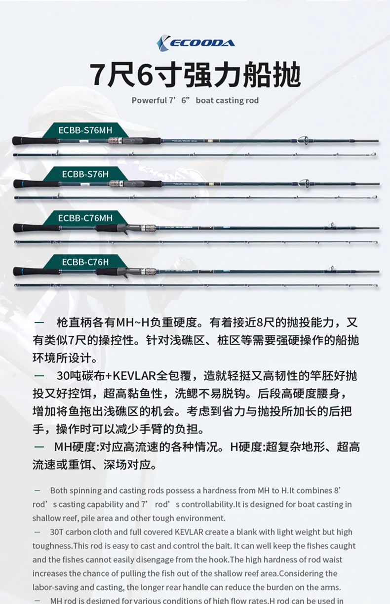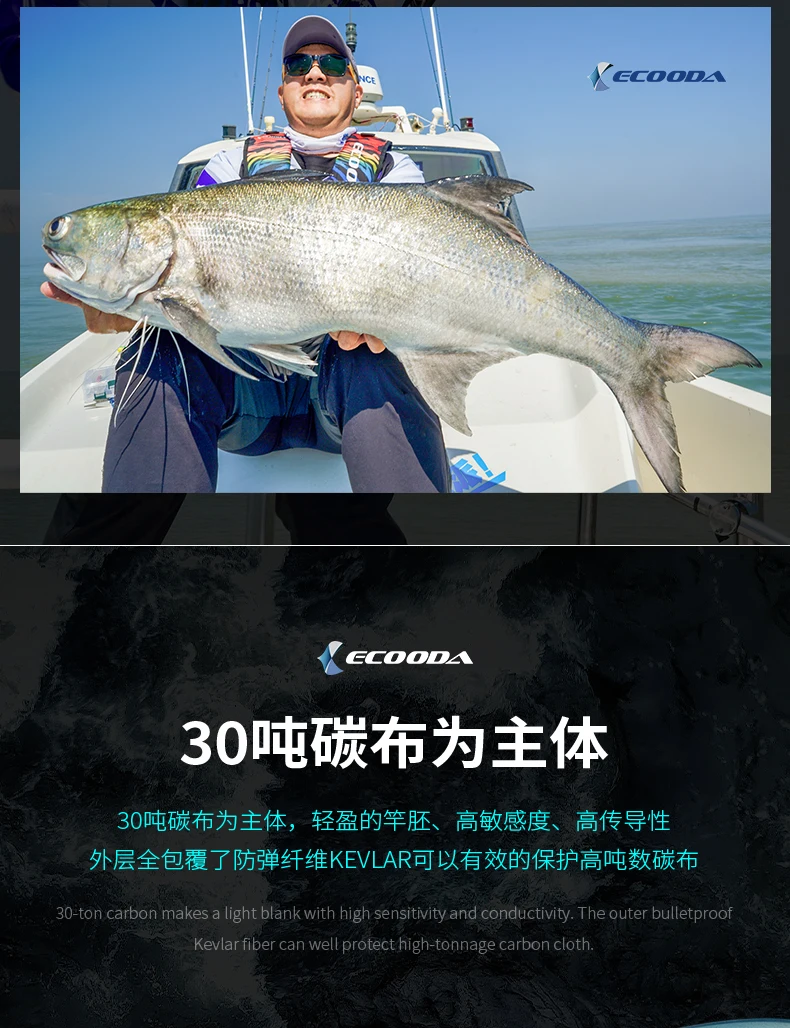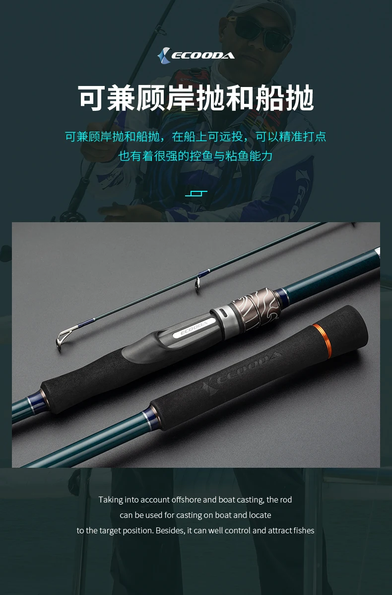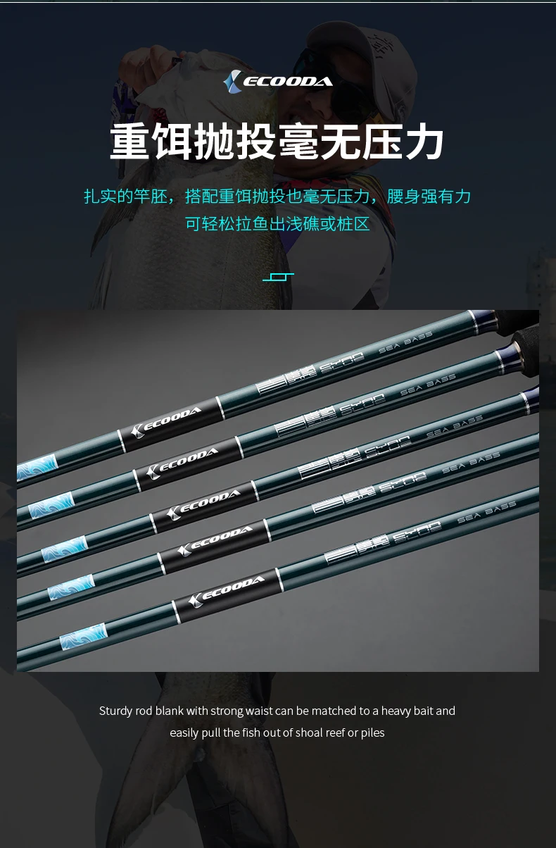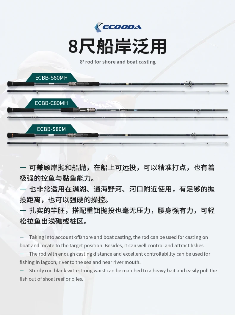 ECOODA-caña de pescar de lubina ECBB, piezas Fuji, giratoria, de fundición, PE1-5 # barco en alta mar, Universal, peso del señuelo 8-40g, 2,1-3,2 M
